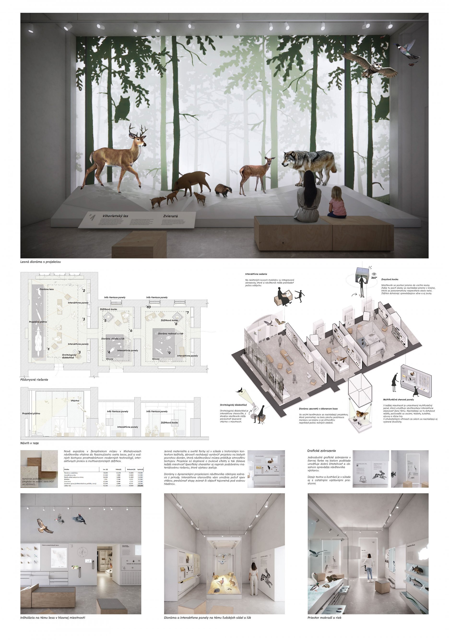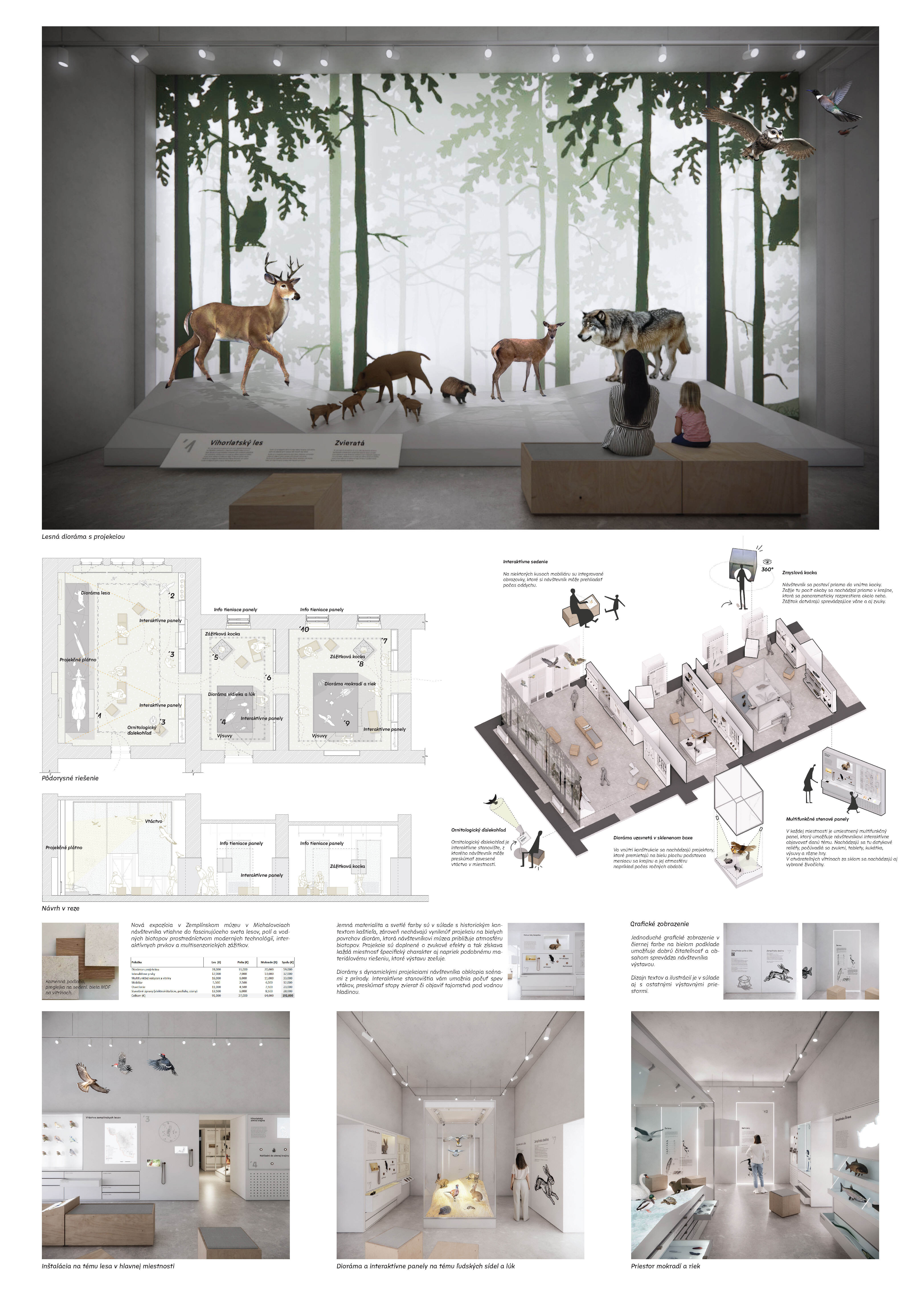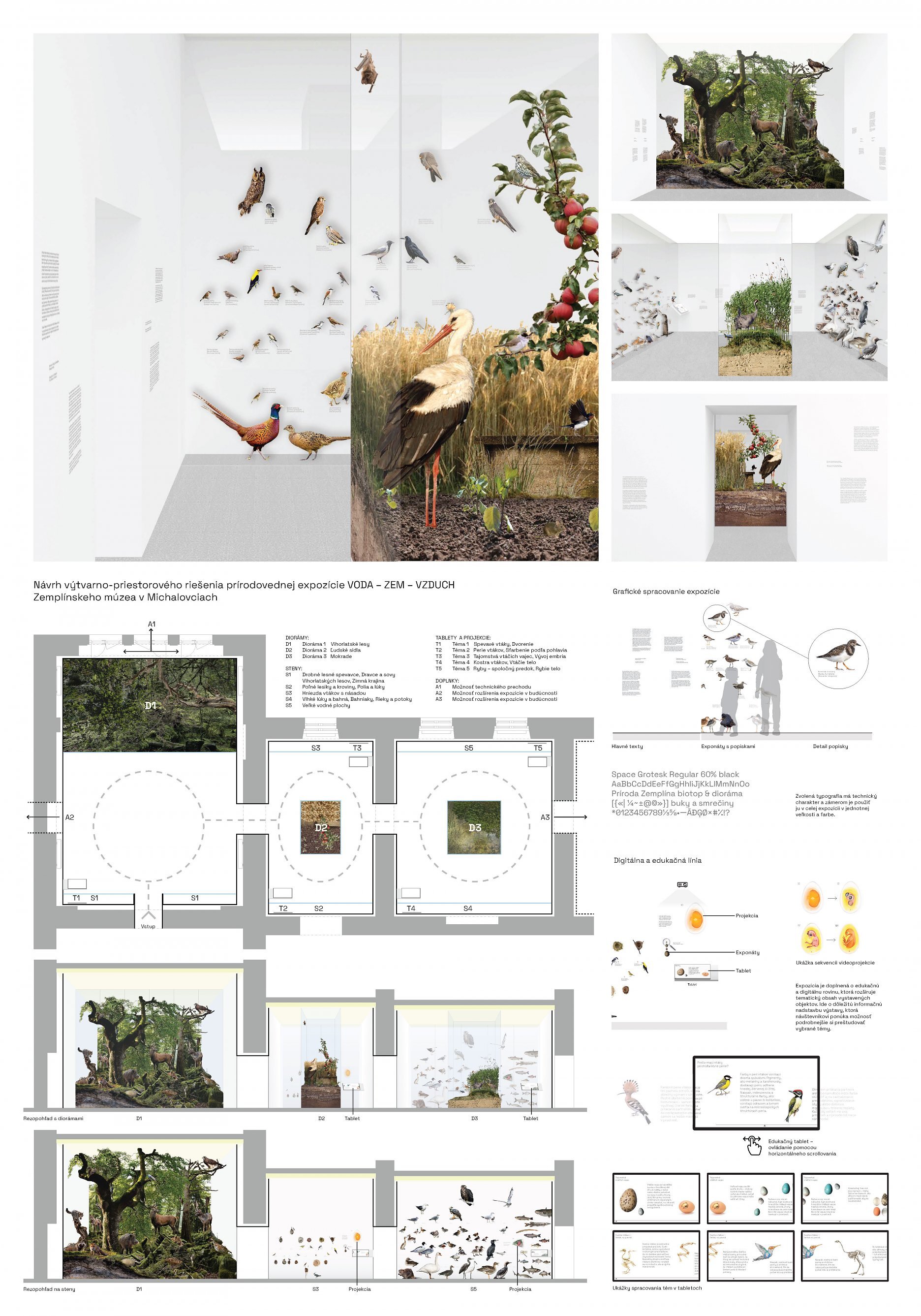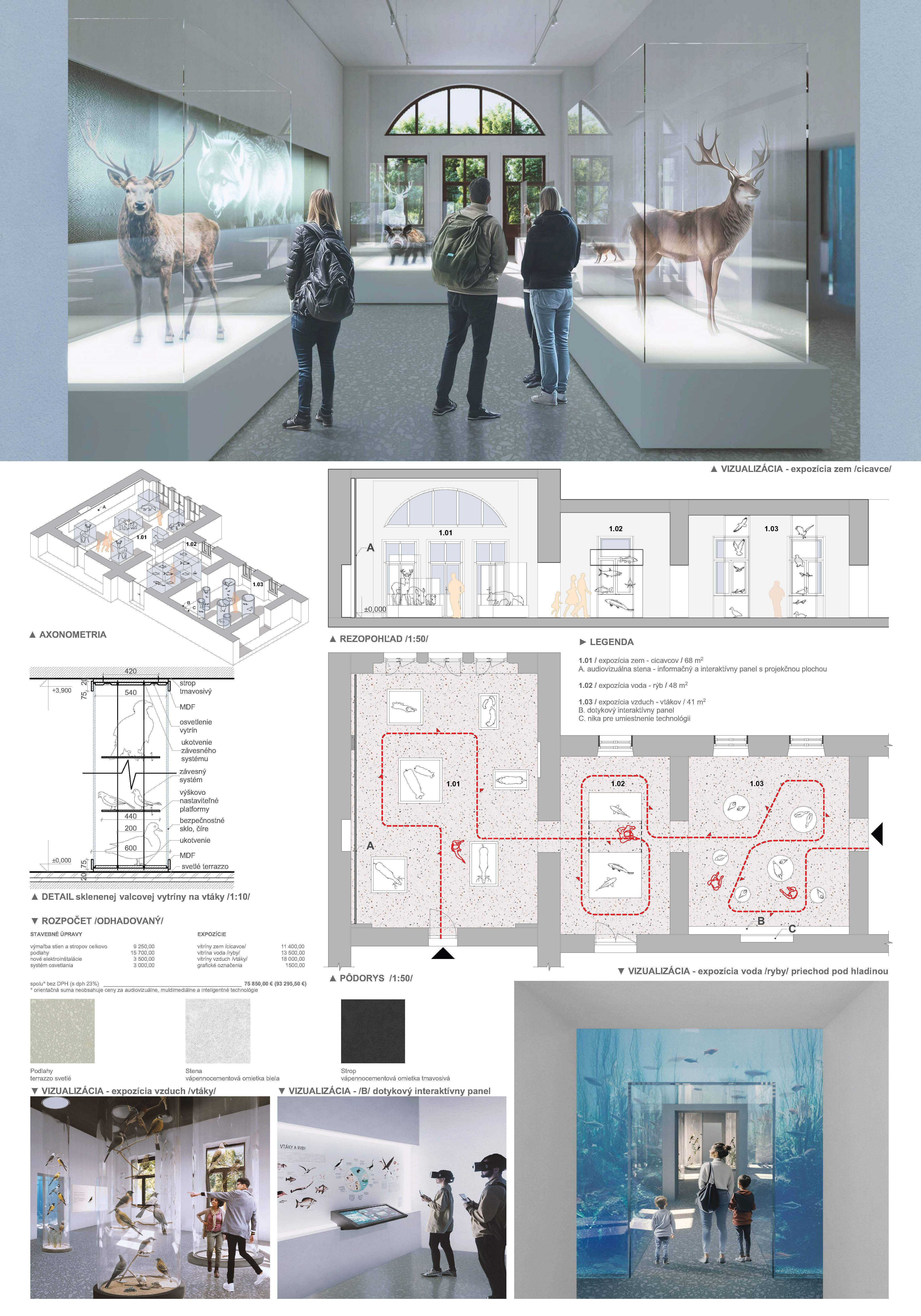 Oceňujeme, čisté a jednoduché prevedenie vitrín, a taktiež, že autor pamätal na existujúce vykurovacie telesá a zohľadnil ich v návrhu skrze vertikálne líniové perforovanie v MDF doskách. Ďalej expozície formou diorám, že nie sú jednotlivé exponáty zaškatuľkované v samostatnej vitríne, ale spoločne vytvárajú obraz živej prírody. Jasná, čistá typografia a rovnako aj využitie piktogramov. Grafika a prevedenie návrhu na vysokej úrovni s popismi jednotlivých výstavných prvkov.