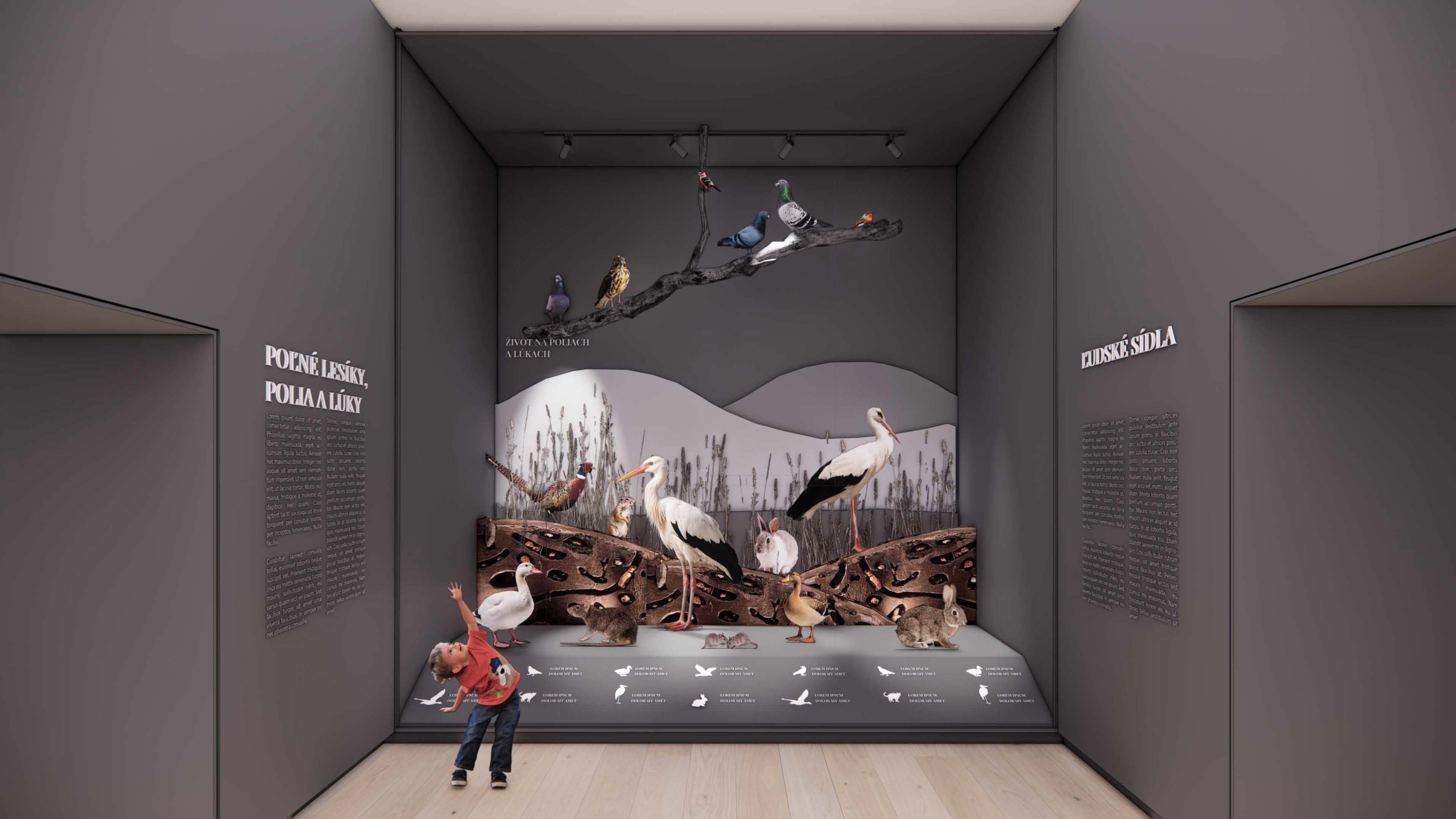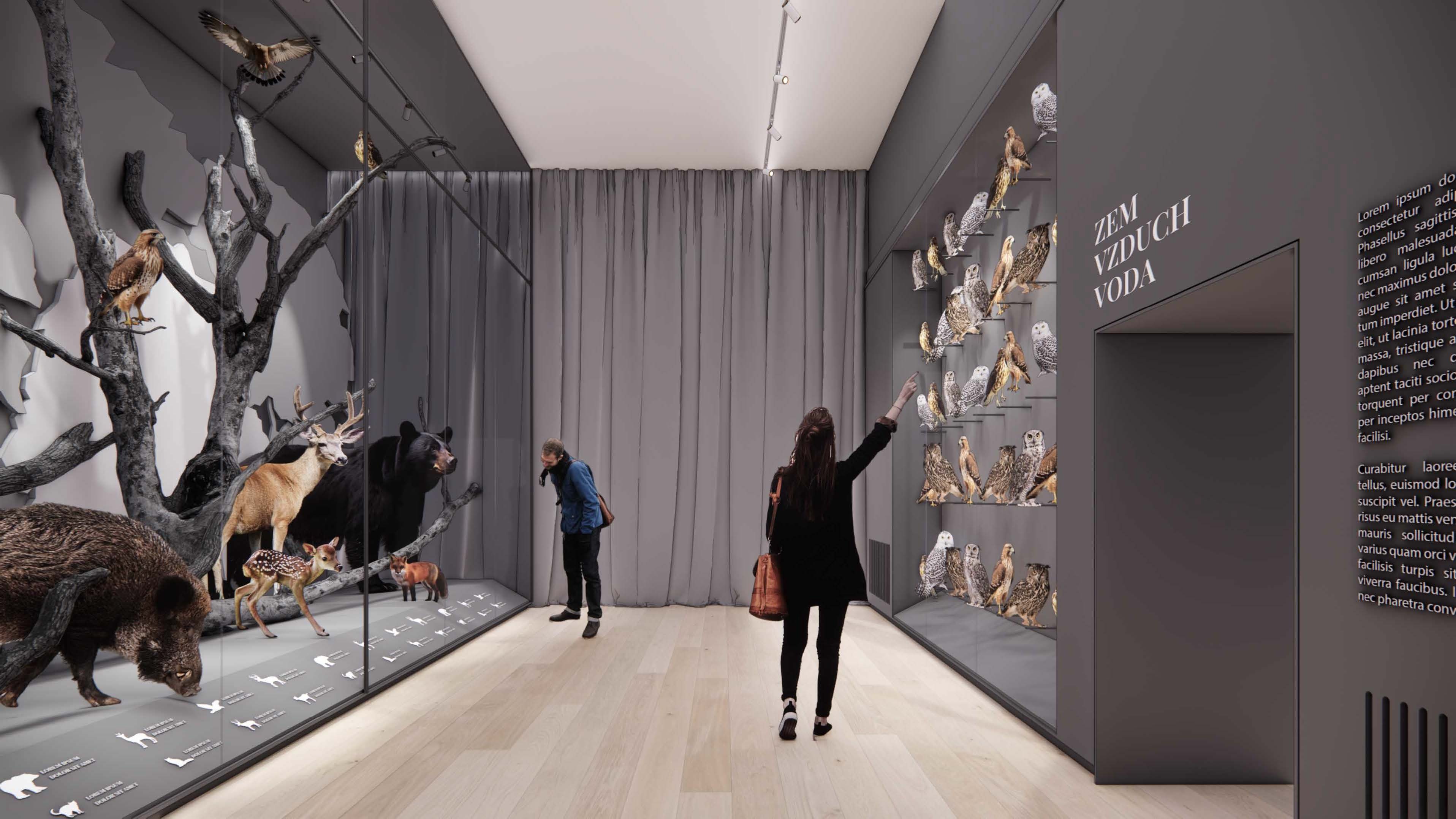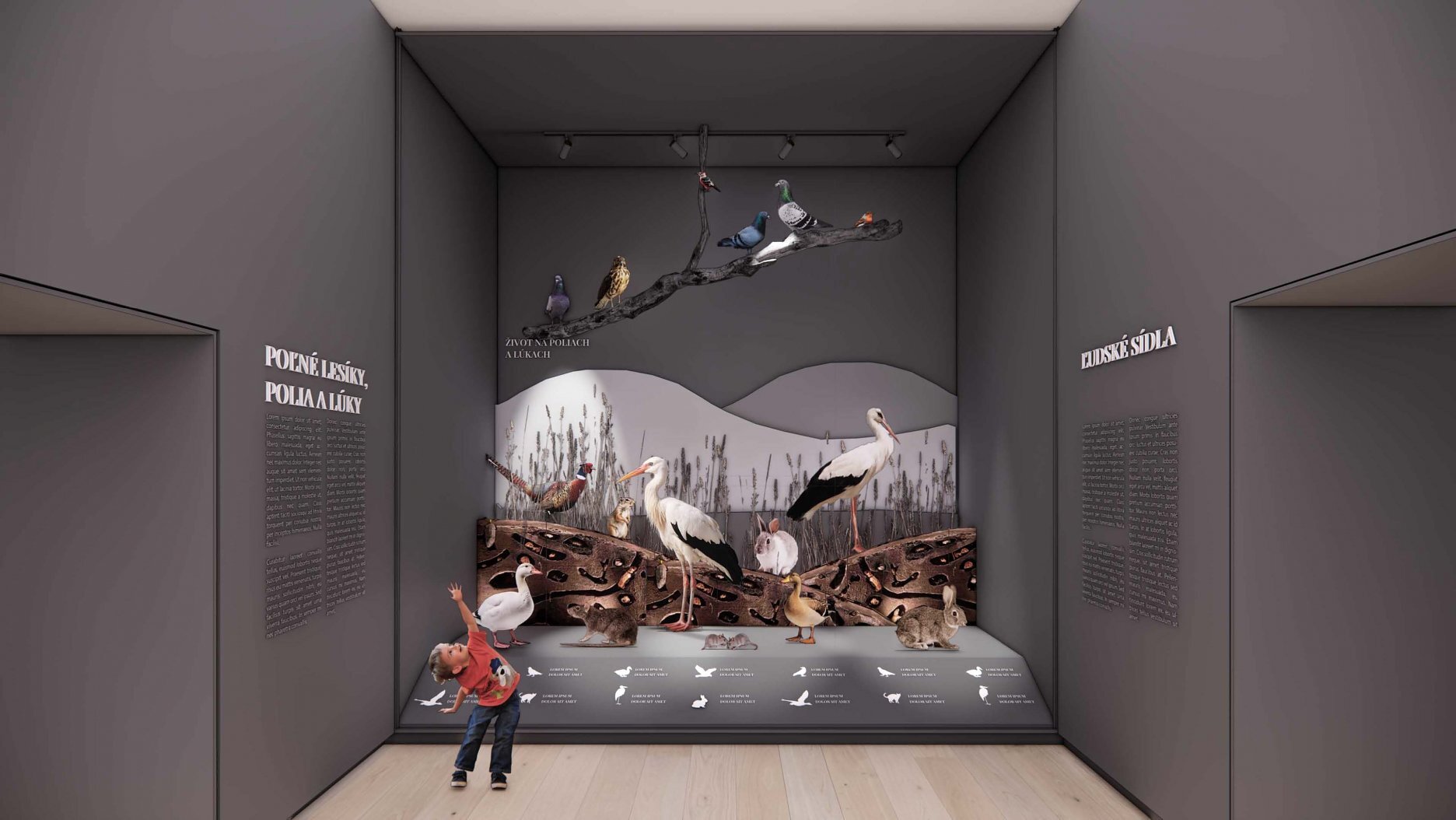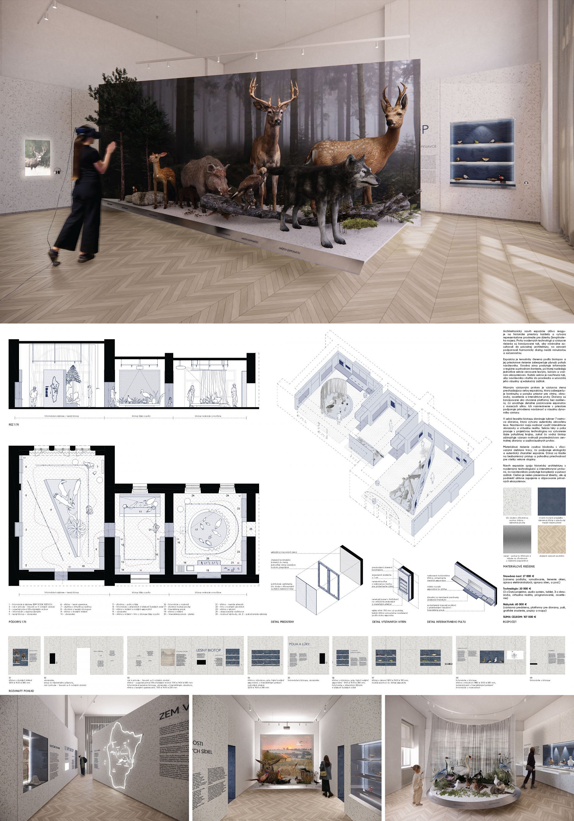 Oceňujeme, čisté a jednoduché prevedenie vitrín, a taktiež, že autor pamätal na existujúce vykurovacie telesá a zohľadnil ich v návrhu skrze vertikálne líniové perforovanie v MDF doskách. Ďalej expozície formou diorám, že nie sú jednotlivé exponáty zaškatuľkované v samostatnej vitríne, ale spoločne vytvárajú obraz živej prírody. Jasná, čistá typografia a rovnako aj využitie piktogramov. Grafika a prevedenie návrhu na vysokej úrovni s popismi jednotlivých výstavných prvkov.