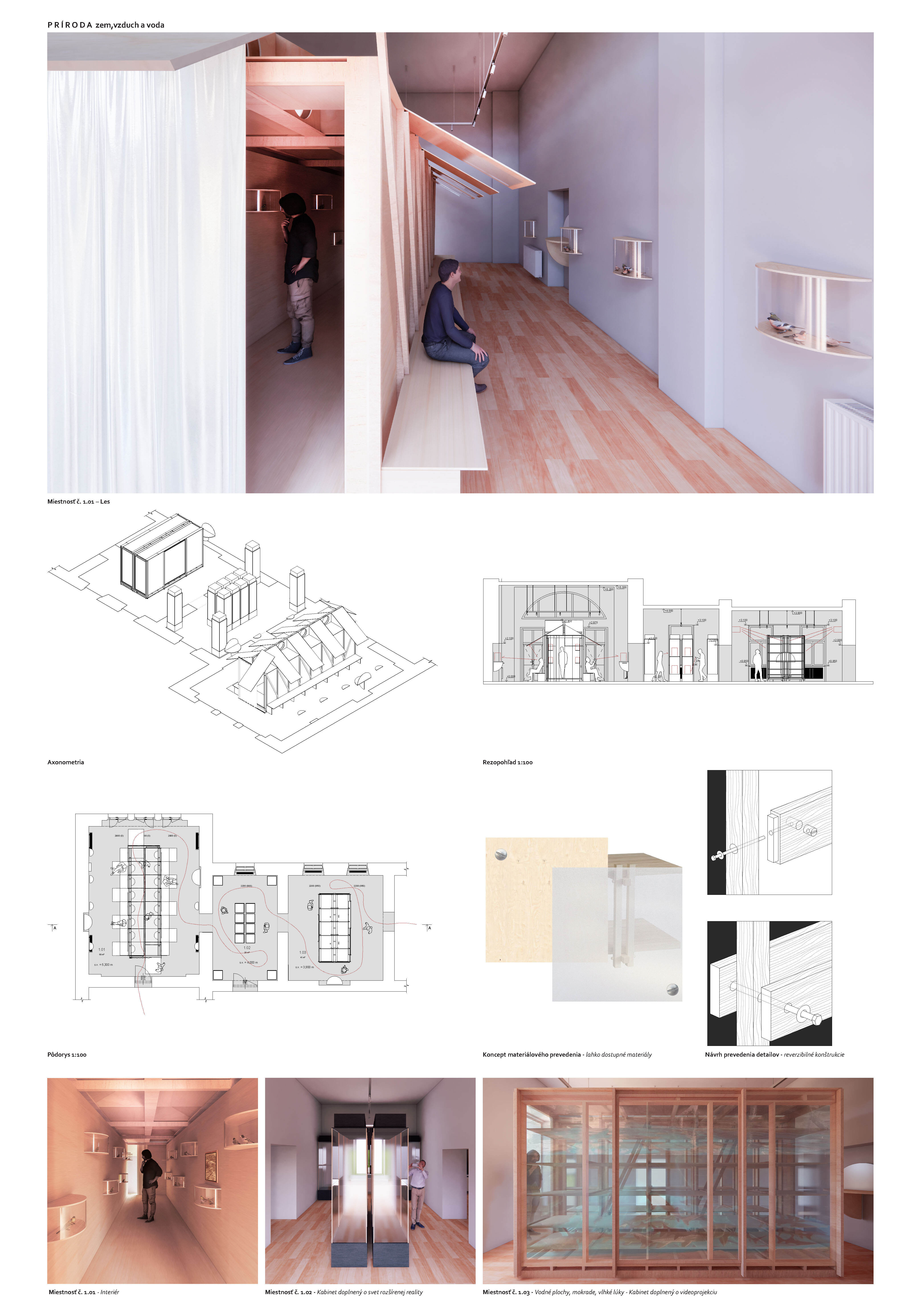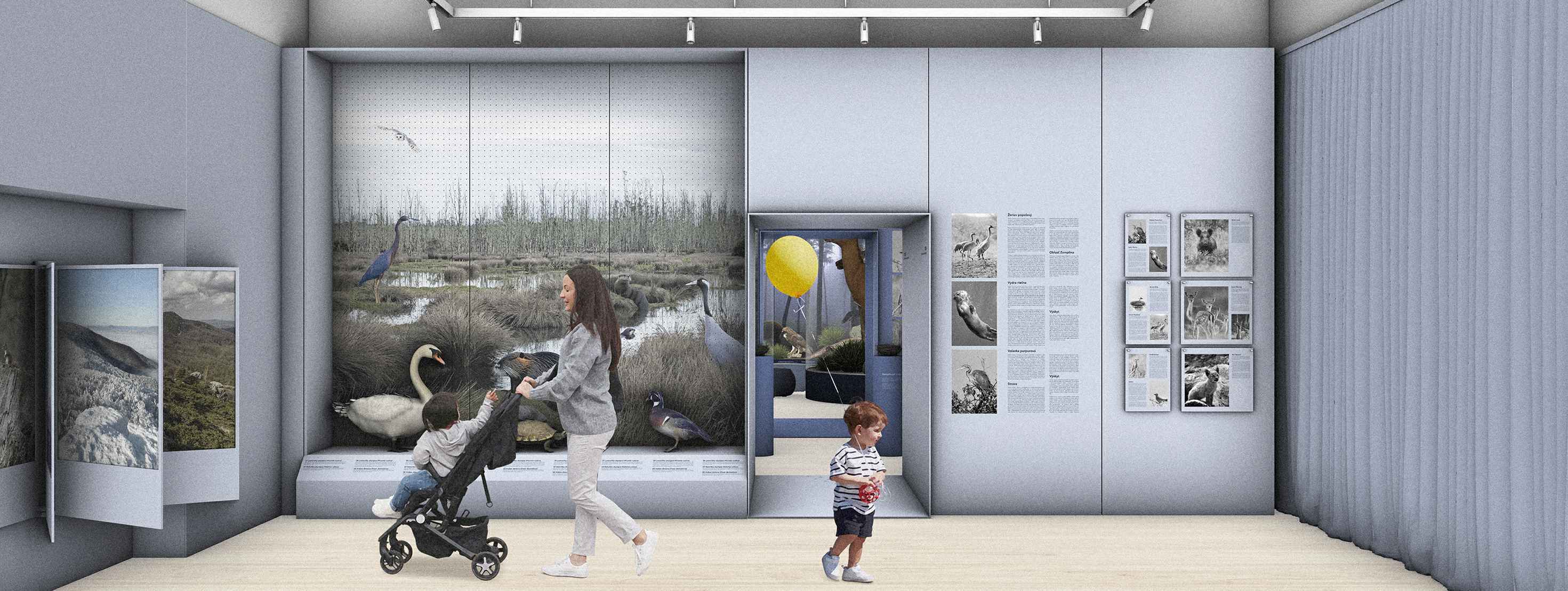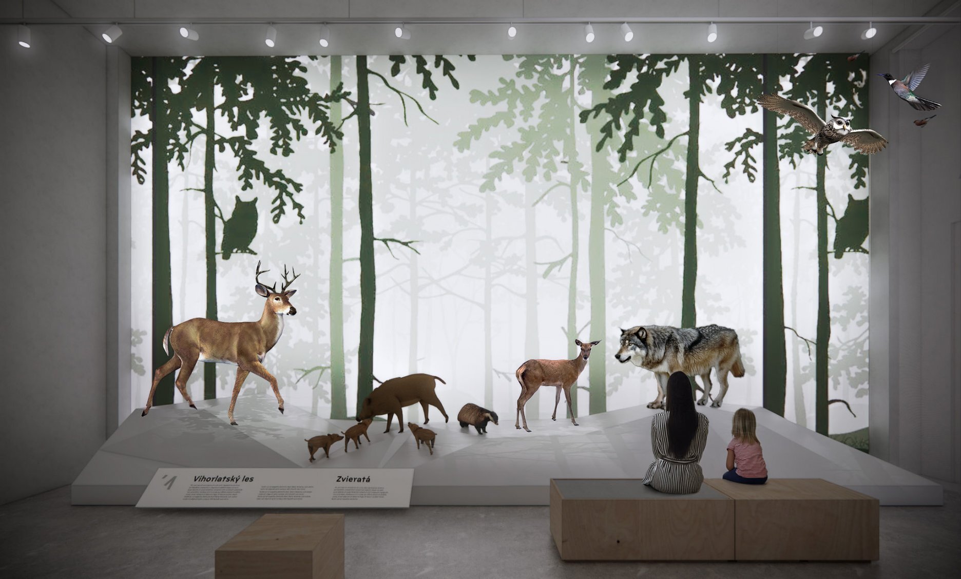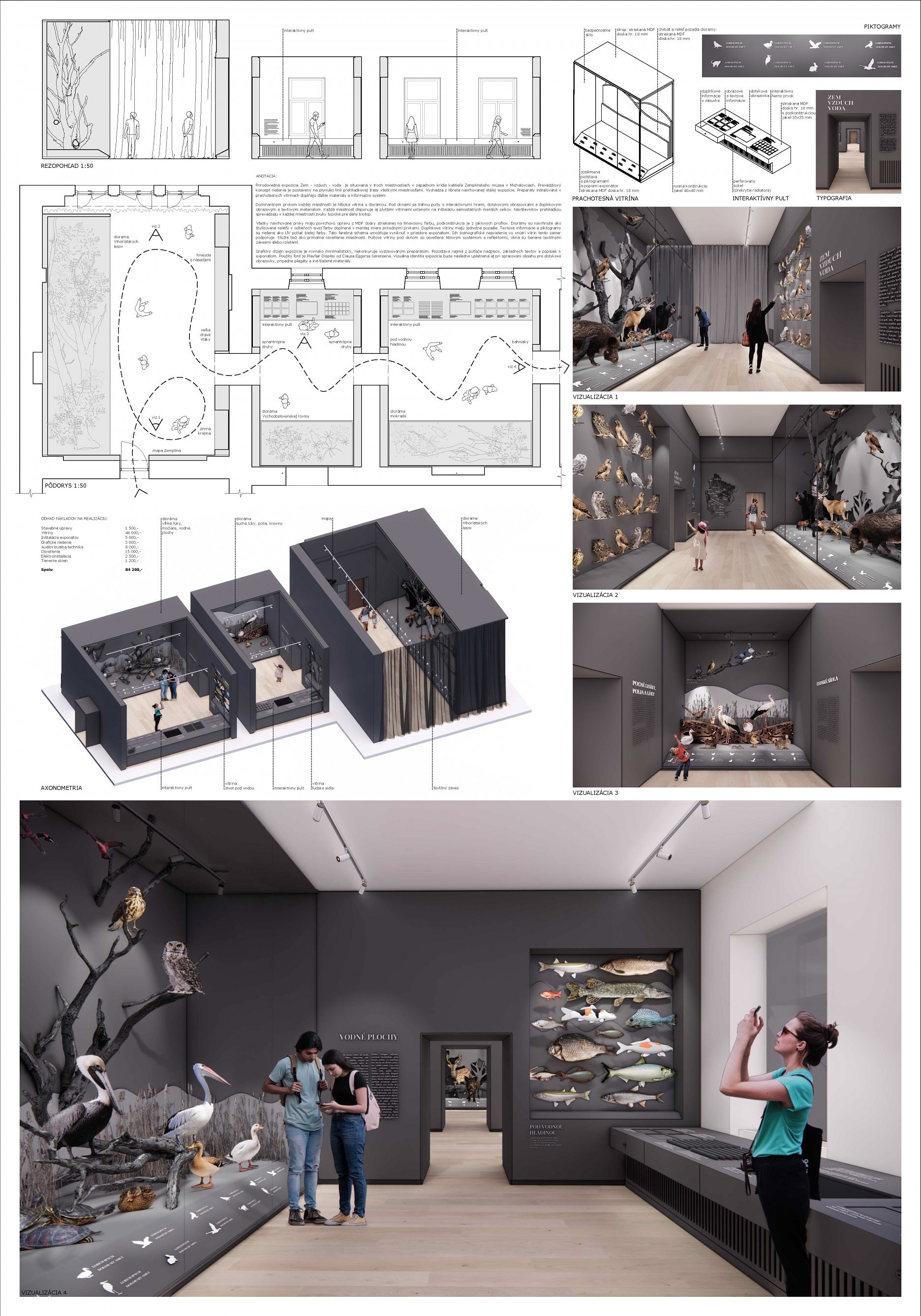 Oceňujeme, čisté a jednoduché prevedenie vitrín, a taktiež, že autor pamätal na existujúce vykurovacie telesá a zohľadnil ich v návrhu skrze vertikálne líniové perforovanie v MDF doskách. Ďalej expozície formou diorám, že nie sú jednotlivé exponáty zaškatuľkované v samostatnej vitríne, ale spoločne vytvárajú obraz živej prírody. Jasná, čistá typografia a rovnako aj využitie piktogramov. Grafika a prevedenie návrhu na vysokej úrovni s popismi jednotlivých výstavných prvkov.