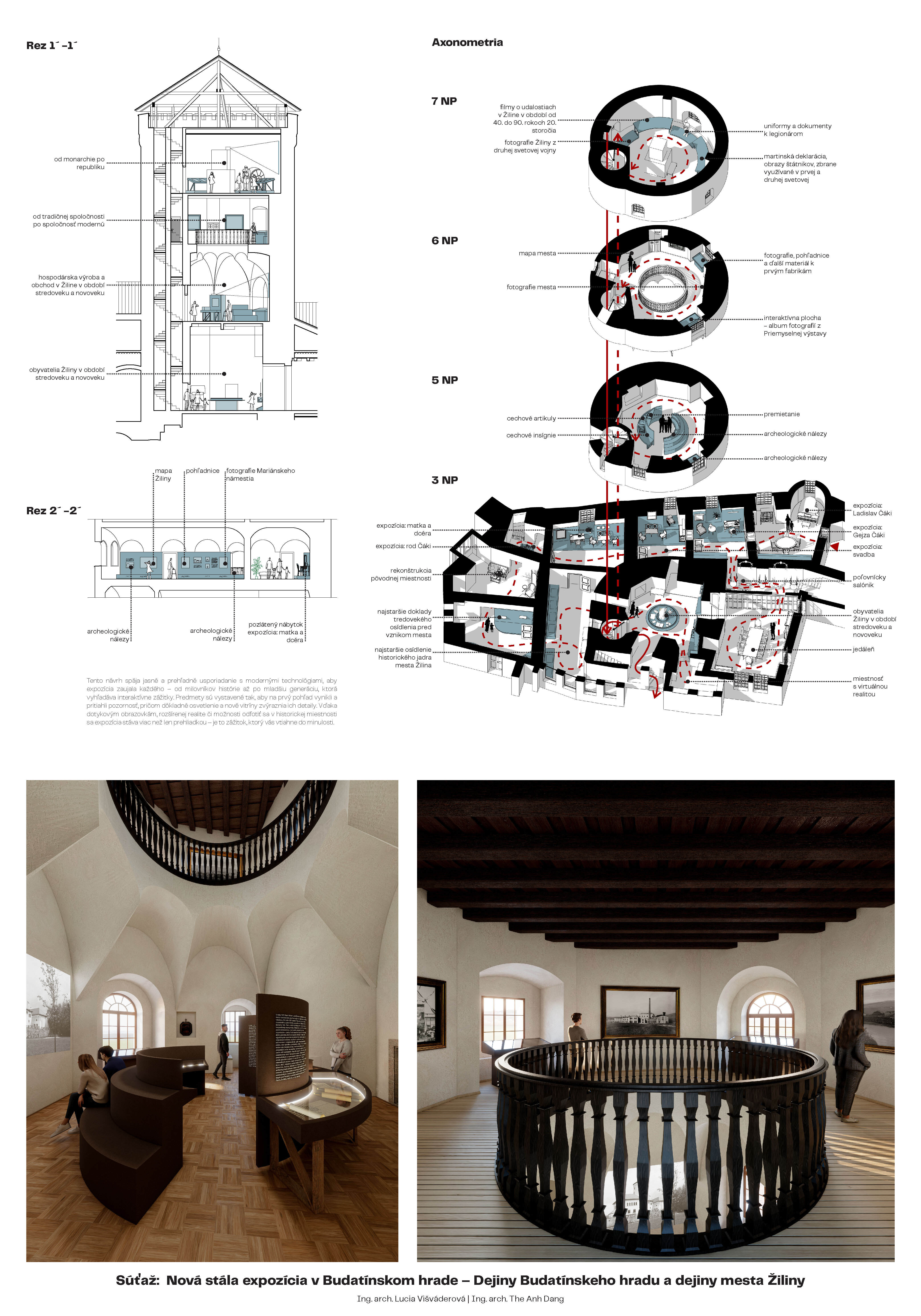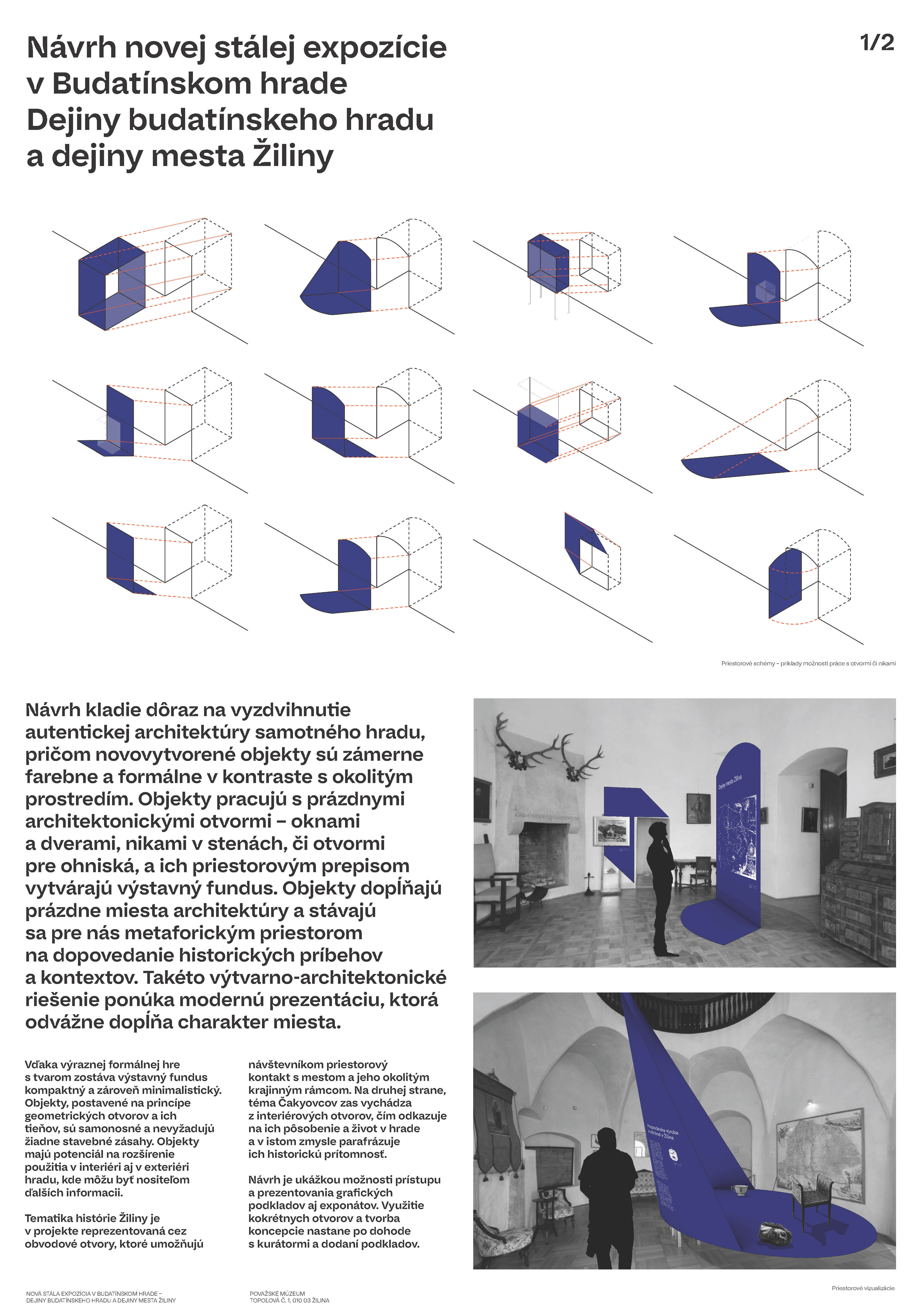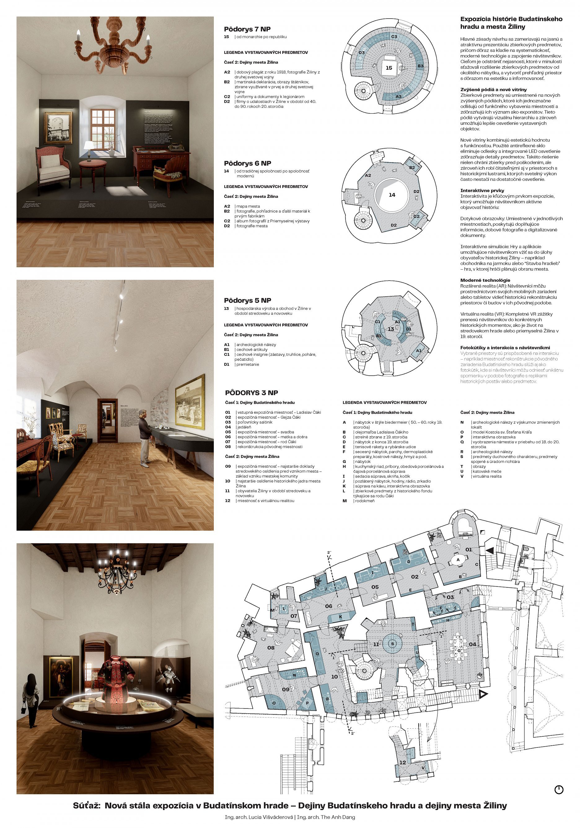 Autori vo svojom návrhu pracovali s charakteristickým gestom vychádzajúcim z priestorových špecifík Budatínskeho hradu. V koncepčnej rovine sa zamerali na extrakciu a symbolickú transpozíciu okenných a dverných otvorov, či iných historických ník, ktoré by v expozícii slúžili ako plošné či priestorové platformy pre vizuálne a textové informácie, či nosiče exponátov. To v náznakoch aj demonštrovali, aj keď treba povedať, že nie príliš obratne. Zaujímavejším dôsledkom tejto manipulácie bola potenciálna schopnosť modelovať novú vrstvu priestorových intervencií, ktoré sa v prezentácii tiež ilustratívne objavili. Porota ocenila koncepčnosť prístupu a „totálnosť“ návrhu, avšak zároveň zhodnotila, že prezentované aplikácie pôvodného autorského zámeru boli nejasné, schematické a minimálne rozpracované do zrozumiteľne formulovanej stratégie, či možných postupov. Rovnako aj reflexia spracovávaného obsahu sa zúžila na základnú diferenciáciu dvoch paralelných expozičných línií, ktorá však nebola v predloženom návrhu dostatočne zrejmá.
