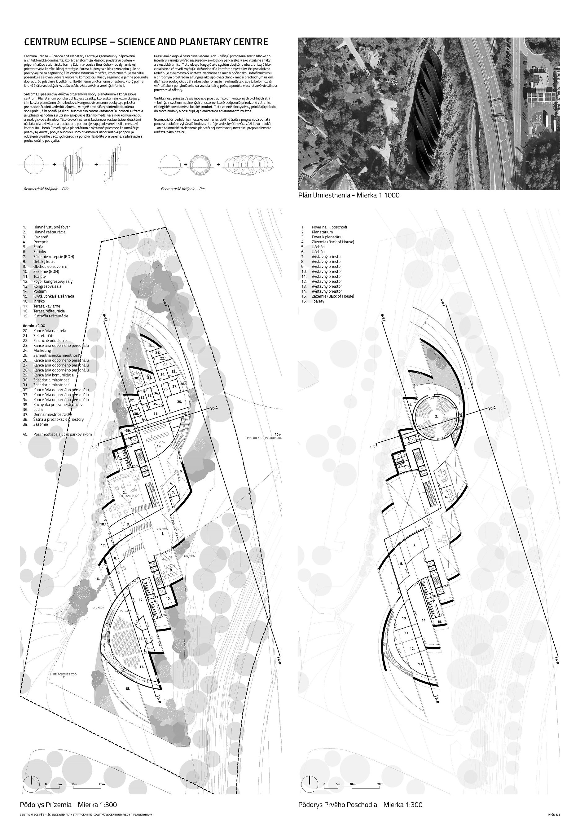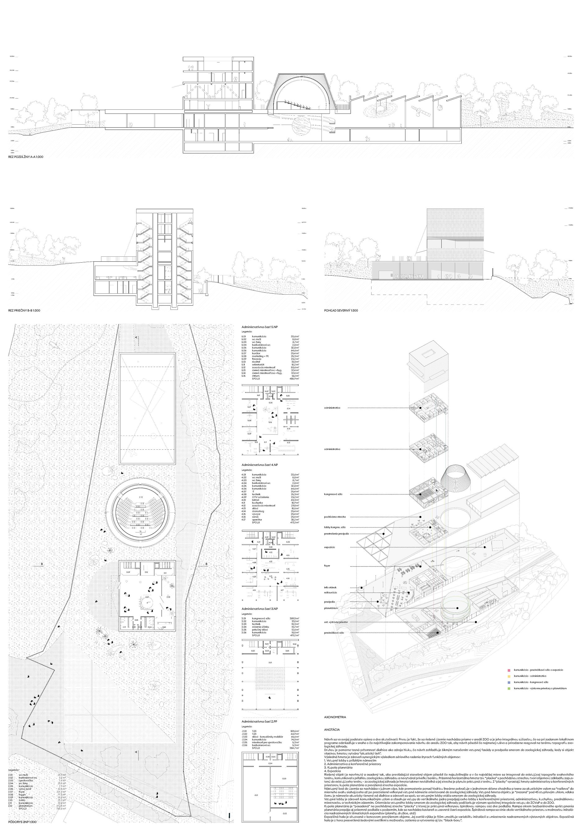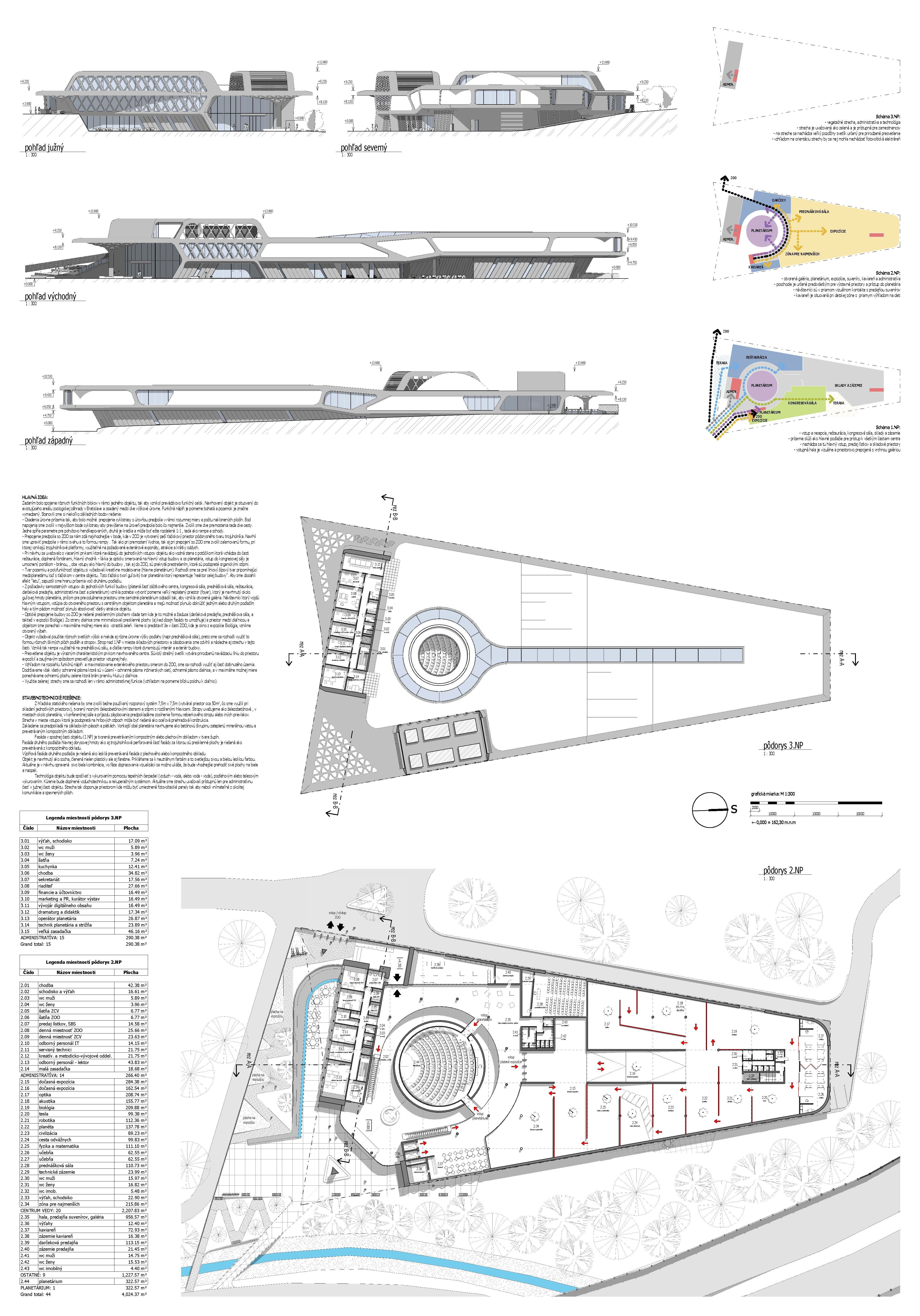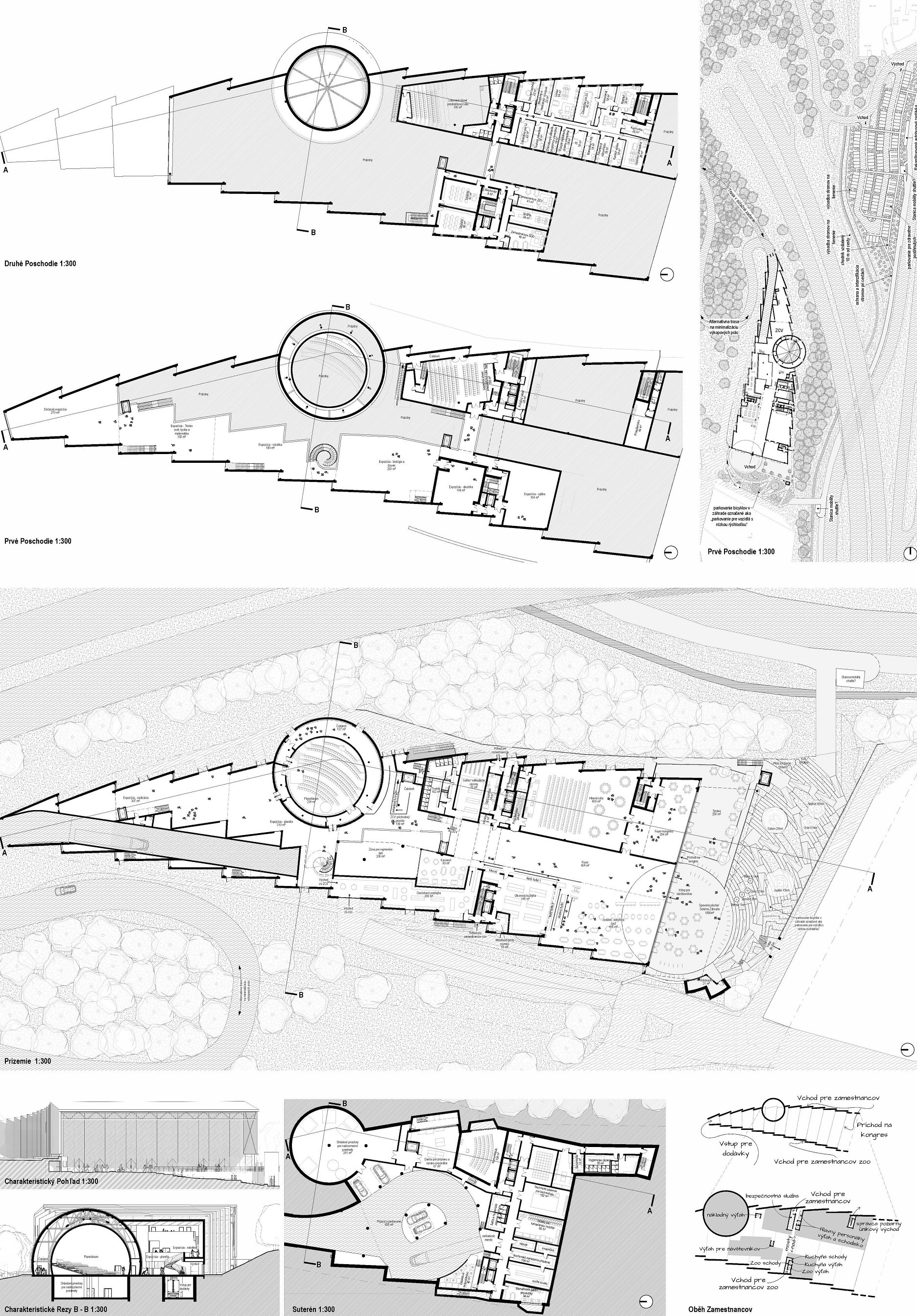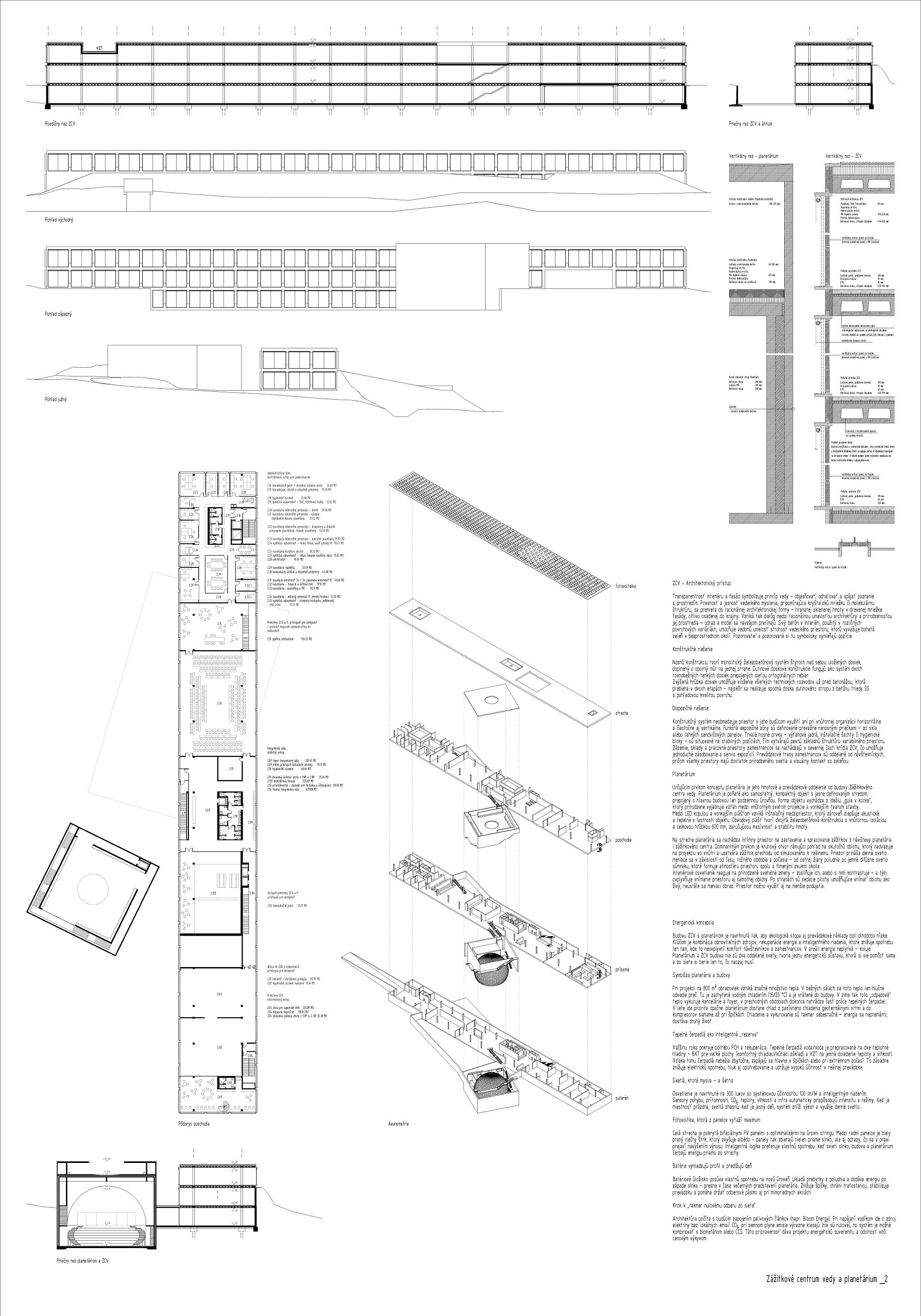 Porota pri predloženom návrhu ocenila celkový koncept, ktorý sa pretavil aj do návrhu zhromažďovacích plôch v okolí objektu. Vstup do územia je umiestnený vo vhodnom bode z pohľadu vzdialenosti od parkoviska. Dve úrovne nástupu pre návštevníkov ponúkajú bezkonfliktnú prevádzku pre kongresovú časť a ZCV, pričom sa ponúka aj možnosť oddeleného využitia planetária a prednáškových priestorov. Dispozícia je teda jednoznačná, administratívny blok je príjemne rozdelený na časť lektorov k učebniam a ostatných zamestnancov, vhodne sa javí aj vonkajšie riešenie zásobovania. Výnimkou je zásobovanie a prevádzka kuchyne s komplikovaným prístupom cez úzku chodbu.