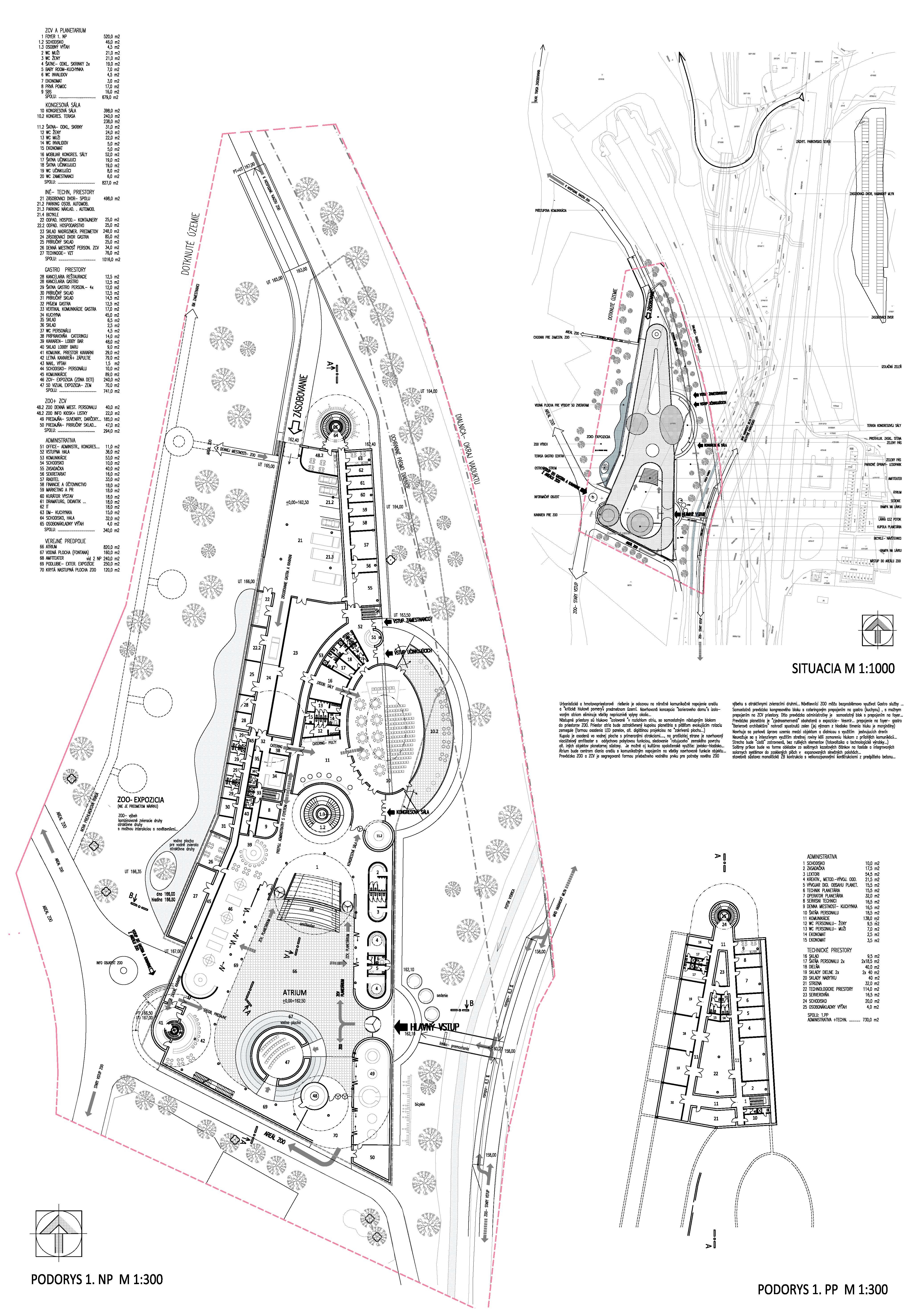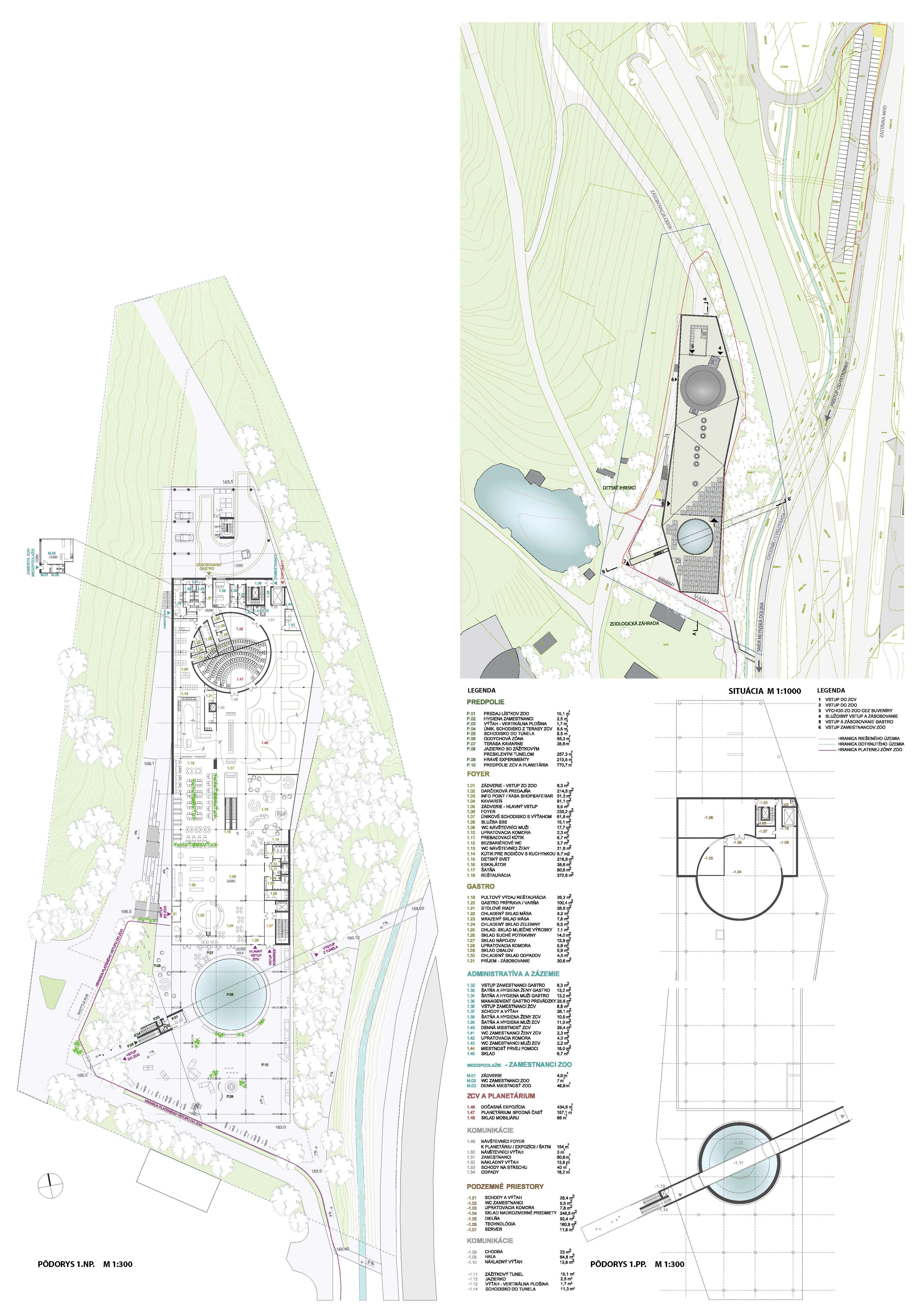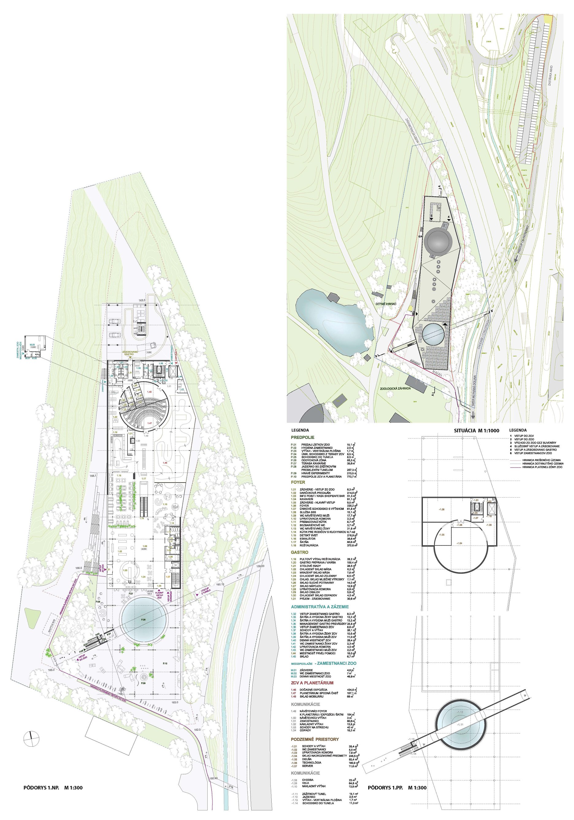 Návrh predstavuje jednoznačné urbanistické gesto, ktorého orientáciu potvrdzuje aj vzťah ku svetovým stranám. Lapidárna obdĺžniková pôdorysná stopa doplnená o kruh vytvára ikonický a ľahko zapamätateľný obraz. Parter domu živo komunikuje na všetky strany, čo je všeobecne správne, no v tomto prípade vzniká otázka, či je táto stratégia vhodná na danom mieste, ktoré je skôr hranicou než voľným priestorom. Klesajúci terén, ktorý akoby pretekal zo ZOO voľne cez dom a končil pri akustických stenách diaľnice, je obrazom, ktorý nie je vhodné tematizovať. Prekvapivé je tiež vedenie prístupového chodníka dlhou cestou okolo domu, čo je v úplnom rozpore s gravitačnou príťažlivosťou planetária. To by pre prichádzajúcich návštevníkov mohlo pôsobiť ako malý zázrak, ktorý treba bezodkladne preskúmať.
