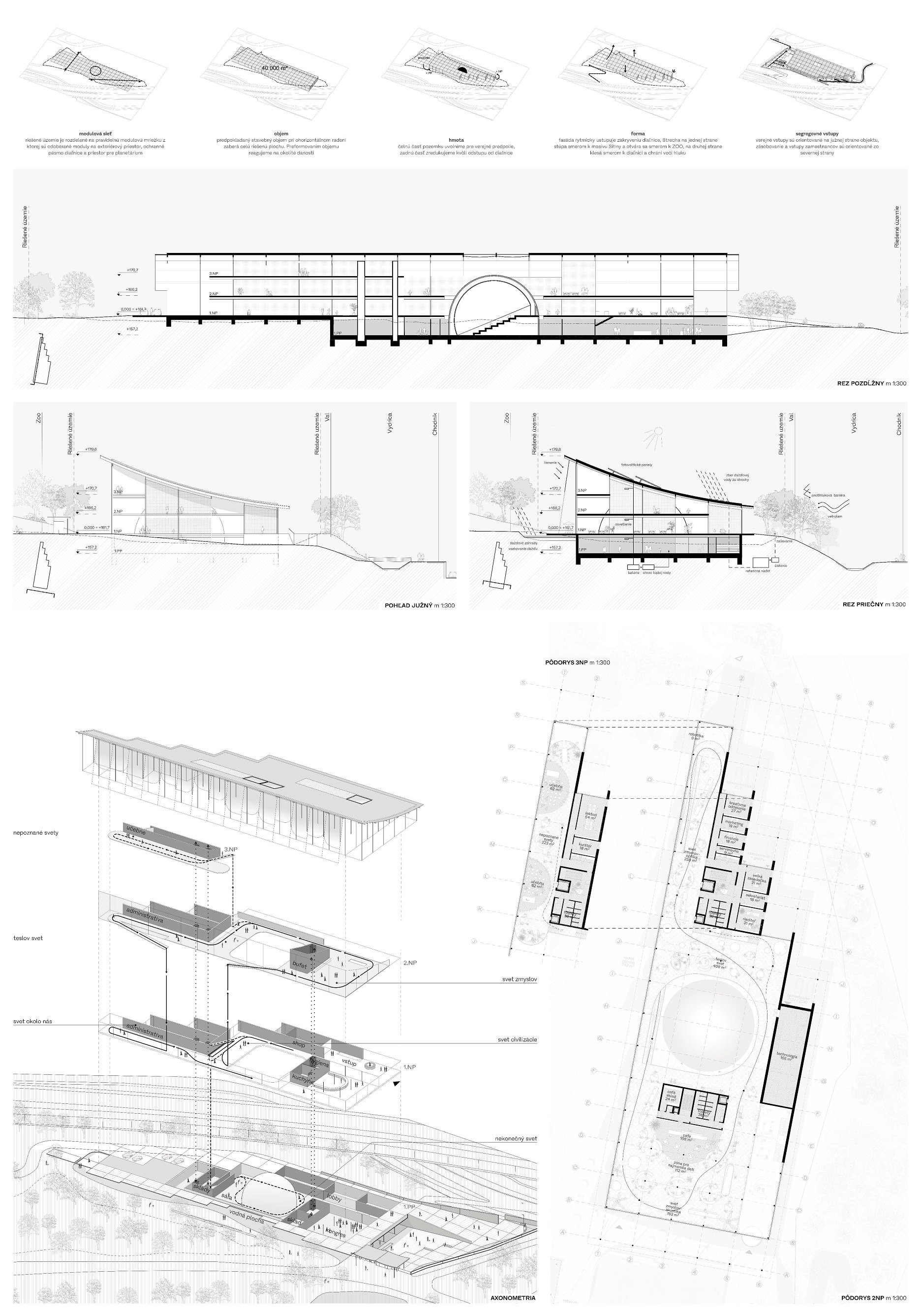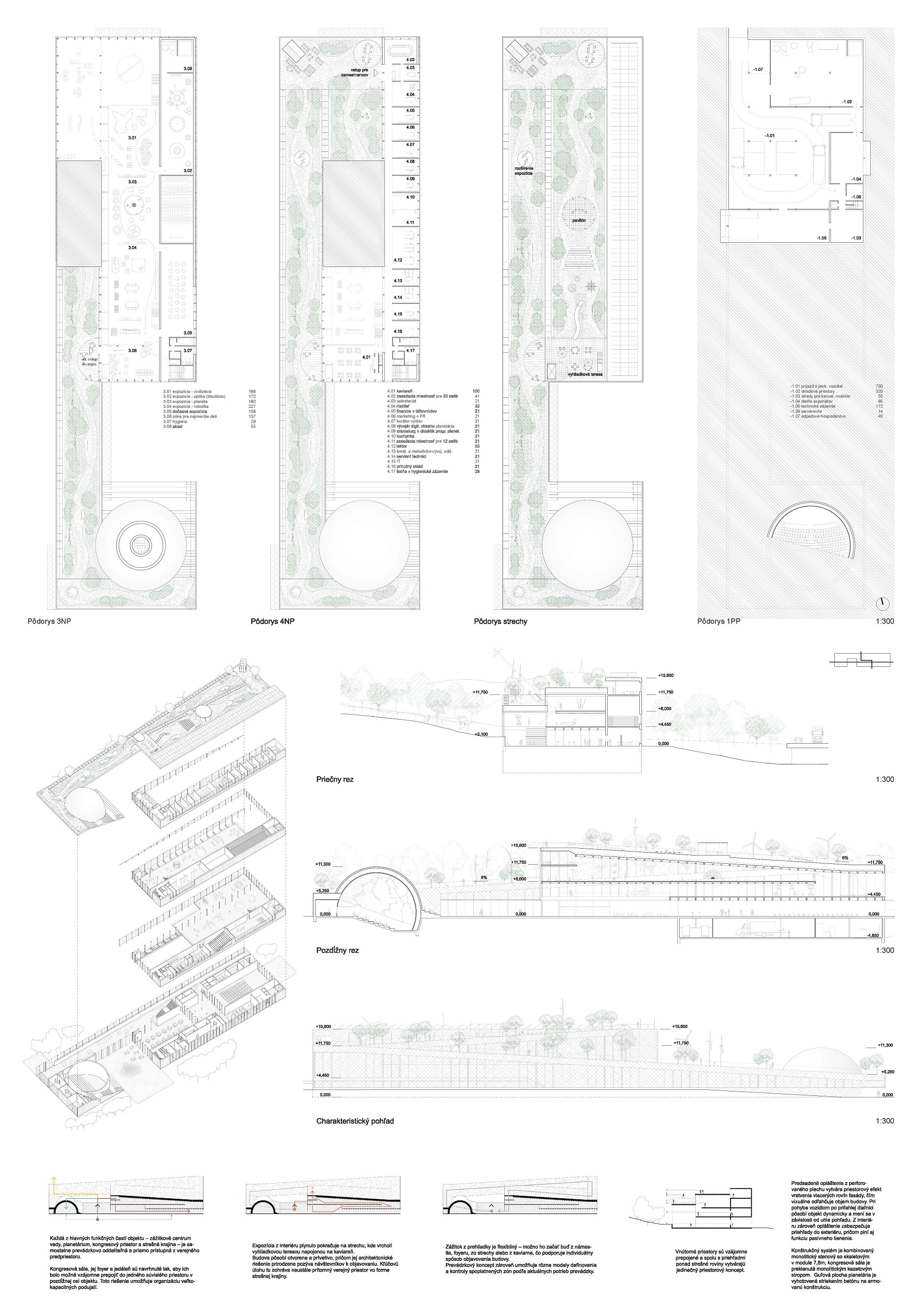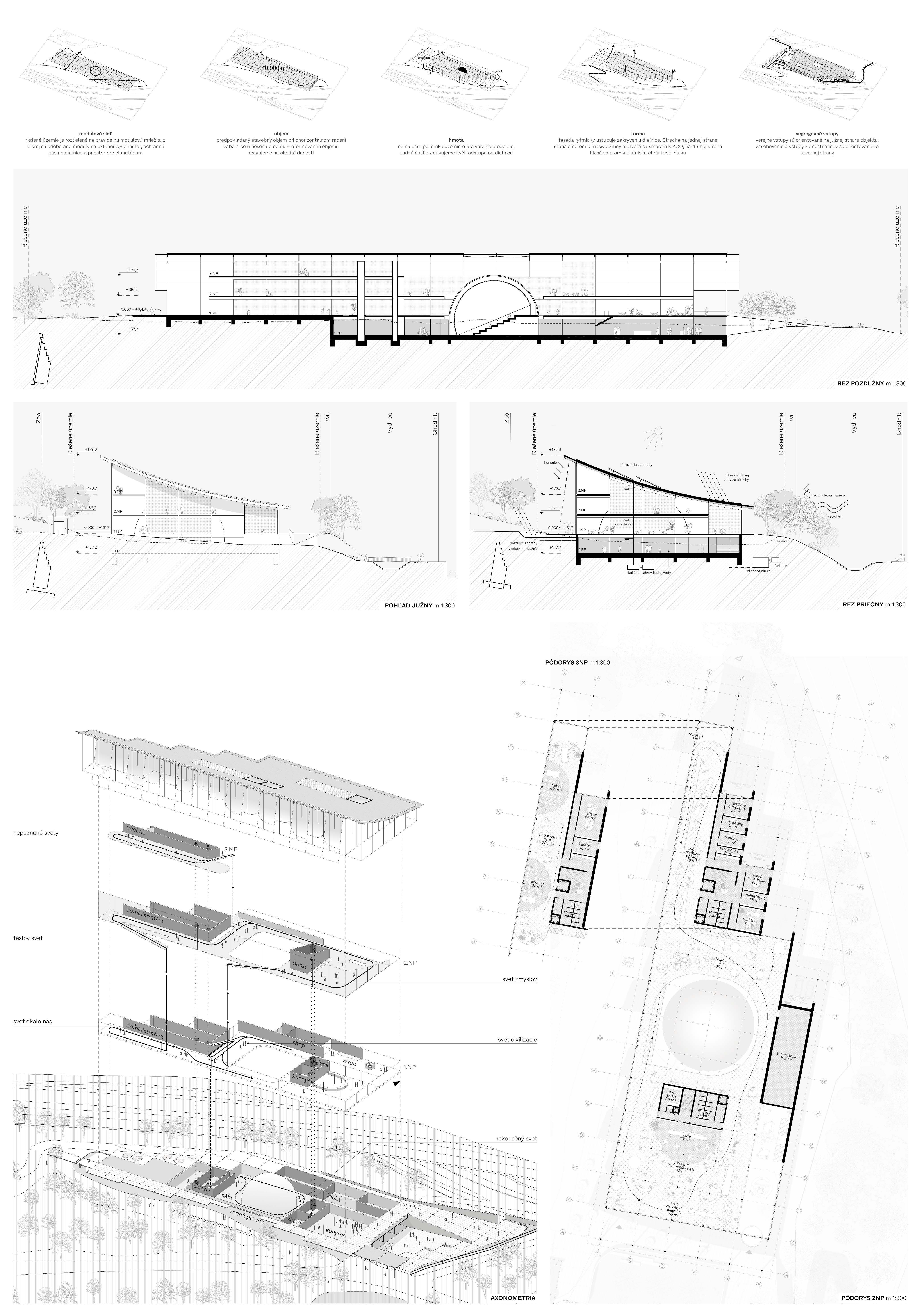 Napriek na prvý pohľad úspornej hmote, ktorá nezaberá veľkú podlažnú plochu, projekt predstavuje jeden z najobjemnejších návrhov. Grafické spracovanie je na vysokej úrovni s jasne a čitateľne vyjadrenou hlavnou myšlienkou.