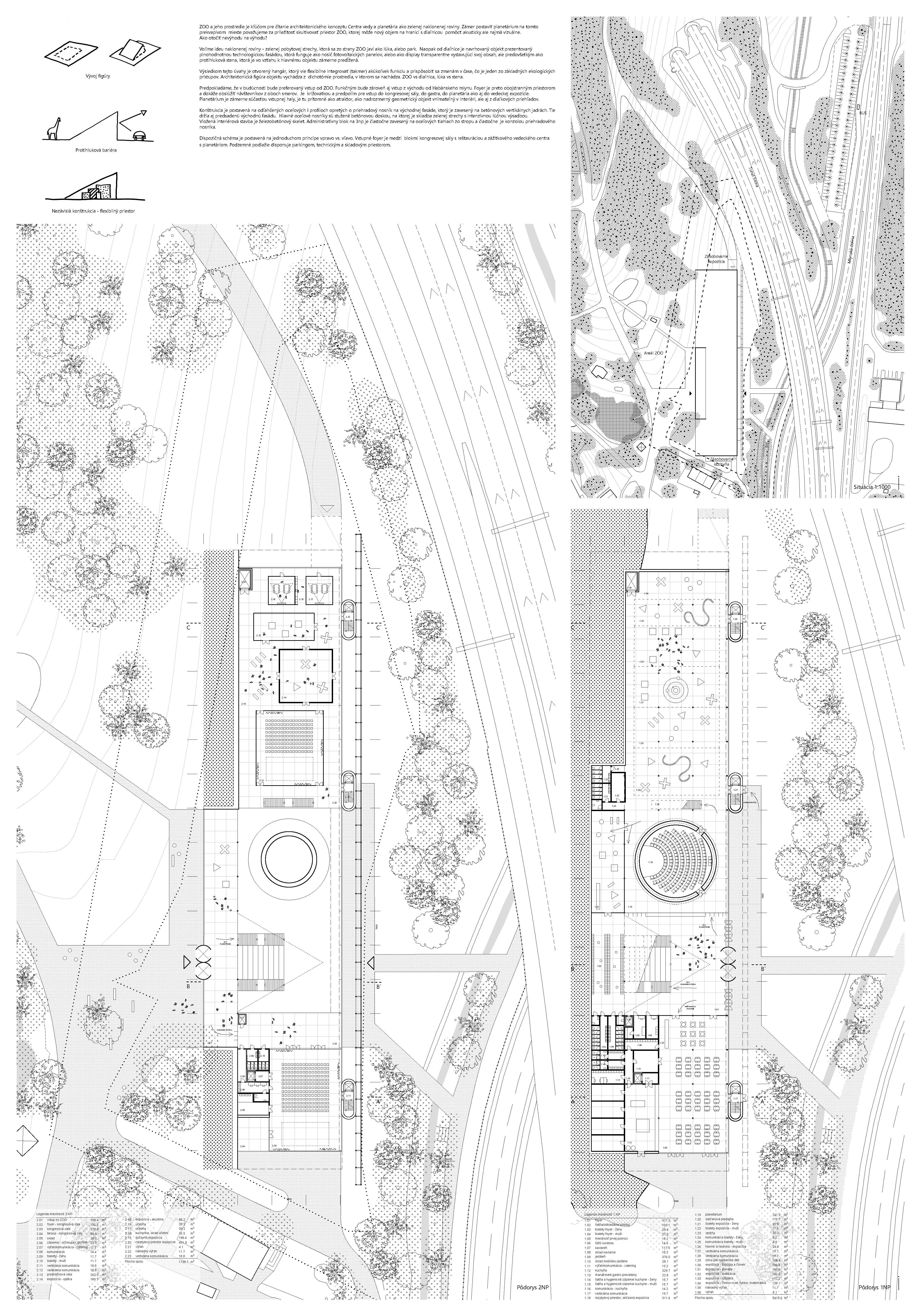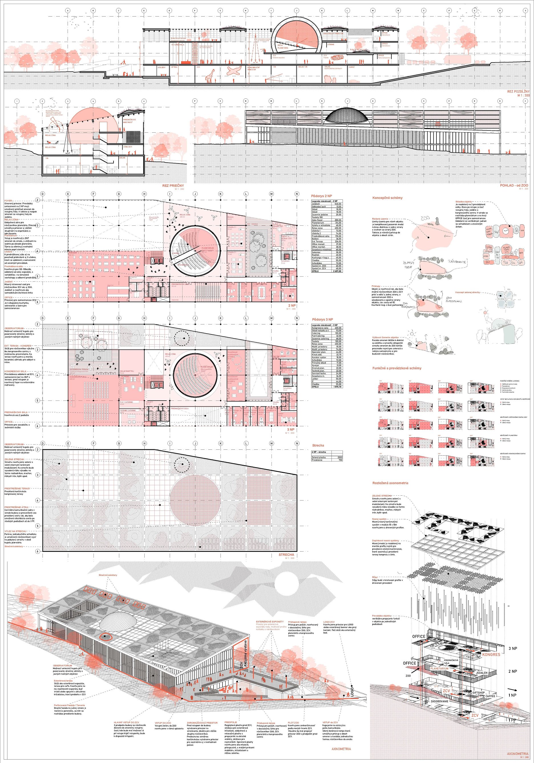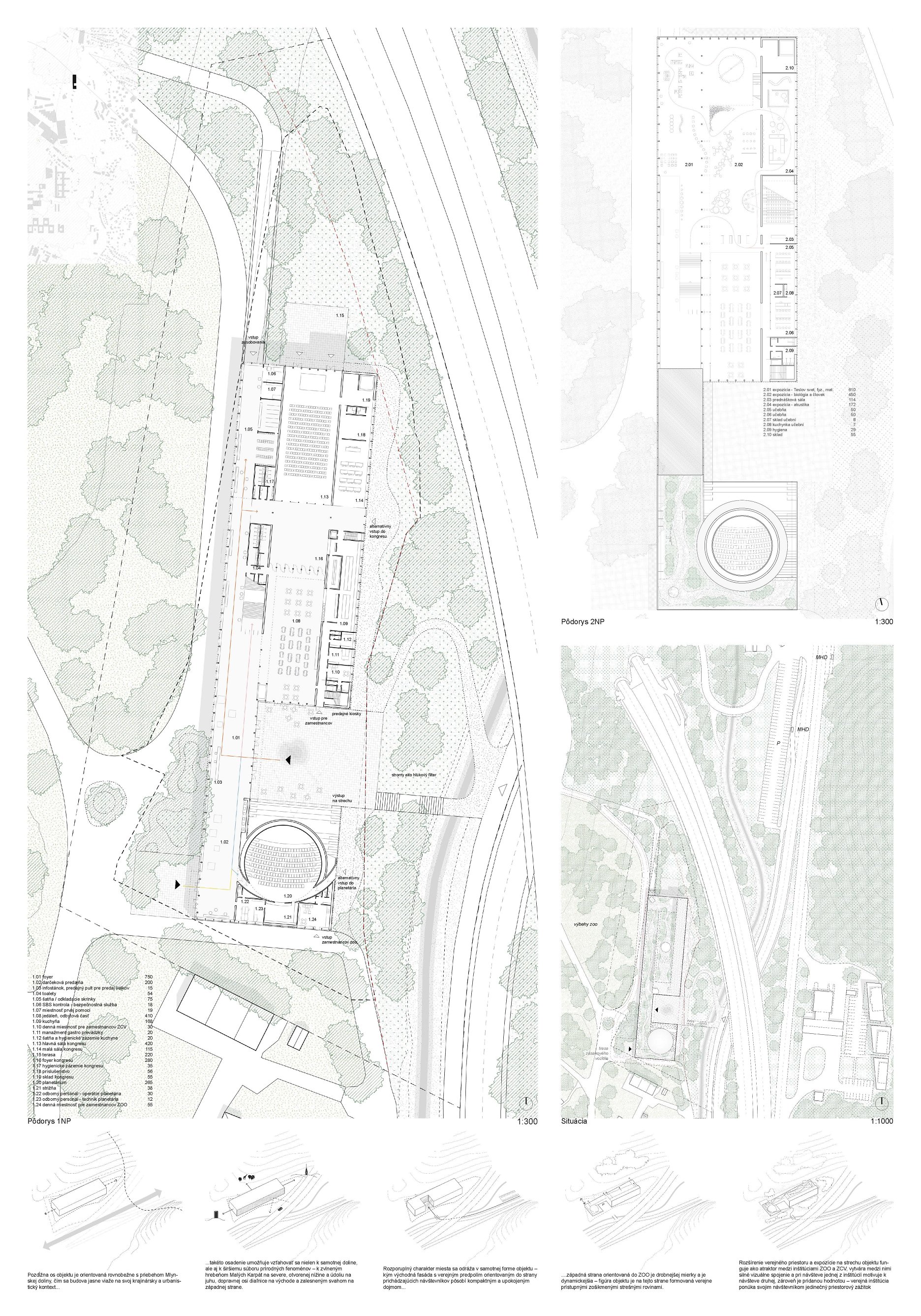 Napriek na prvý pohľad úspornej hmote, ktorá nezaberá veľkú podlažnú plochu, projekt predstavuje jeden z najobjemnejších návrhov. Grafické spracovanie je na vysokej úrovni s jasne a čitateľne vyjadrenou hlavnou myšlienkou.
