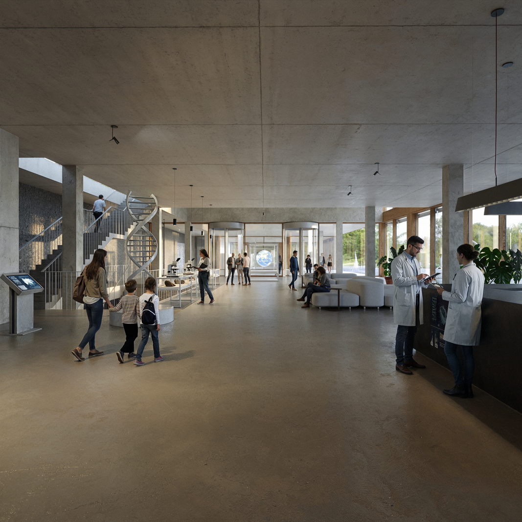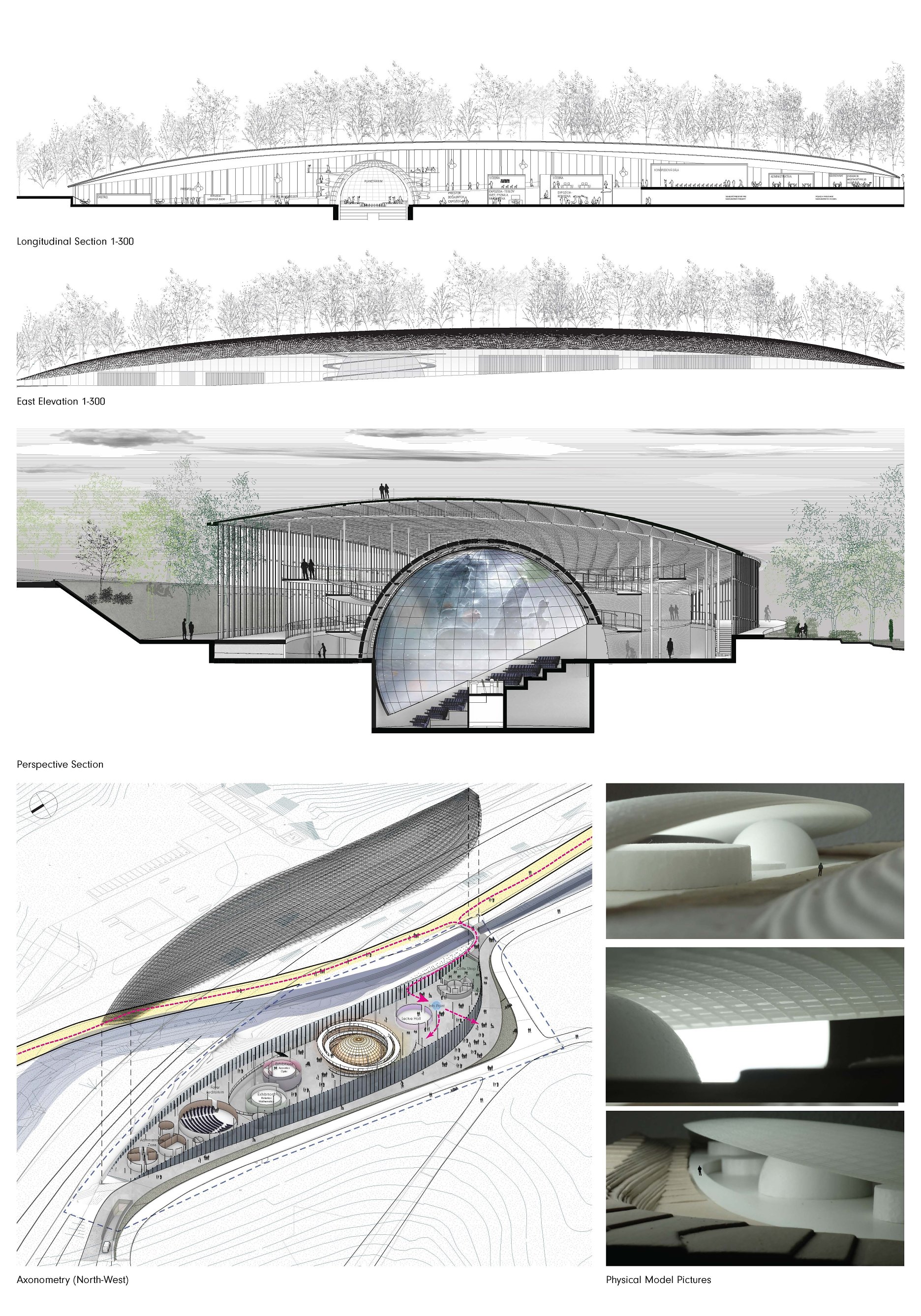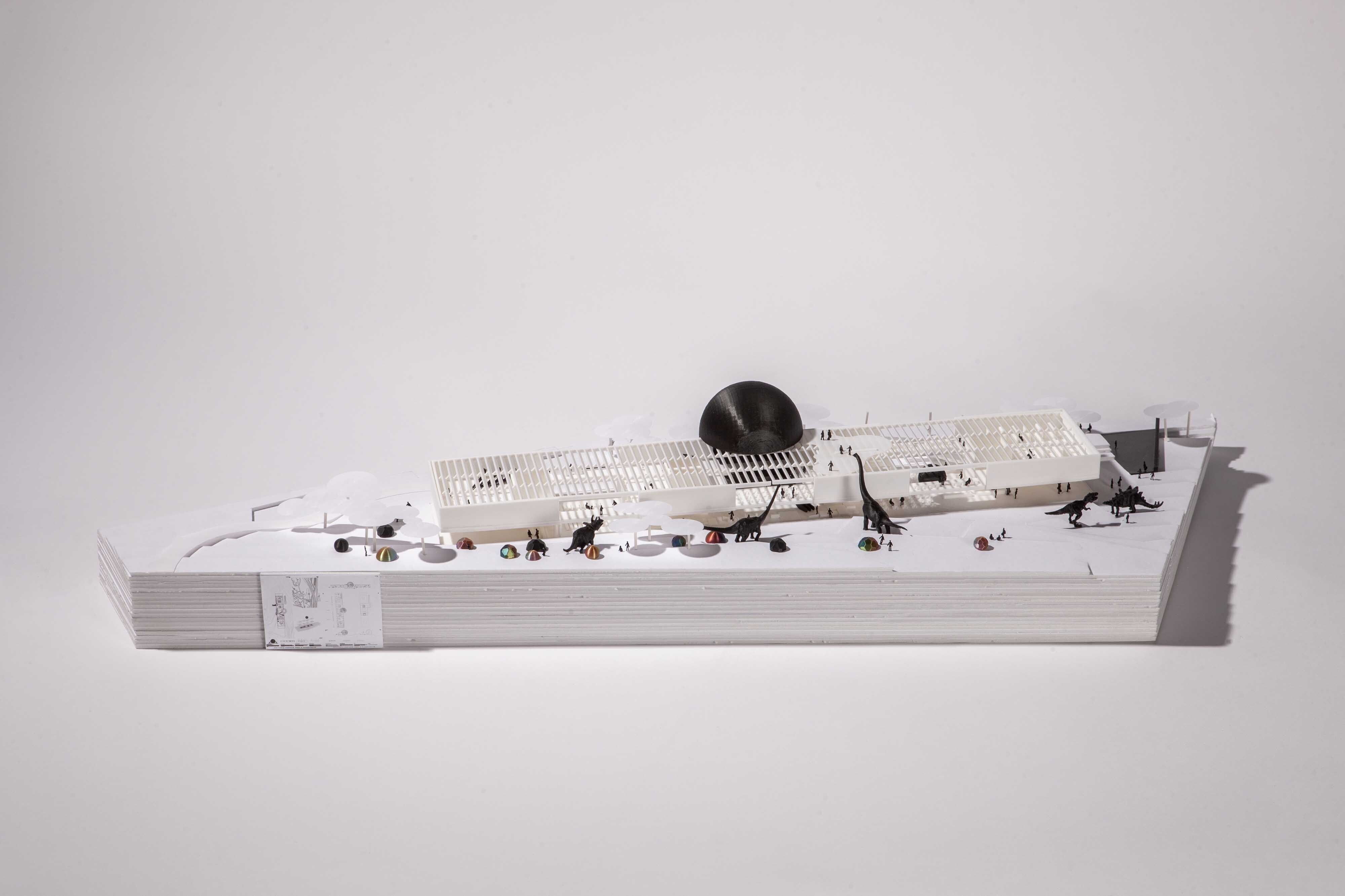 Veľkoryso založený koncept jedného objektu, ktorý obsahuje všetko pod jednou strechou. Prístupová cesta je sympaticky vedená priestorom lesoparku a vstup do budovy zároveň vytvára vstup do ZOO. Obrovská mierka objektu je rafinovane zjemnená rastrom fasády, ktorý sa formálne prepisuje aj do strechy. Hlavnou témou je veľkorozponová strecha, ktorá prináša flexibilitu do budúcnosti, no jej konštrukcia pôsobí veľmi nákladne, rovnako ako masívne presklené fasády. Dispozície sú funkčne členené, no expozície sú prekvapivo umiestnené až na severnom konci objektu. Neadekvátny objem, náročné konštrukcie, rozsiahly suterén a bohaté presklenie by viedli k vysokej uhlíkovej stope, vysokej spotrebe energií a vysokým stavebným nákladom.