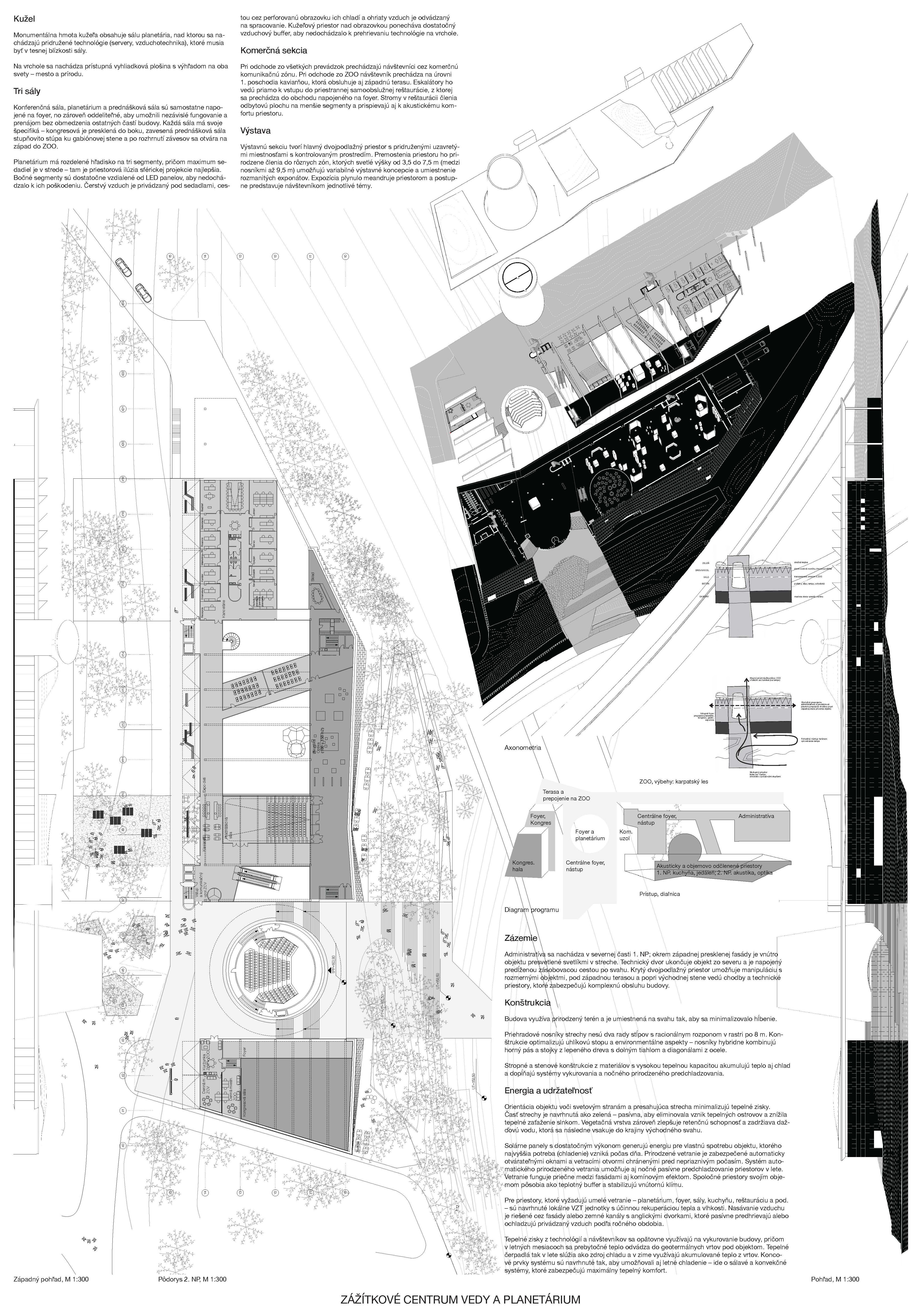 „Víťazný návrh na Zážitkové centrum vedy a planetárium vyšiel z náročnej kompetície. Pomerne veľký počet súťažných tímov preveril zadanie investora vo všetkých smeroch,“ zhodli sa členovia odbornej poroty, ktorí skonštatovali vysokú úroveň spracovania väčšiny návrhov a ich celkový prínos do diskusie o kvalitnom riešení zámeru vybudovania Zážitkového centra vedy a planetária.