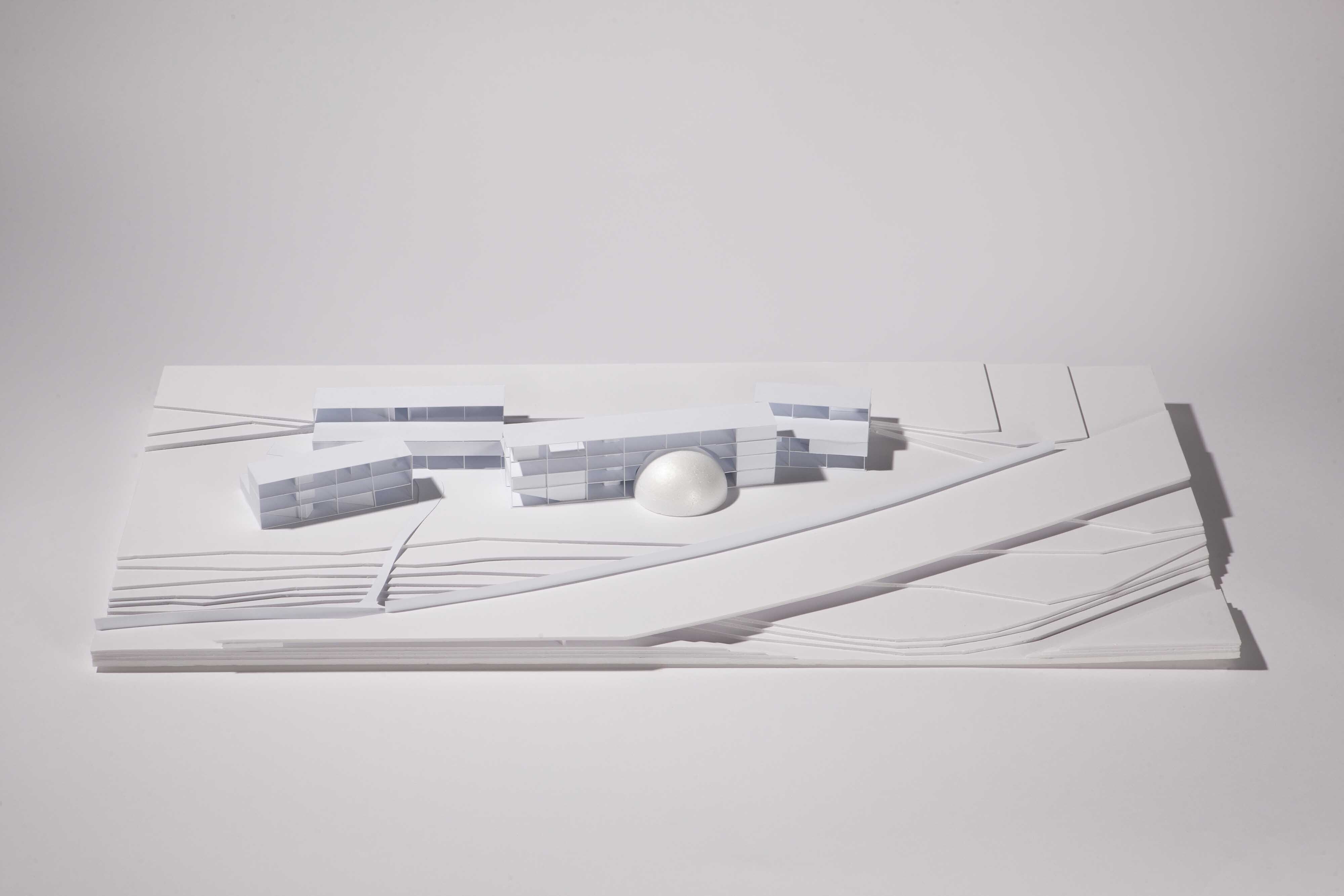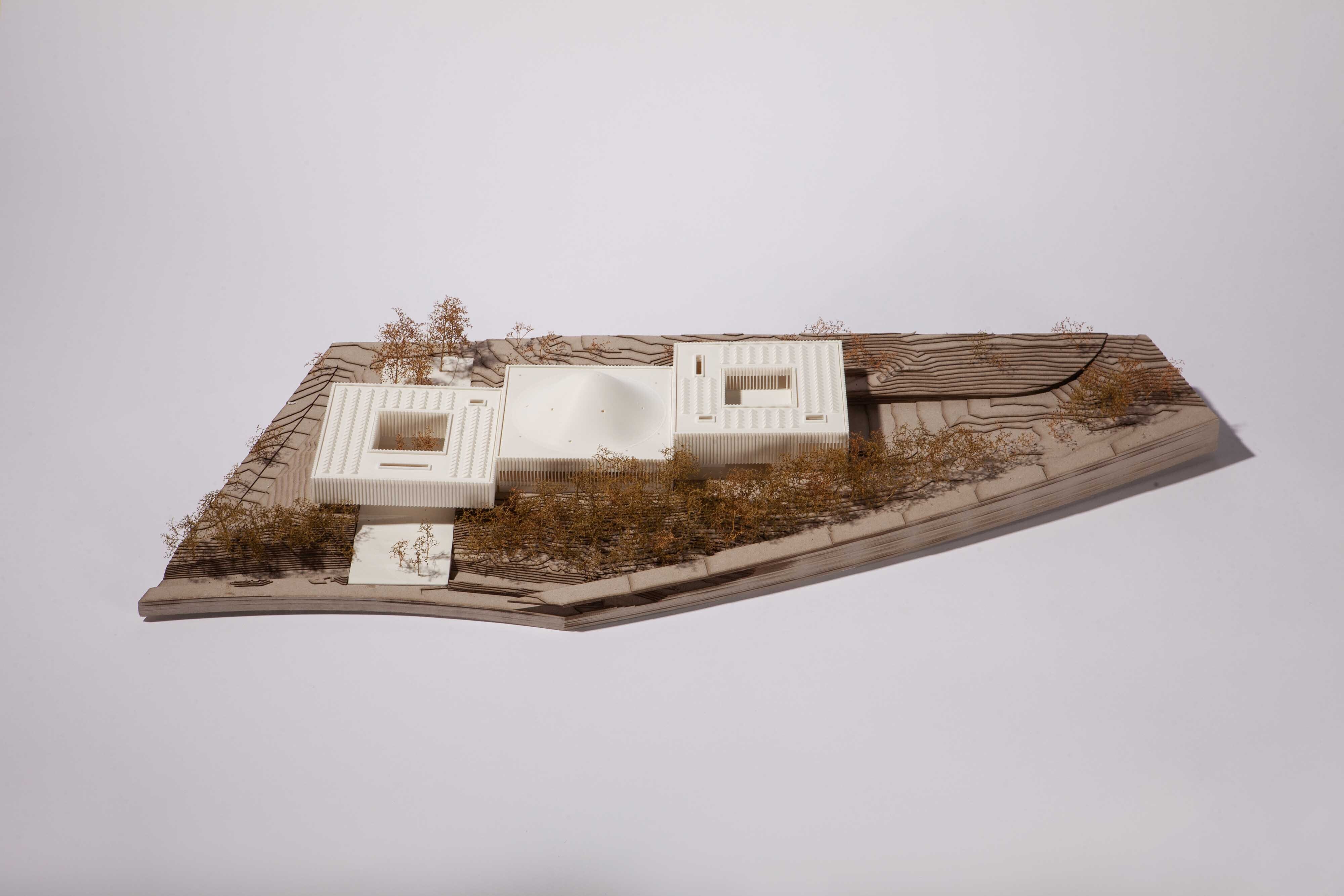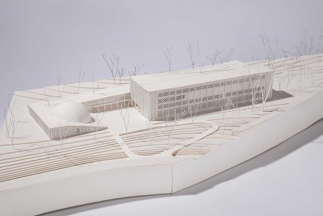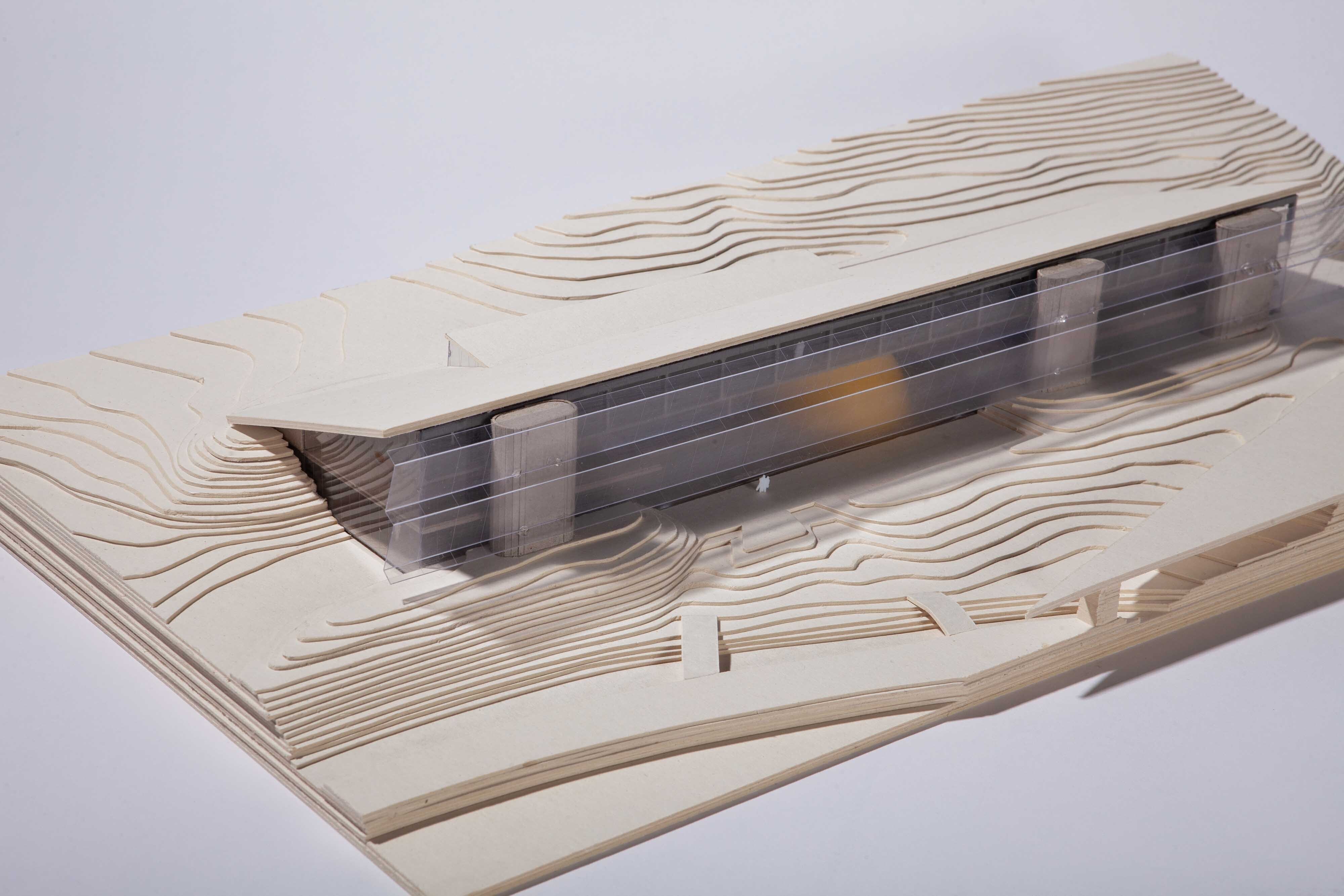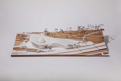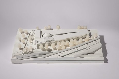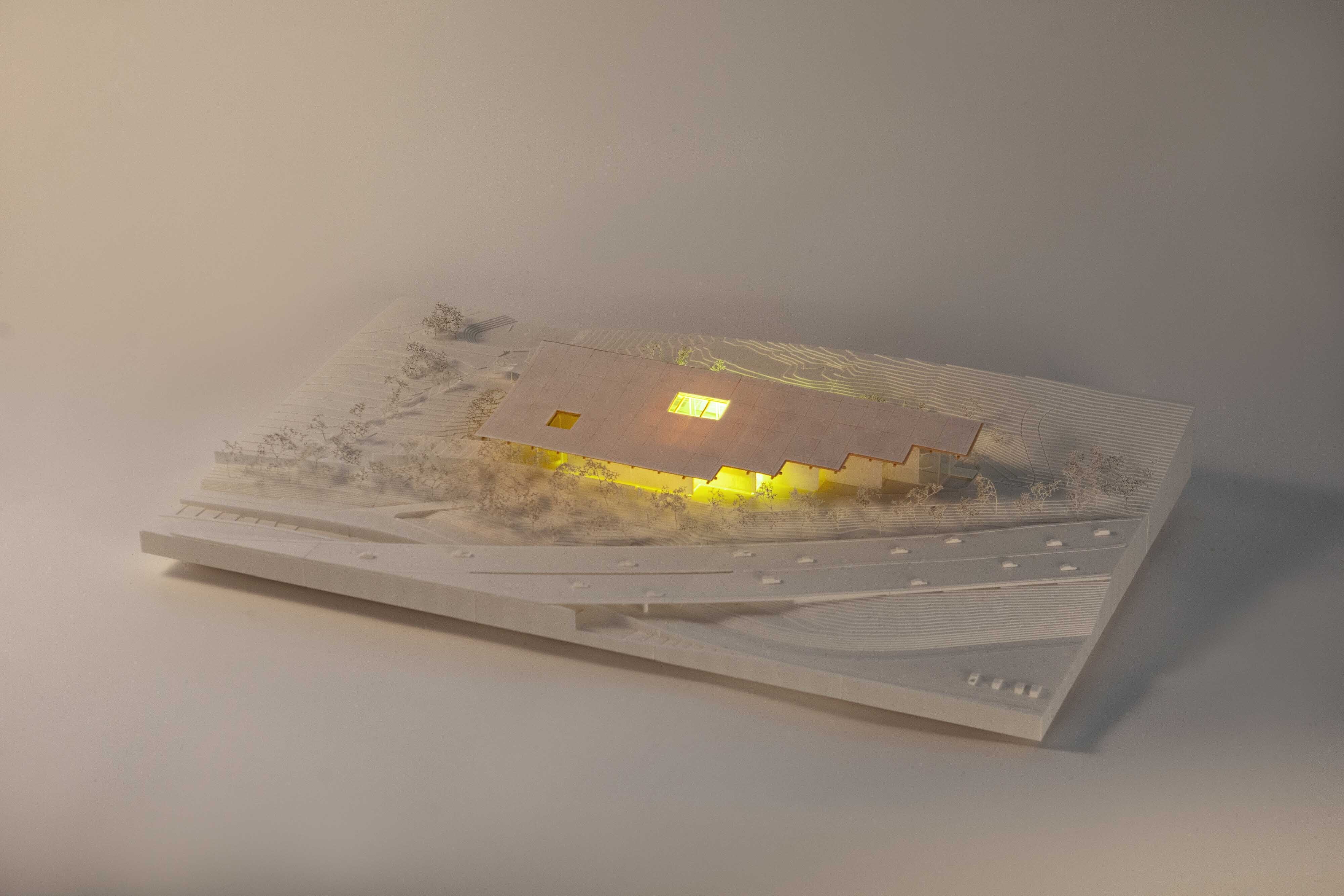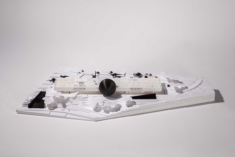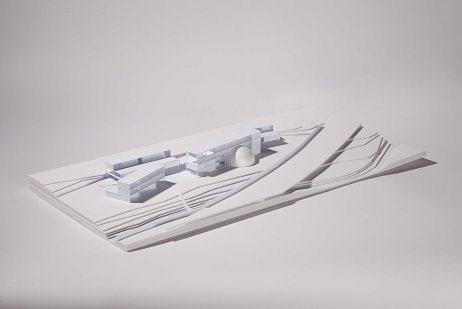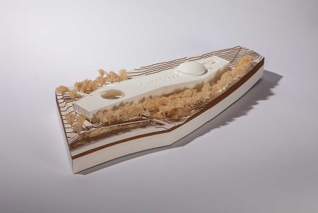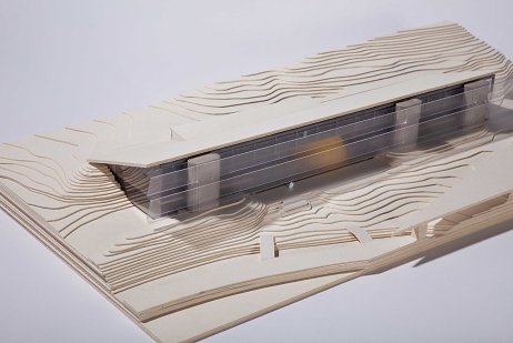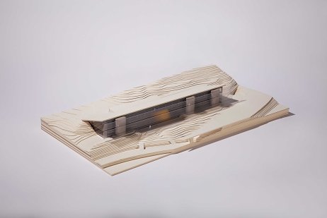 Jednoduché a kultivované grafické podanie konceptu silne podporil fyzický 3D model. Ako skratka, ktorá abstrahovala celkové riešenie, doplnil výsledný dojem z návrhu a adekvátnosť jeho nenápadného, nevtieravého vstupu do prostredia.
