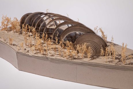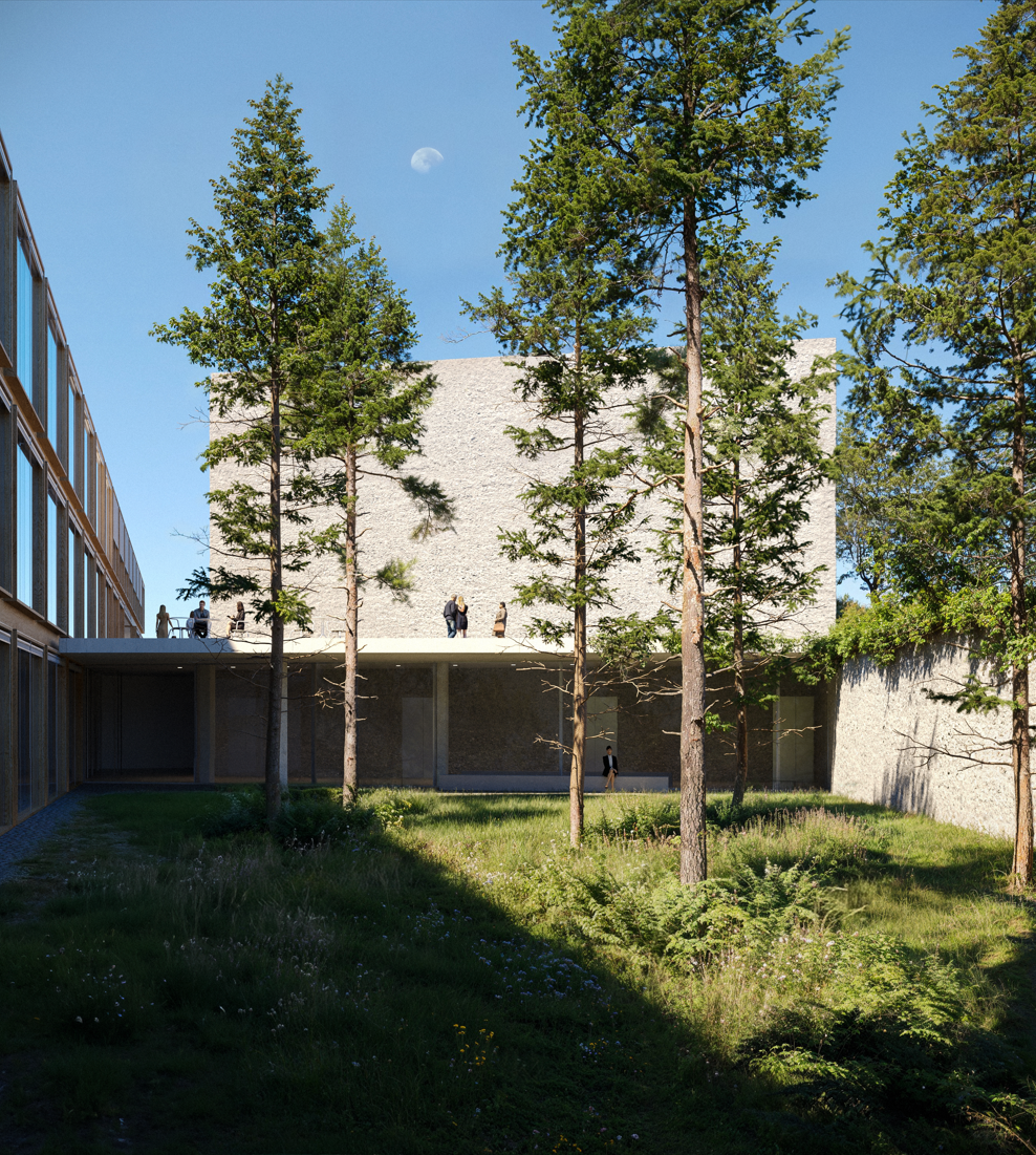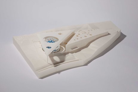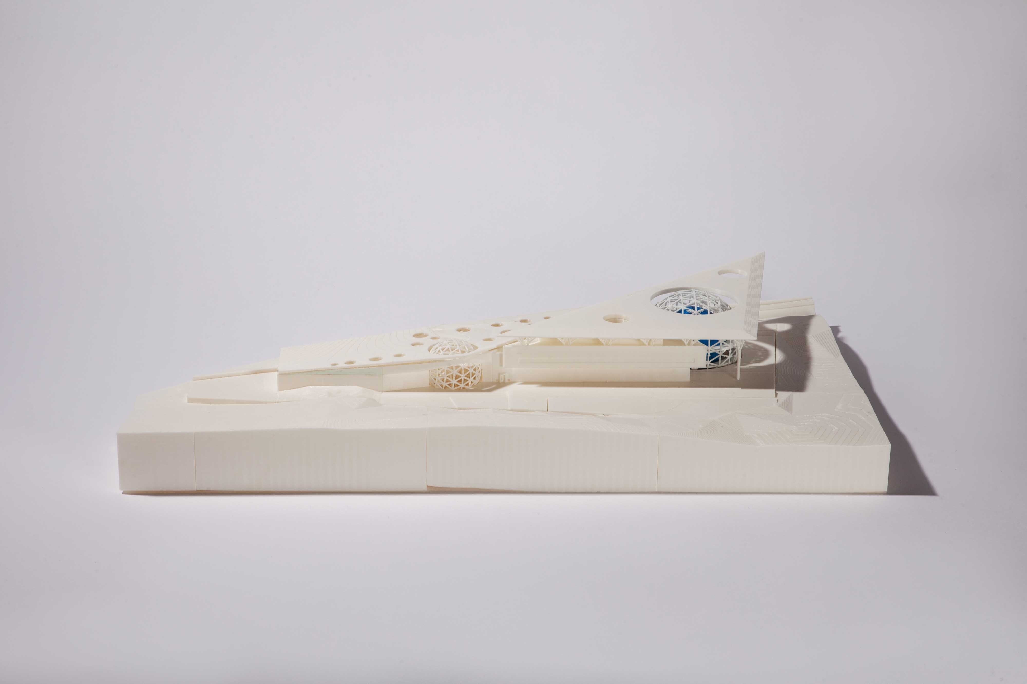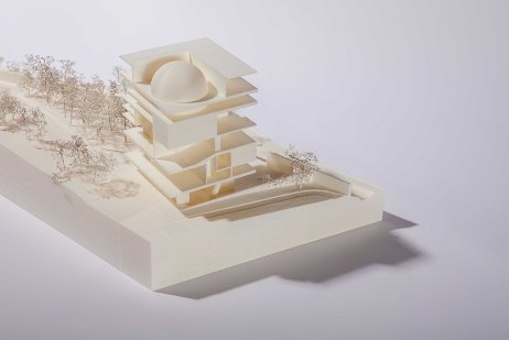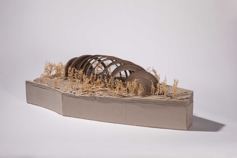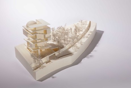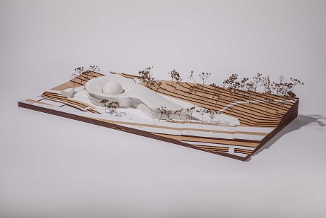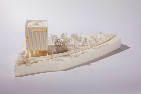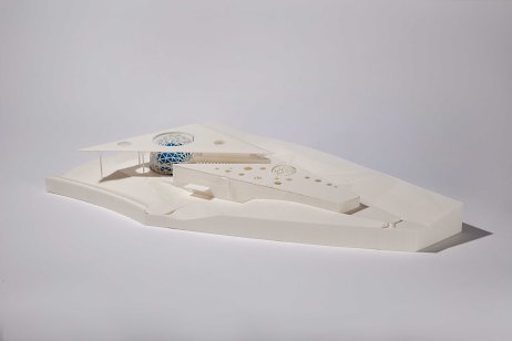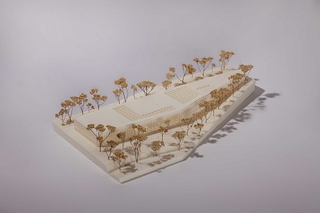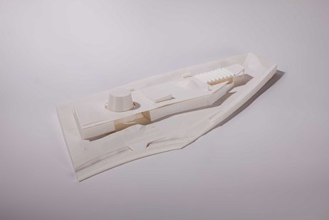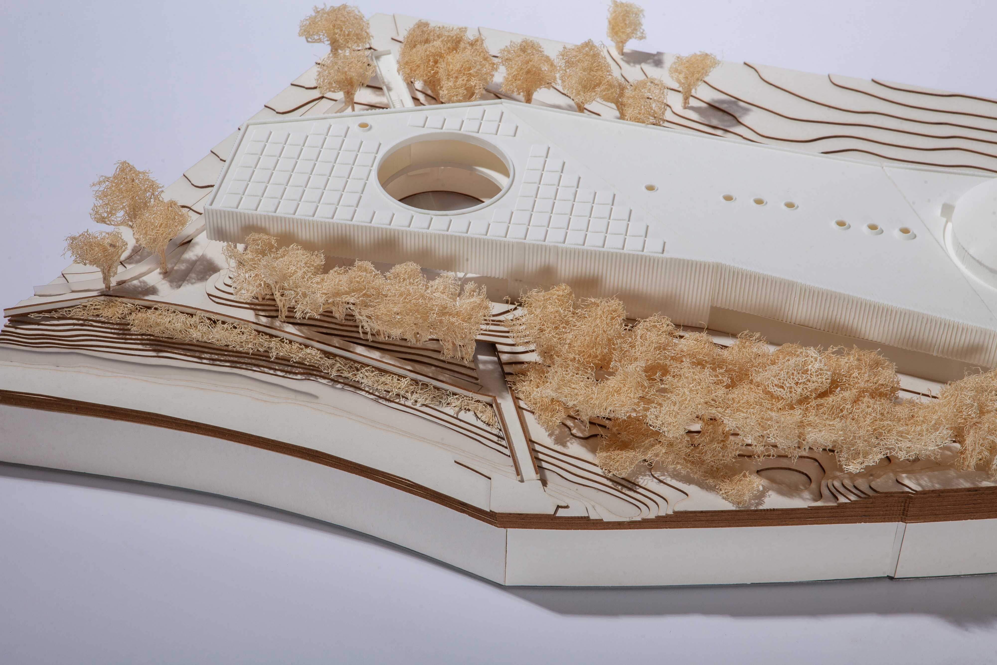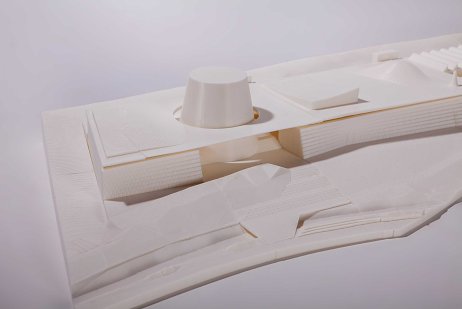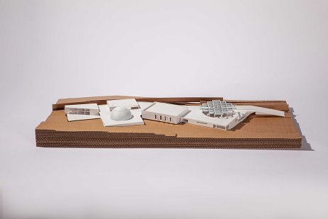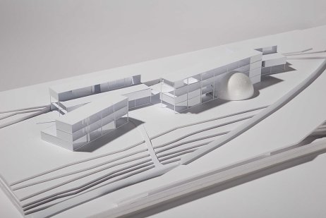 Jednoduché a kultivované grafické podanie konceptu silne podporil fyzický 3D model. Ako skratka, ktorá abstrahovala celkové riešenie, doplnil výsledný dojem z návrhu a adekvátnosť jeho nenápadného, nevtieravého vstupu do prostredia.