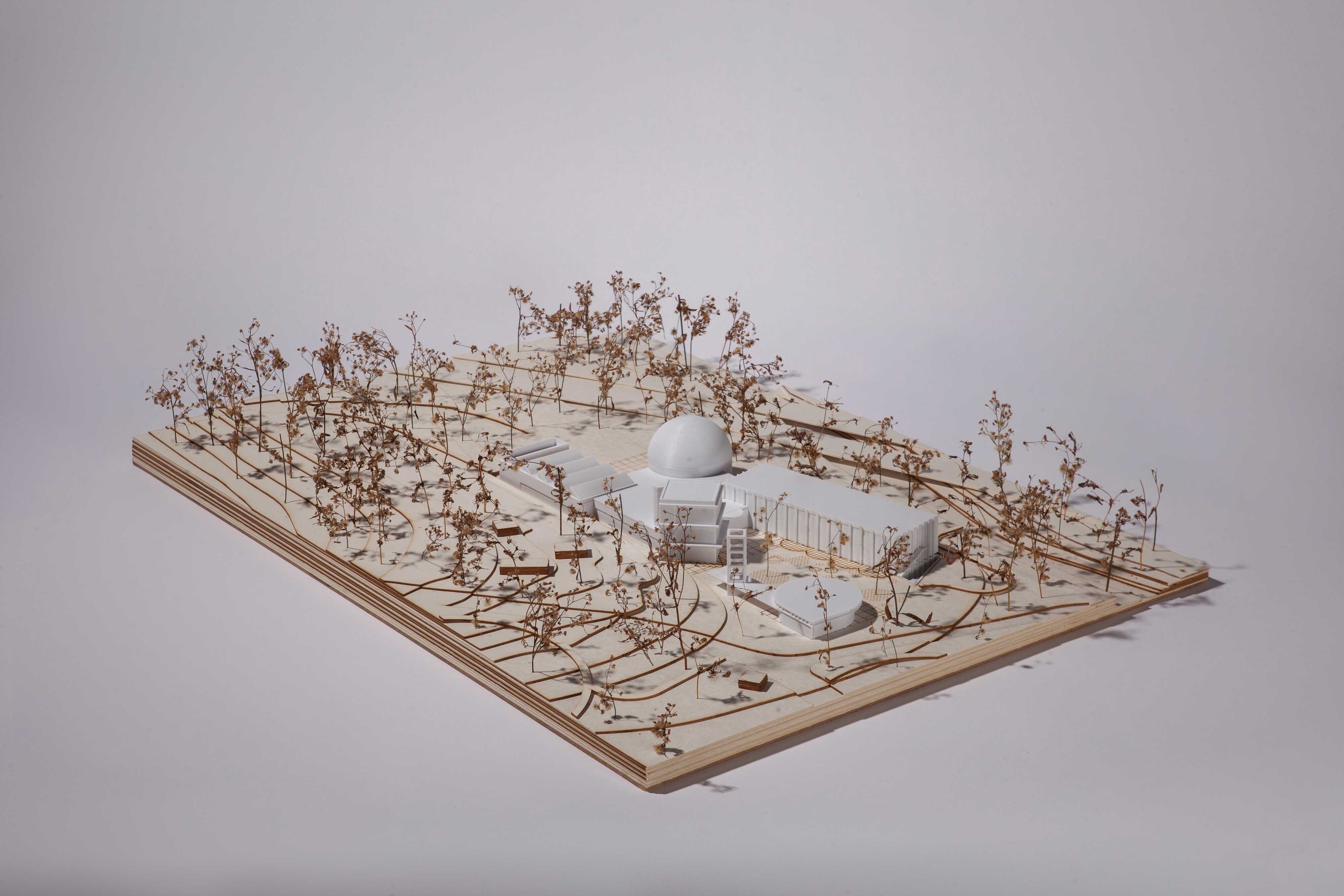Objekt planetária je hmotovo riešený ako samostatný objem nad terénom, pod ktorým je prevádzkovo spojený s hlavným objektom. Svojím miernym natočením sa stáva súčasťou rafinovanej hry autorov: priviera nástup do spodného patia, zútulňuje mierku vstupov a vytvára rôzne stupne intimity vo vzťahu medzi návštevníkom a budovou.