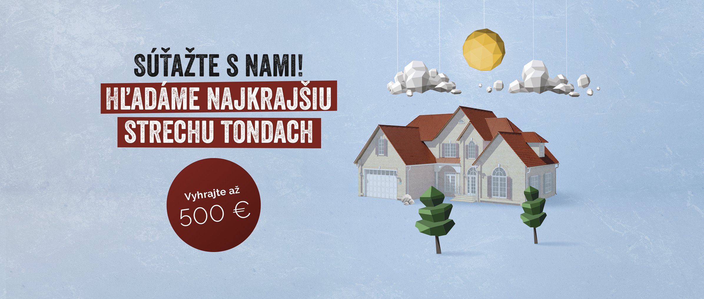 Moja strecha je krajšia ako tvoja - ponúka vlastníkom striech i pokrývačom šancu získať jednu z atraktívnych finančných cien. Stačí len prihlásiť svoju strechu na webovej stránke www.najkrajsiastrecha.sk. „Počet striech s pálenou krytinou Tondach každoročne rastie. Naším zámerom bolo uľahčiť stavebníkom rozhodovanie, aký model či povrchovú úpravu škridly zvoliť. Túto súťaž sme sa rozhodli vyhlásiť, aby sme podporili chuť Slovákov inšpirovať sa navzájom,“ hovorí Michal Dobrovodský, produktový manažér pre značku Tondach.