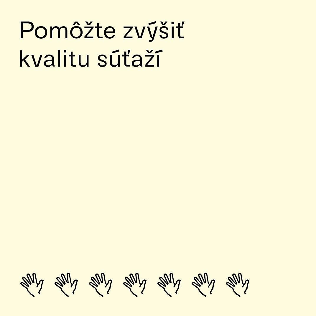 Jeho vyplnenie vám zaberie len pár minút. Výsledky z dotazníka nám pomôžu efektívne pristúpiť k analýze kvality architektonických súťaží, budeme sa o ne opierať pri tvorbe metodiky a pomôžu tak zvyšovať kvalitu budúcich súťaží.