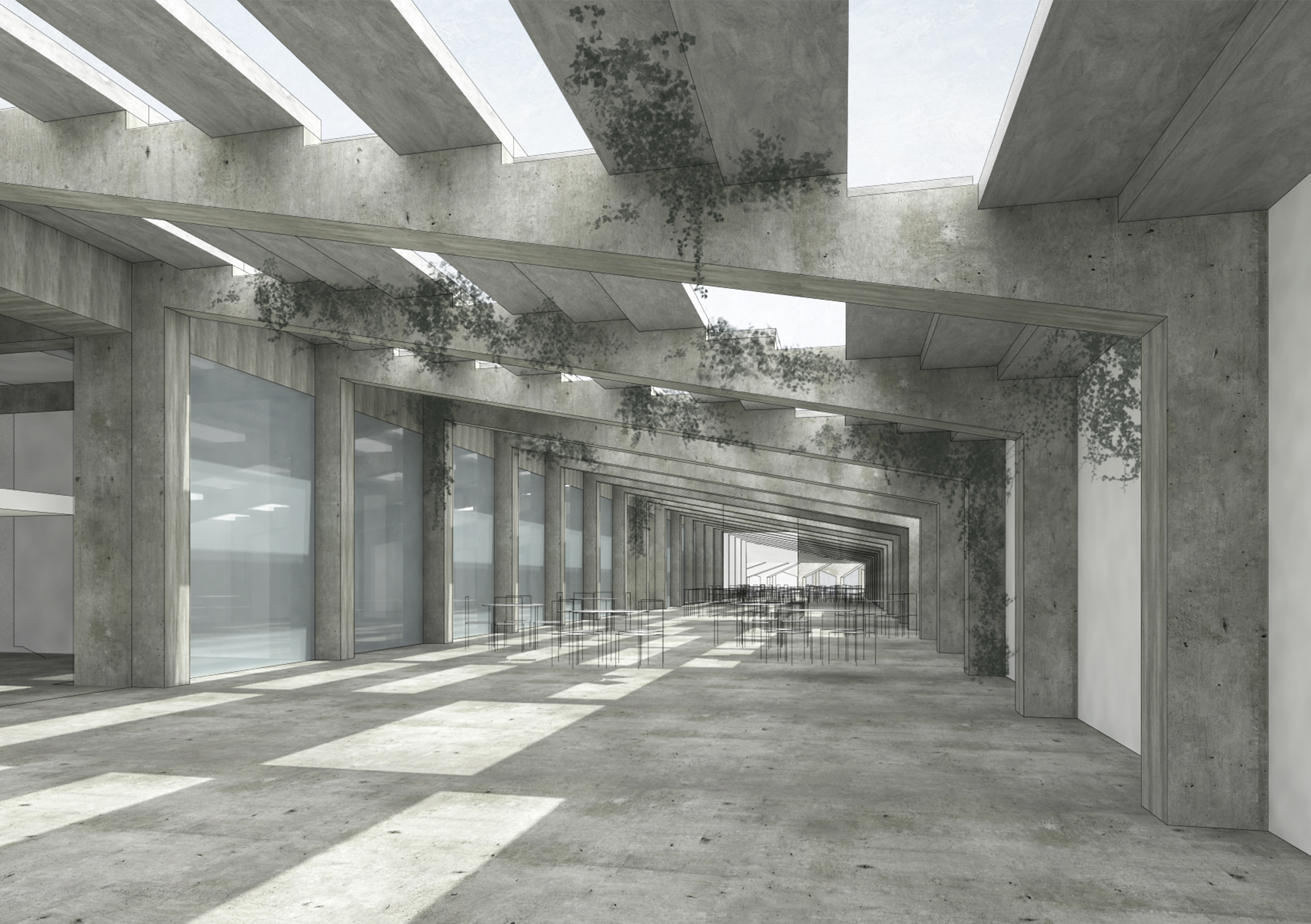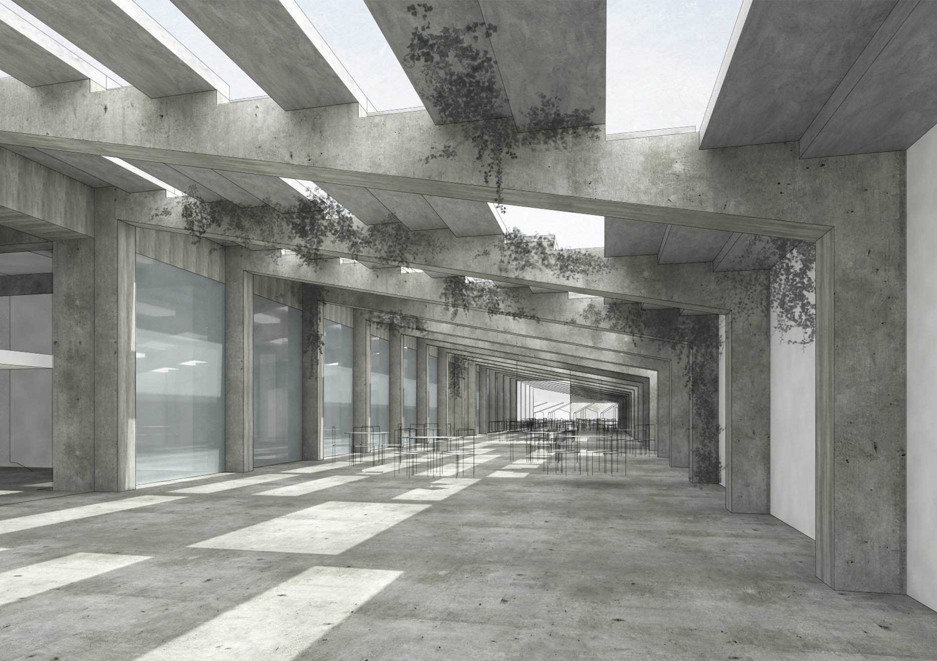 Jedná se o stavbu v neustálém procesu. Každá generace na ni zanechává vlastní stopu. Návrh rekonstrukce je další vrstvou. Konceptem je vytvořit z izolovaného městského domu, uzavřeného do sebe, dům městský. Návrh recykluje původní plášť jako hlavní charakteristický prvek stavby a zachovává ocelovou konstrukci Ferdinanda Lederera, která stojí nezávisle na zbytku stavby. Do pláště je po obvodu proříznut prstenec parteru, jako hlavní zásah do současné fasády. Tato „lehká“ ocelová část je vystavena na novém těžkém soklu. Sokl je těžiště návrhu.