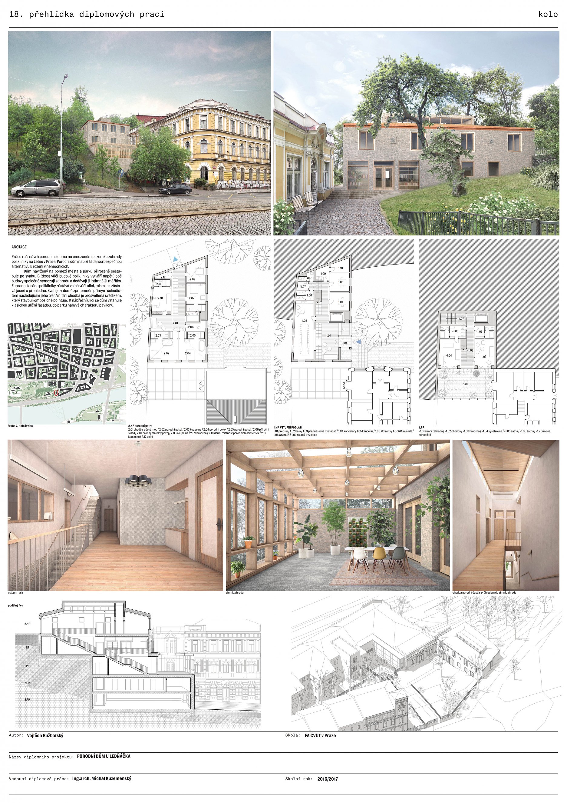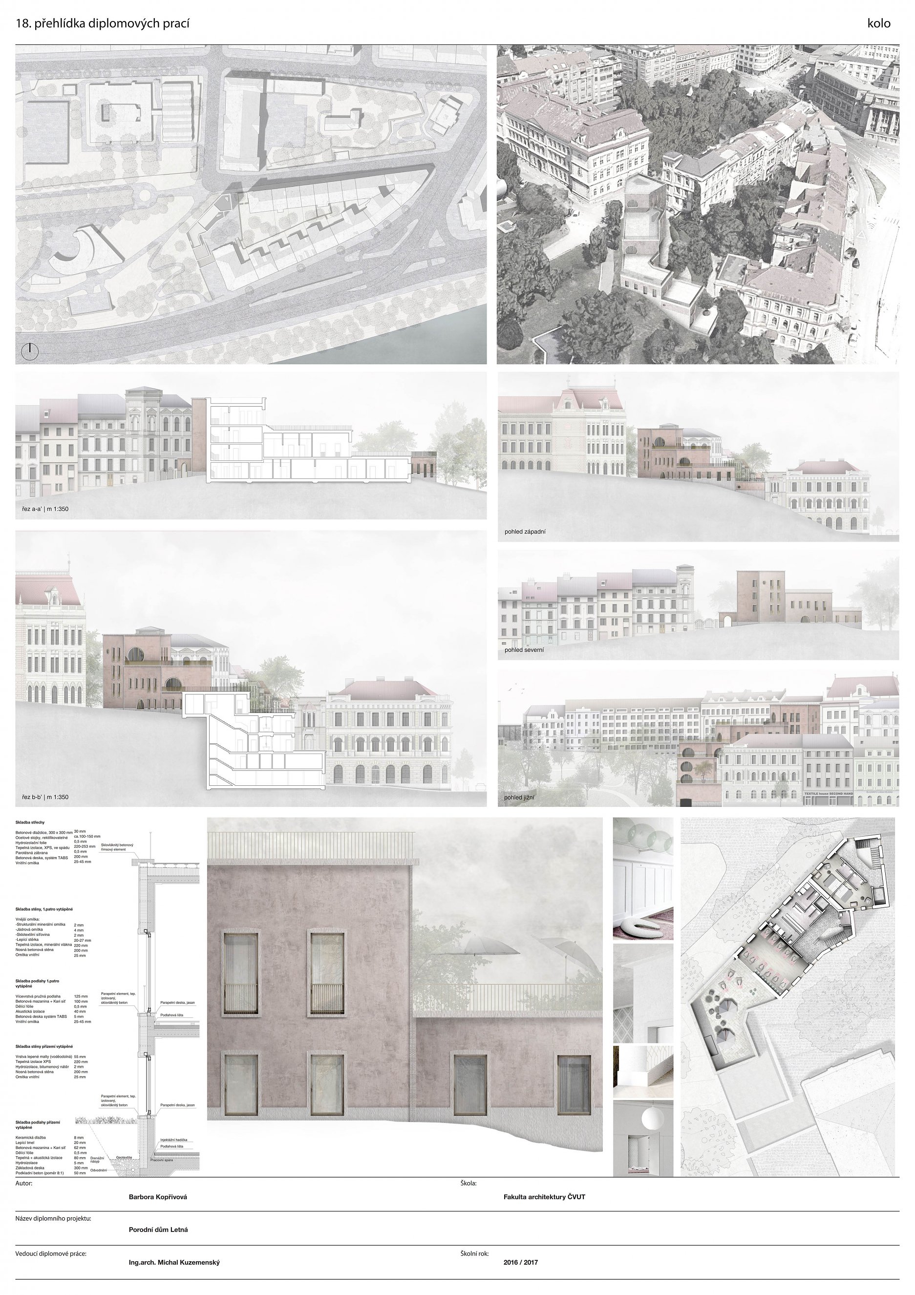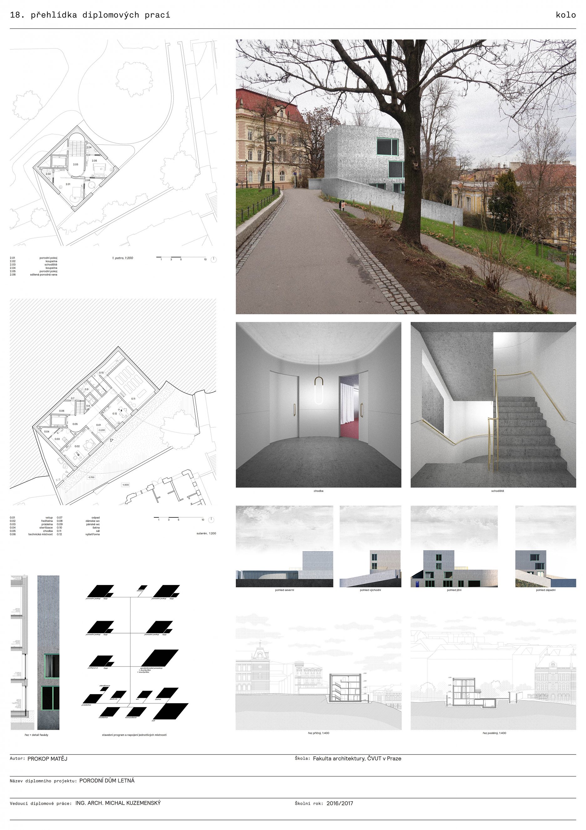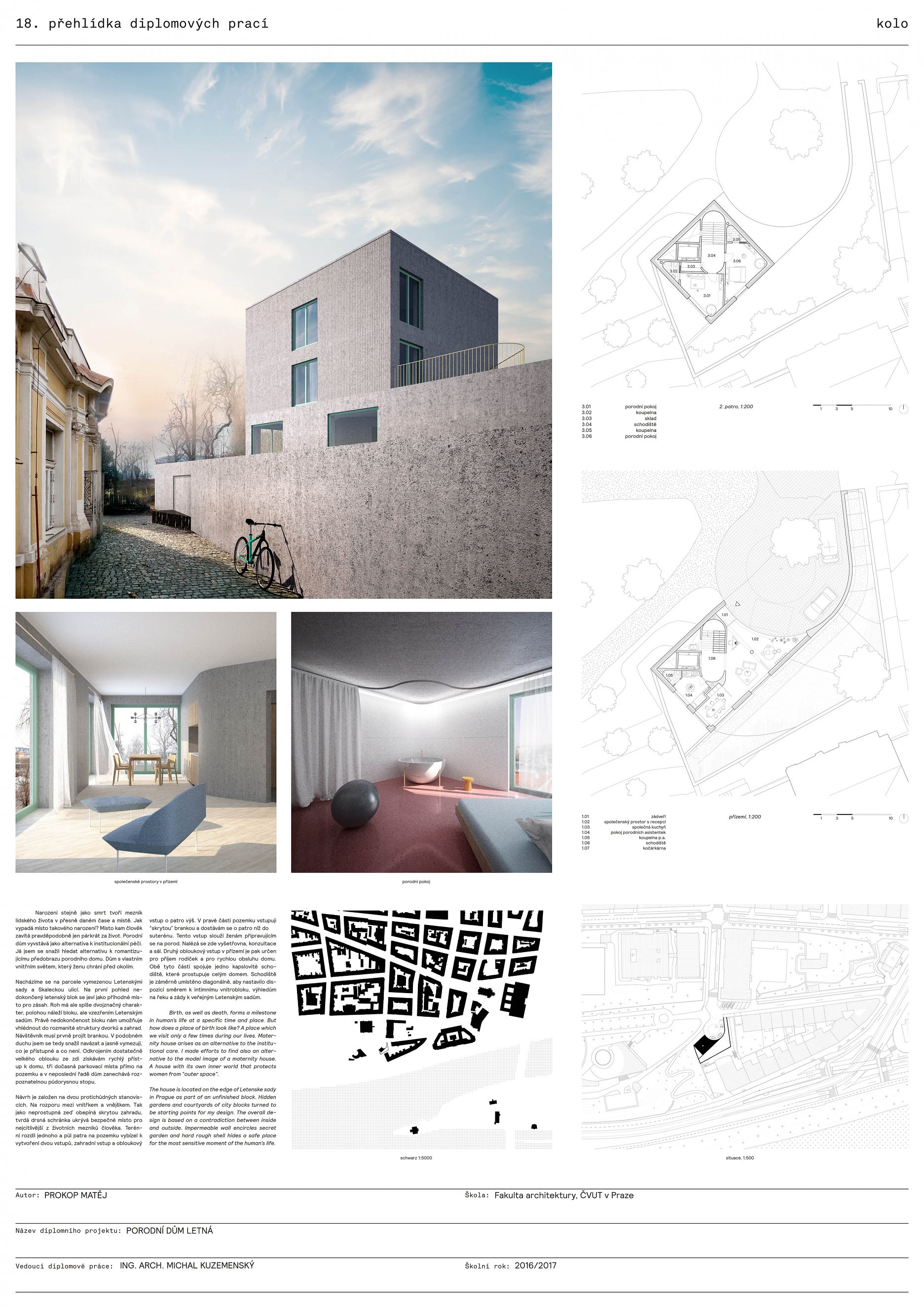 Porota se rozhodla udělit 2. sloučenou cenu třem diplomním projektům „Porodní dům Letná (resp. U Ledňáčka)“ z ateliéru FA ČVUT Michala Kuzemenského za mimořádně vysokou úroveň zpracování nového typologického tématu na složitou parcelu. Diplomní projekty důsledně pracují s mnohovrstevnatým kontextem svažité parcely na rozhraní blokové zástavby a letenských sadů a řeší komplexně otázky urbanismu, měřítka, architektonického výrazu, dispozice i interiéru. Výsledkem poctivé práce jsou tři originální a krásné domy, plné tajemství a překvapení.