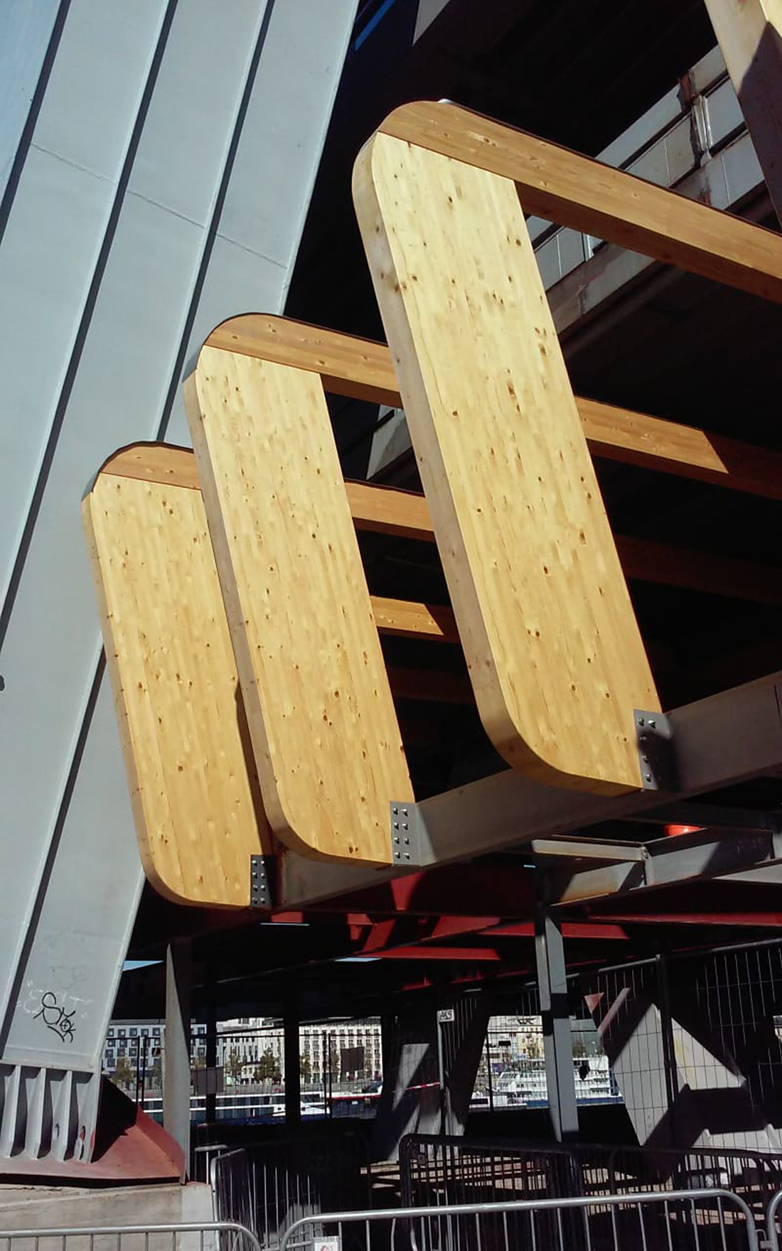 Neidentifikovateľný drevený objekt pod mostom SNP