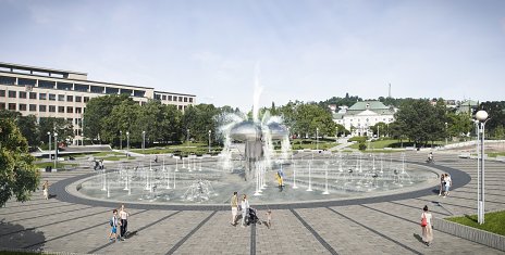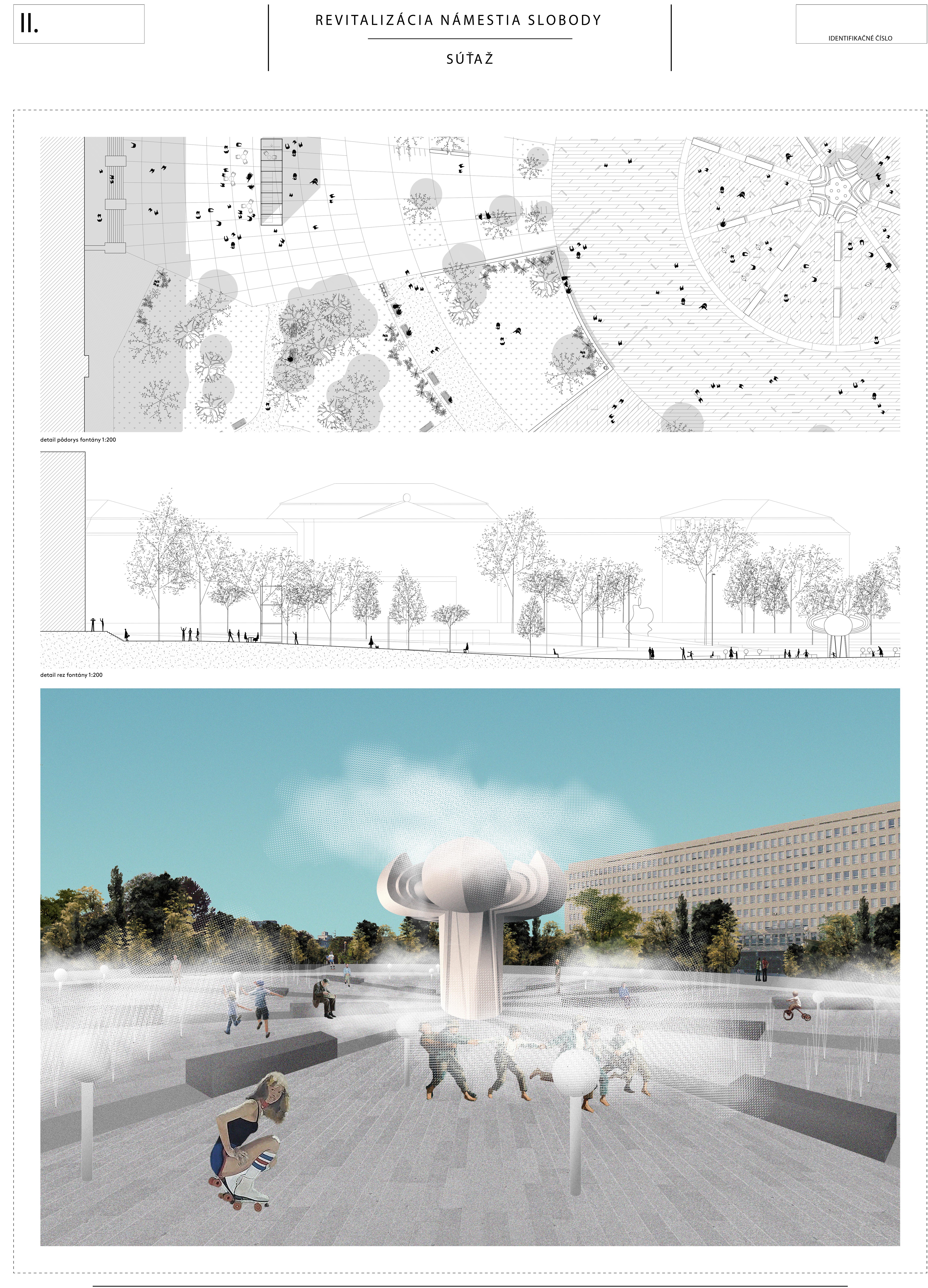 Návrh č.5 priniesol dôsledne rozpracovaný koncept, ktorý zmenil mierku námestia, kompozíciu fontány. Porota oceňuje širokú paletu riešení od adaptačných opatrení na zmenu klímy, detailu a tvorbu nového mobiliáru (variabilné prvky na sedenie...).
