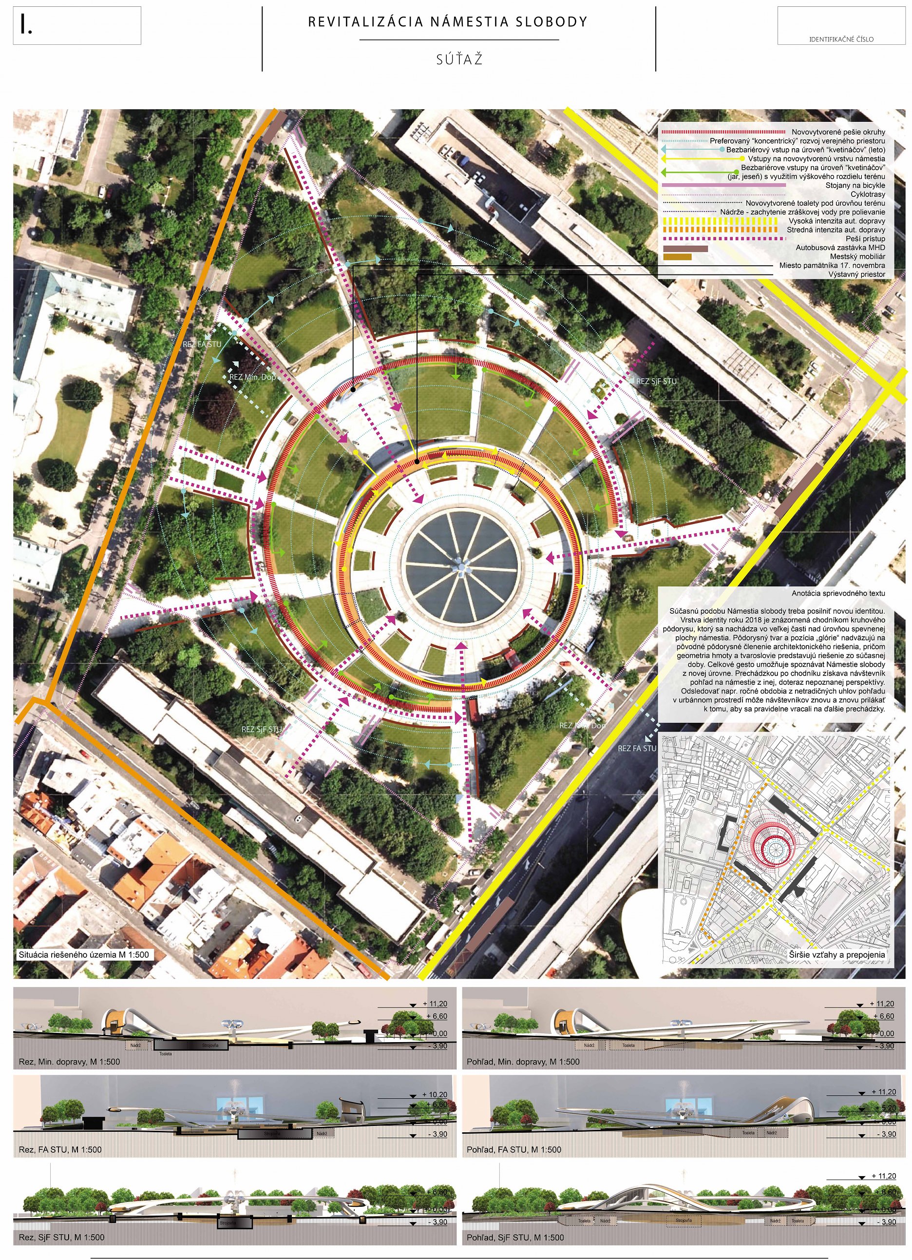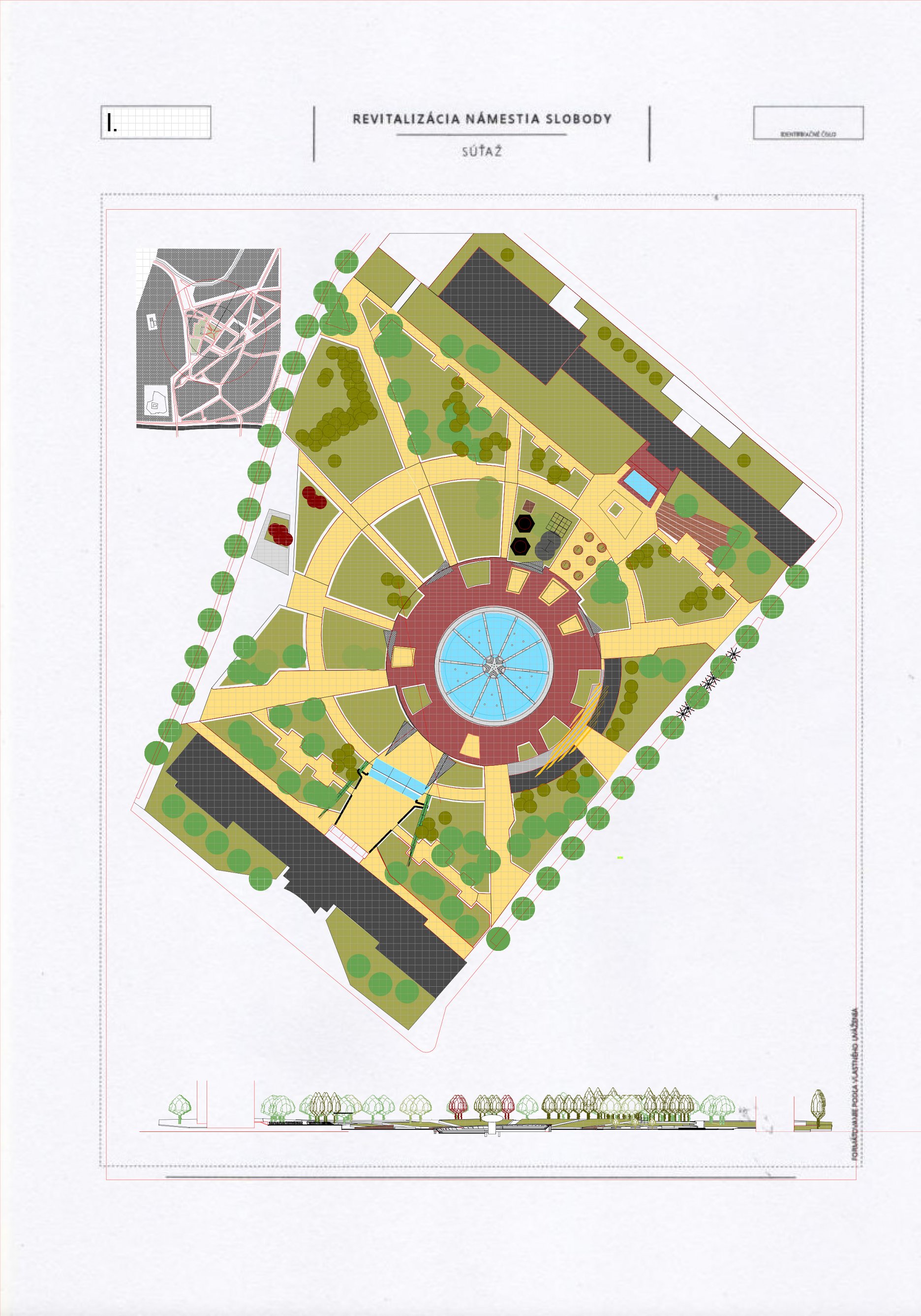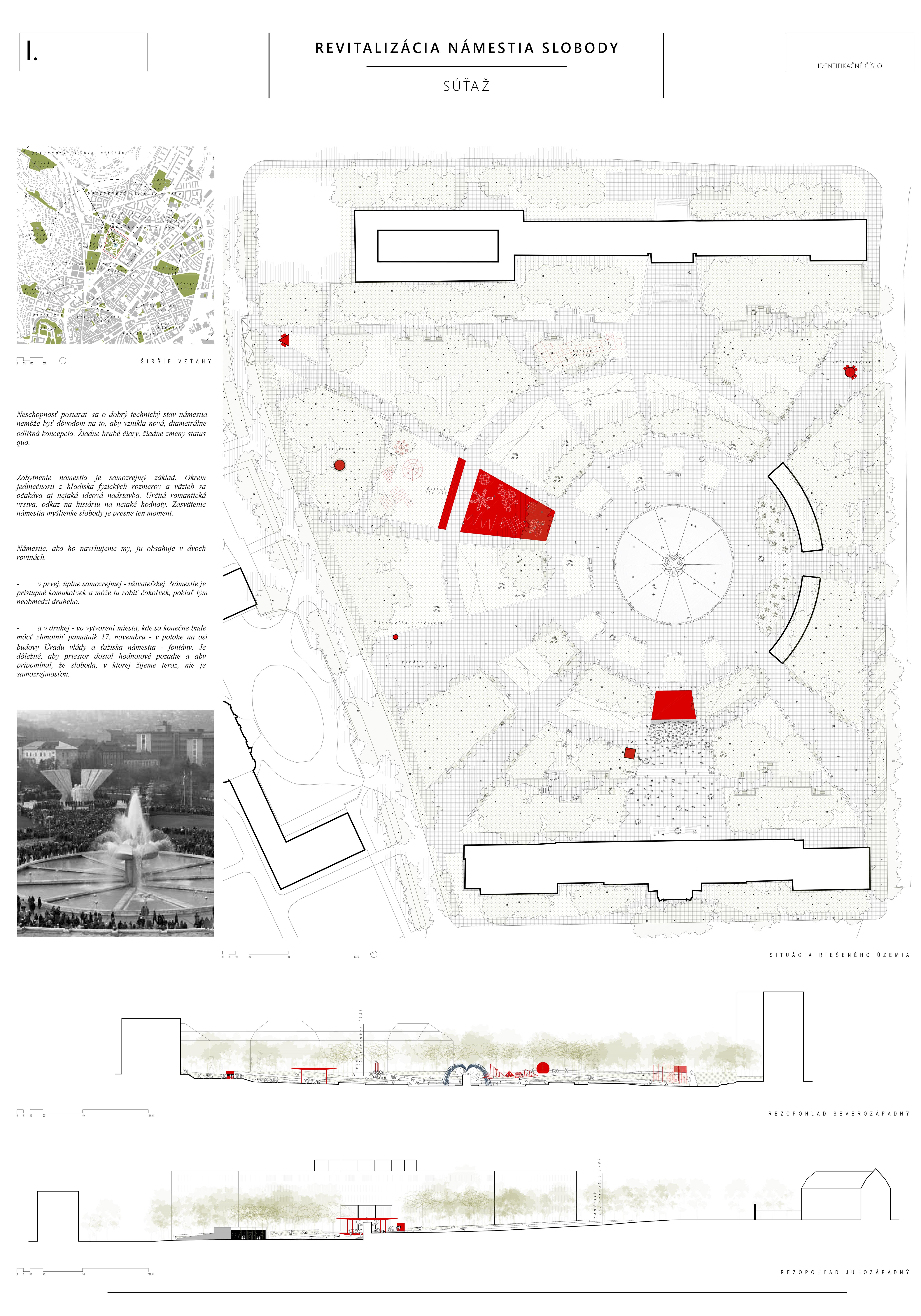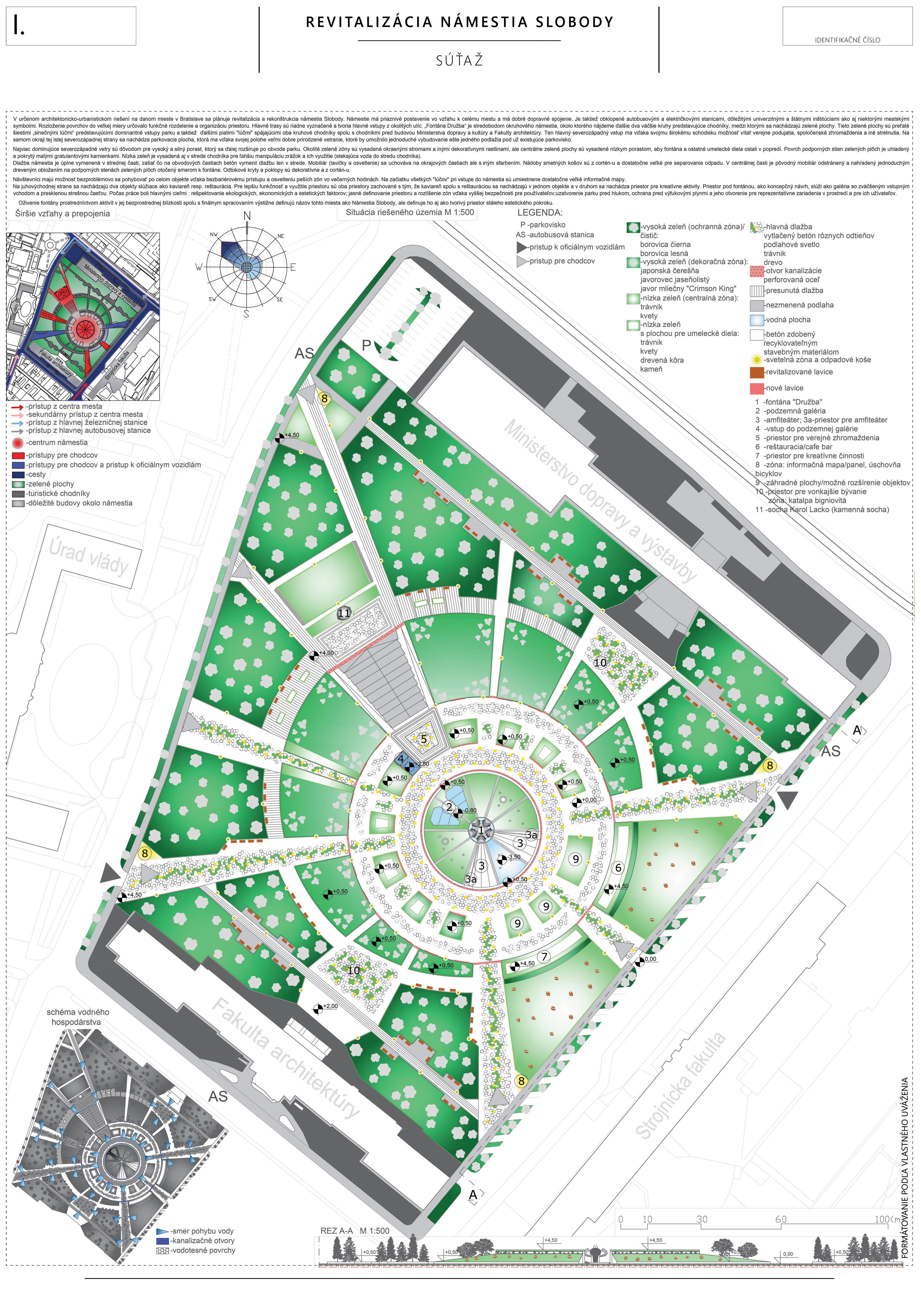 Návrh prináša minimálne, praktické a cielené zmeny, ktoré majú viesť k jeho celkovému sfunkčneniu, bezbariérovému sprístupneniu všetkých plôch a zelene. Riešenie v maximálnej miere rešpektuje existujúci charakter námestia a akceptuje súčasnú zdieľanú spoločenskú kvalitu miesta.