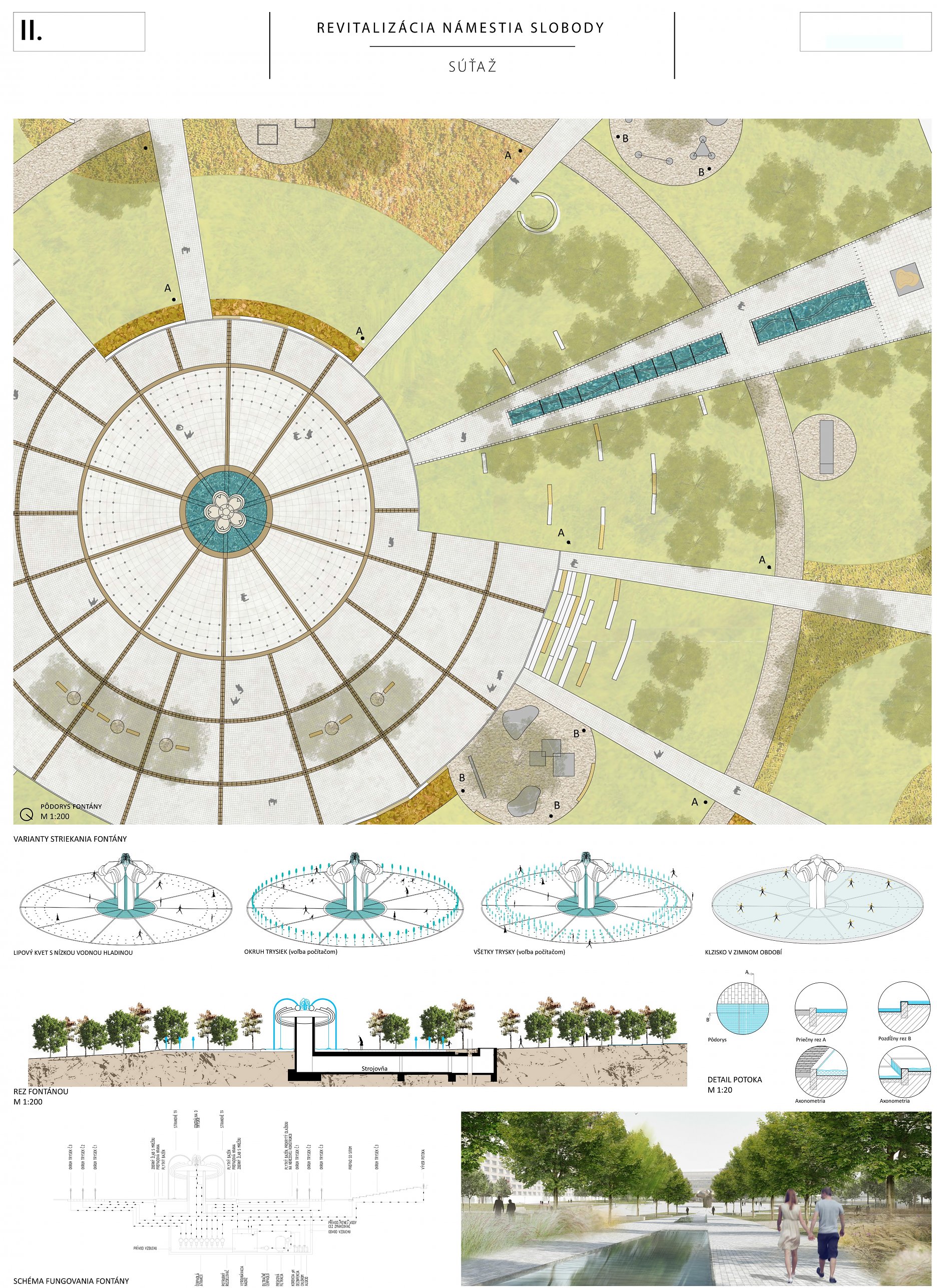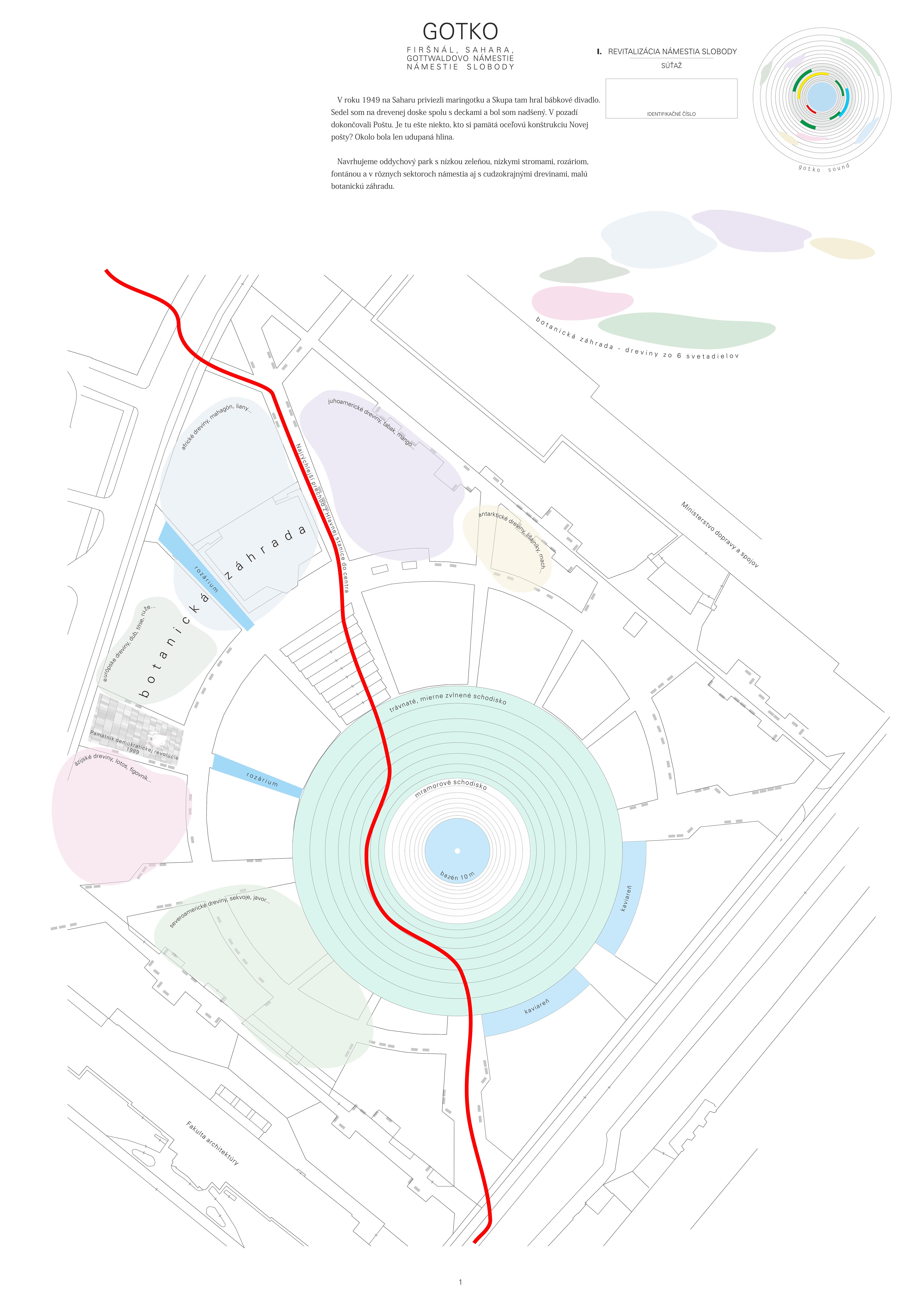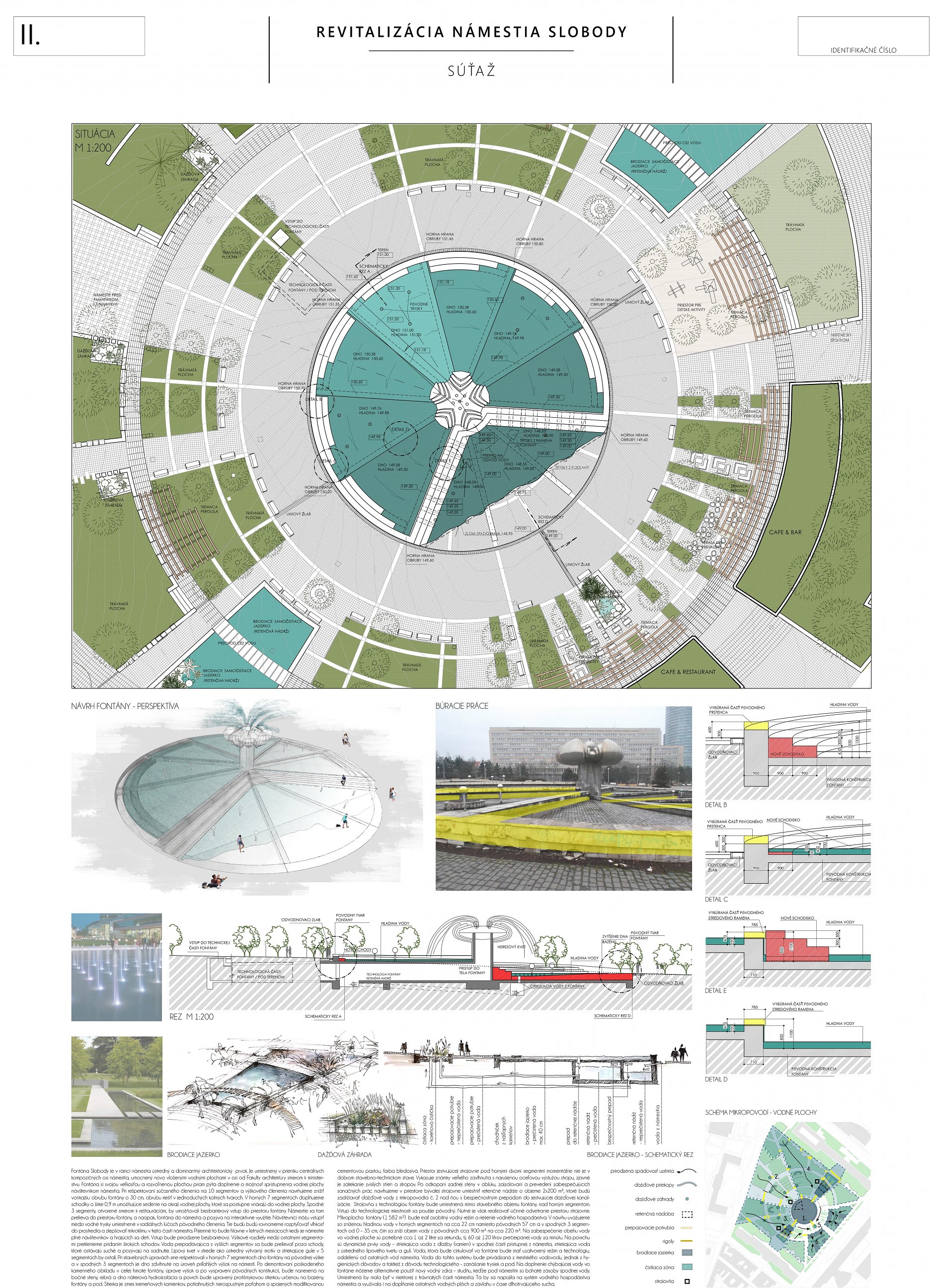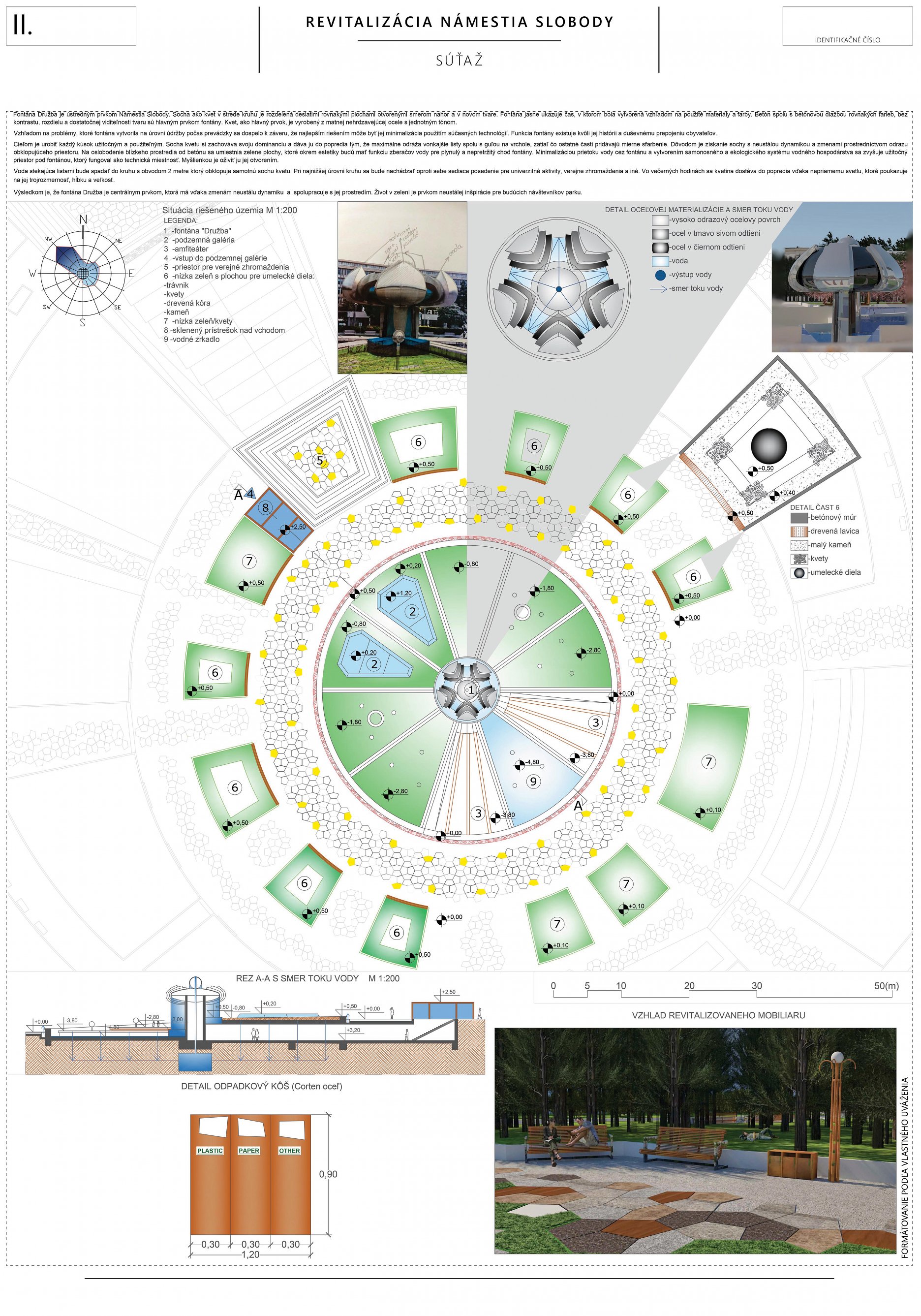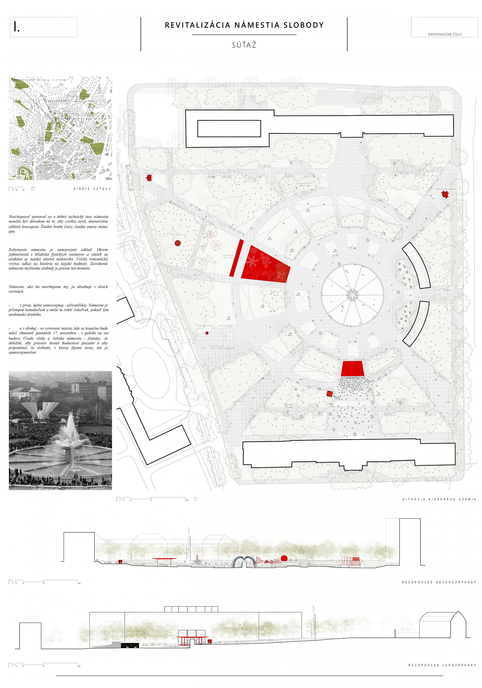 Návrh prináša minimálne, praktické a cielené zmeny, ktoré majú viesť k jeho celkovému sfunkčneniu, bezbariérovému sprístupneniu všetkých plôch a zelene. Riešenie v maximálnej miere rešpektuje existujúci charakter námestia a akceptuje súčasnú zdieľanú spoločenskú kvalitu miesta.