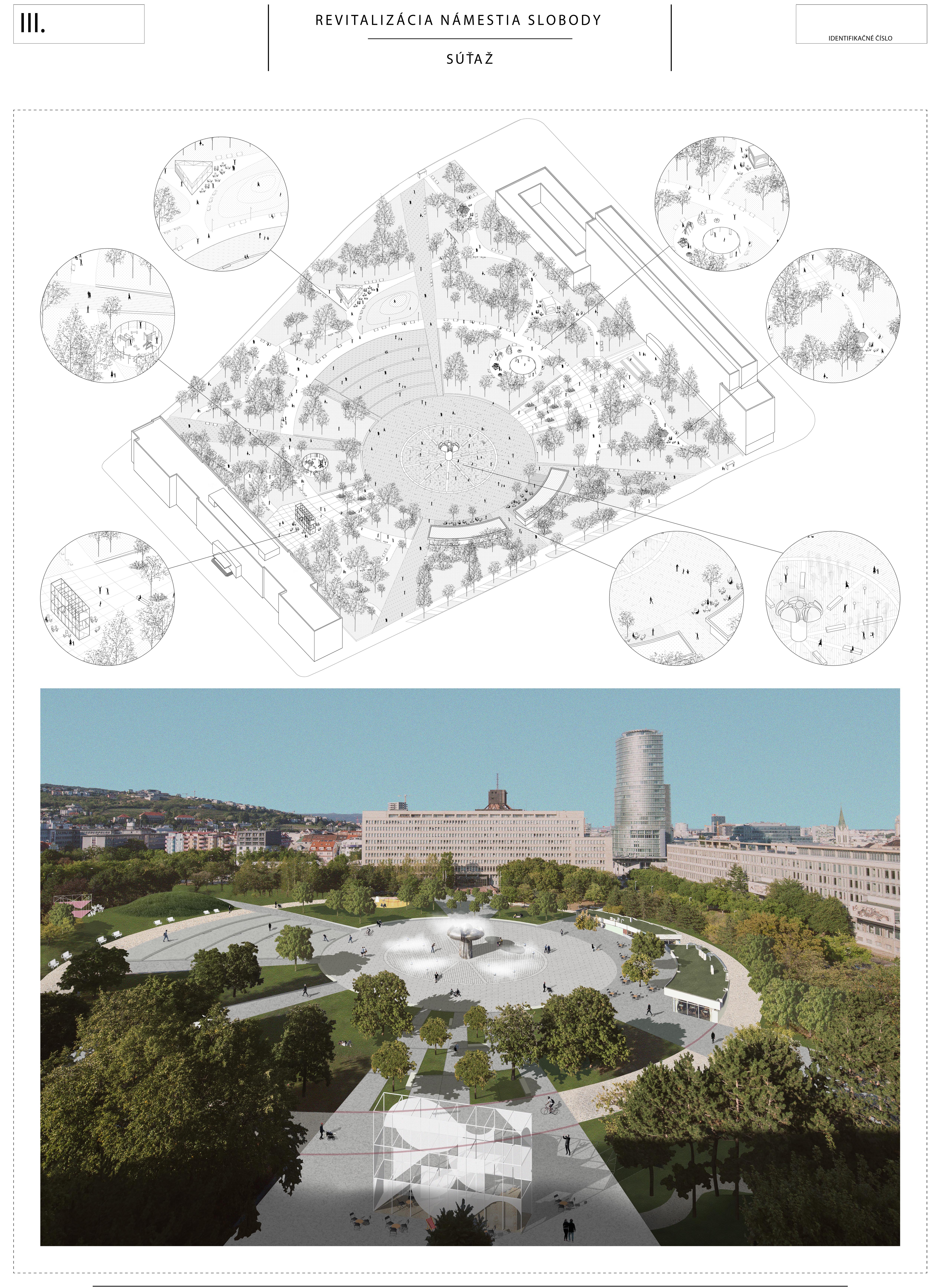 Udelením tretej ceny porota upozorňuje na potenciál návrhu a odporúča ho na dopracovanie do podoby záväznej štúdie budúcej podoby Námestia slobody v Bratislave. Porota oceňuje premyslený a uvážlivý prístup, ktorý otvoril dôležitú možnosť spoločenskej debaty o miere zásahu do pôvodného návrhu bez dramatickej zmeny. Menej je niekedy viac.