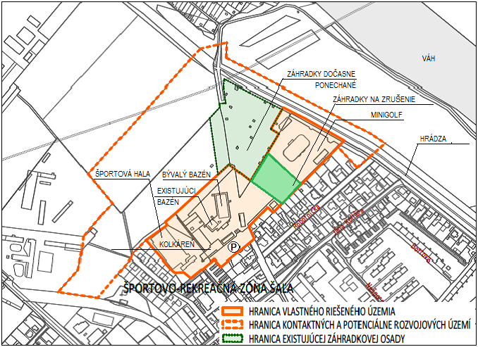 Zámerom vyhlasovateľa – Mesta Šaľa je výstavba a prestavba dnes už len čiastočne využívaného športového areálu s viacerými športovými zariadeniami a bývalým letným kúpaliskom na celoročný mestský športovo-rekreačný areál. Športový areál určený na riešenie prestavby a vymedzený územným plánom je v súčasnosti rozdelený na dve samostatné časti oddelené areálom záhradiek, ktoré sú určené na likvidáciu. Dôjde tak k spojeniu dnešných dvoch samostatných areálov, bývalého letného kúpaliska a areálu hokejového ihriska – otvorenej ľadovej plochy a minigolfu.