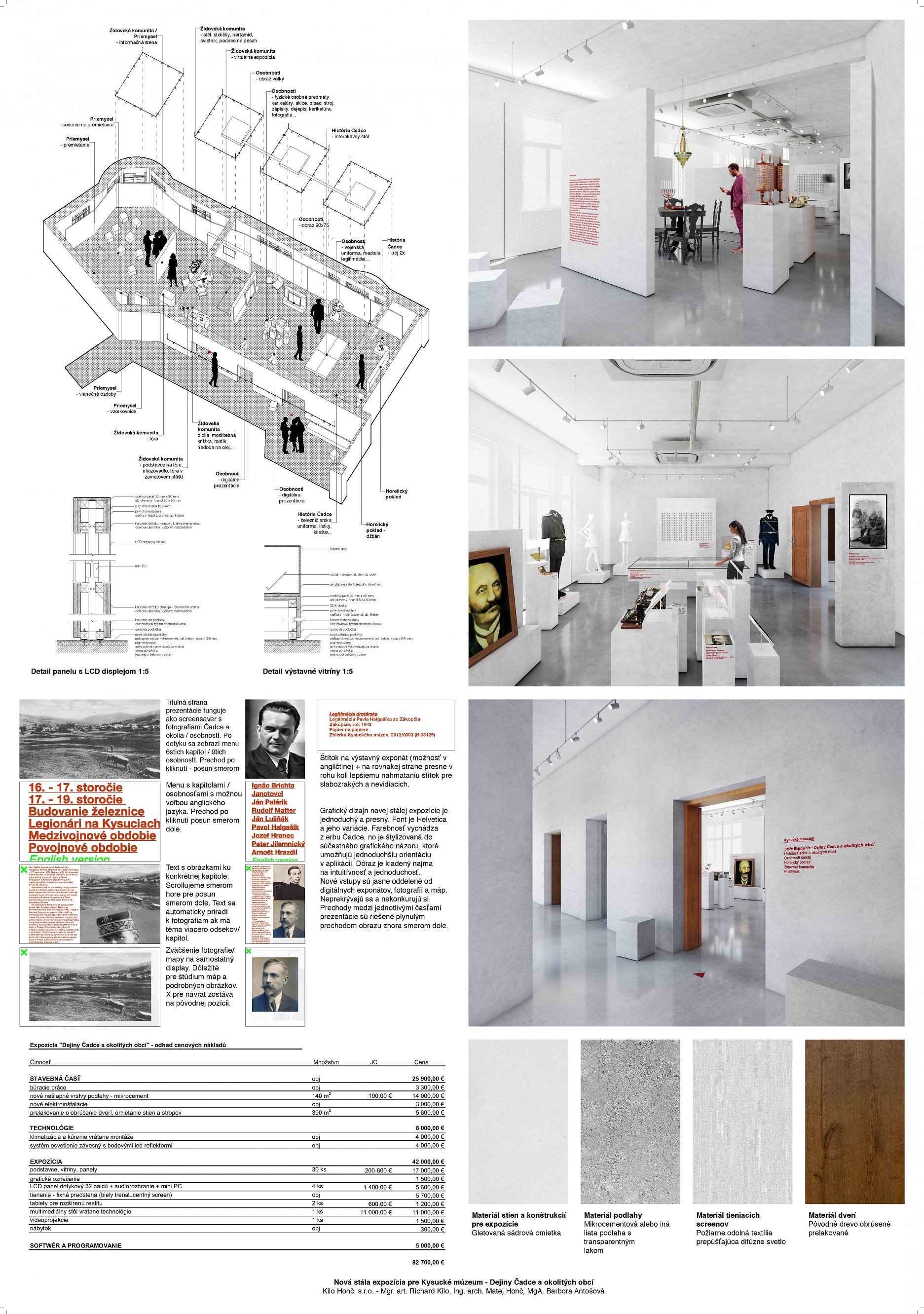 V predstavenom súťažnom návrhu dominuje silné architektonické poňatie expozície, do ktorej autori vniesli priestorový prvok intimity vďaka optimálnemu vymedzeniu prezentovaných tematických okruhov definovaných libretom. Autorský kolektív v zložení Matej Honč a Richard Kilo predstavil vizuálne najprívetivejší a najprepracovanejší návrh, ktorý je aj pomerne finančne dobre realizovateľný. Výnimočnosť návrhu spočíva aj v efektívnom využívaní denného svetla, čo umocňuje návštevnícky pocit z dobre presvetlenej miestnosti. Jemné farby dávajú vyniknúť vystaveným exponátom. Porota oceňuje aj riešenie predpolia samotnej expozície, čím dôjde k architektonickému zladeniu predmetného podlažia múzea. Navzdory pôsobivému architektonickému stvárneniu je v návrhu badateľný slabší dôraz na výstavnícku časť, s ktorou autori návrhu nemajú dostatočné skúsenosti. Porota odporúča v ďalšej fáze rozpracovať zrozumiteľnejším a extraktovanejším spôsobom uchopenie objektov a vitrín, a to s dôrazom na priestorovú orientáciu pri zohľadnení väčšieho toku návštevníkov. Menej prepracovaná je aj multimediálna časť expozície a otázne je aj použitie zvoleného jednoduchého fontu pri nápisoch k zbierkovým predmetom. Porota odporúča, keby sa autori zamerali viac na akcent grafickej stránky expozície. Predstavený návrh a layout je však po zohľadnení všetkých stránok kultivovaný, jemný a najprepracovanejší. Súťažný návrh sa najviac približuje k predstavám verejného obstarávateľa. Vytknuté nedostatky je možné doriešiť pri vypracovaní komplexnej architektonickej štúdie.