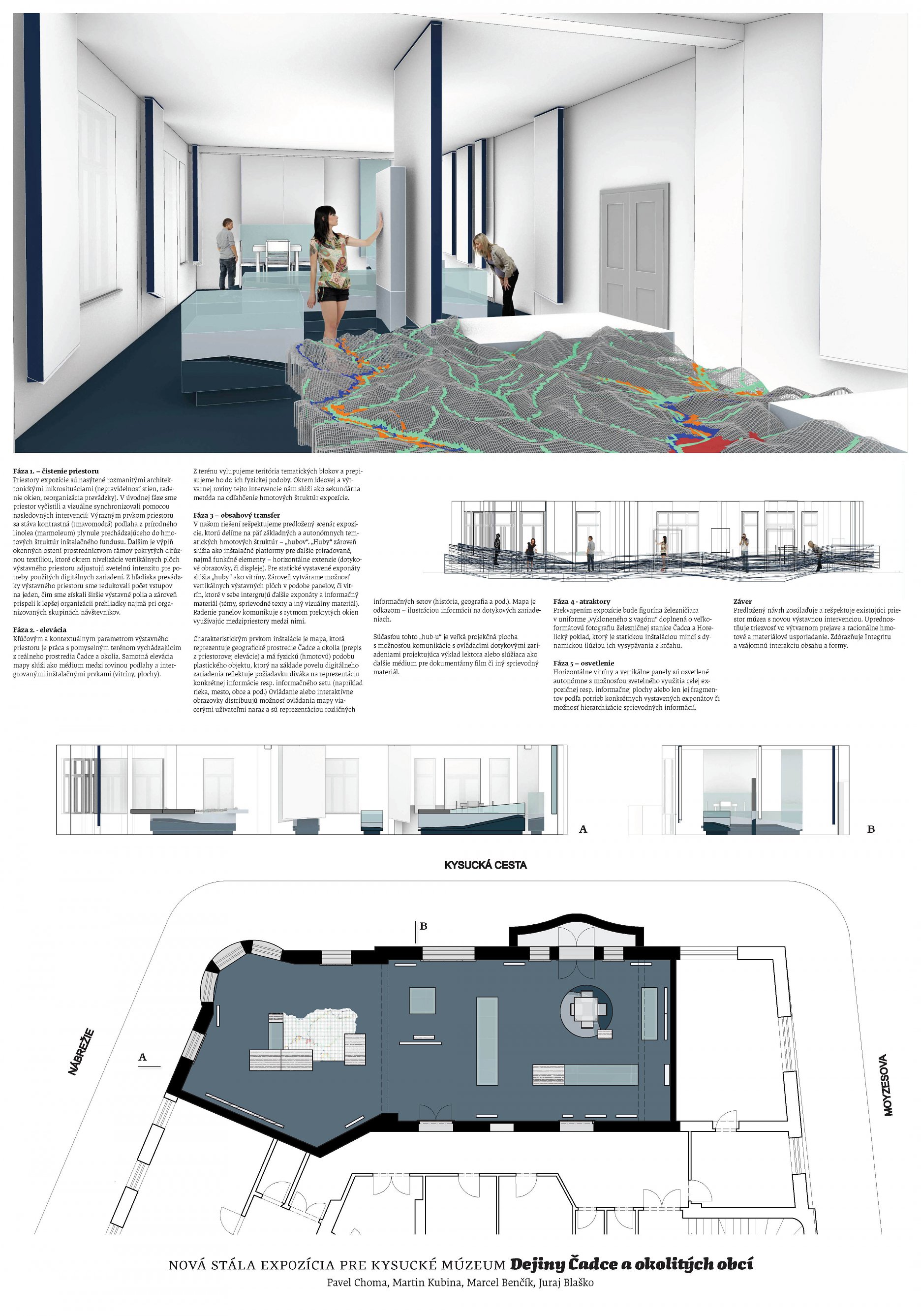 Vizuálne pomerne abstraktný, no výstavnícky veľmi dobre zvládnutý súťažný návrh kolektívu autorov z tvorivej dielne ateliéru Choma vsadil na inovatívnu reliéfnu geografickú mapu regiónu Kysúc kombinovanú s modernými vizuálnymi prostriedkami, čo je nepochybne zaujímavým prvkom celej koncepcie expozície. Porota oceňuje kreatívny prístup pri riešení požadovaných interaktívnych prvkov aj pri dynamickej inštalácii horelického pokladu. Prívetivo pôsobiacim prvkom je aj kreatívne a s humorom stvárnené postavy čadčianskeho železničiarskeho priemyslu, čo predstavuje povšimnutiahodný atraktor expozície. Za problematické porota považuje diskutabilnú zdvojenú eleváciu vitrín a výrazný kontrast zvolenej tmavomodrej podlahy a svetelnosti prezentovaných vystavených objektov. Otáznym ostáva aj redukcia počtu vstupov/výstupov z expozície do predpolia z hľadiska návštevníckej prevádzky. Spomínaná najsilnejšia stránka súťažného návrhu v podobe interaktívnej mapy však svojou komplikovanosťou a ťažkou predstaviteľnosťou fungovania jej jednotlivých častí môže na druhú stranu predstavovať obťažne uchopiteľný a realizovateľný koncept. Napriek uvedeným výhradám sa jedná o kvalitne prepracovaný a premyslený návrh s jasnými a zapamätateľnými atribútmi.