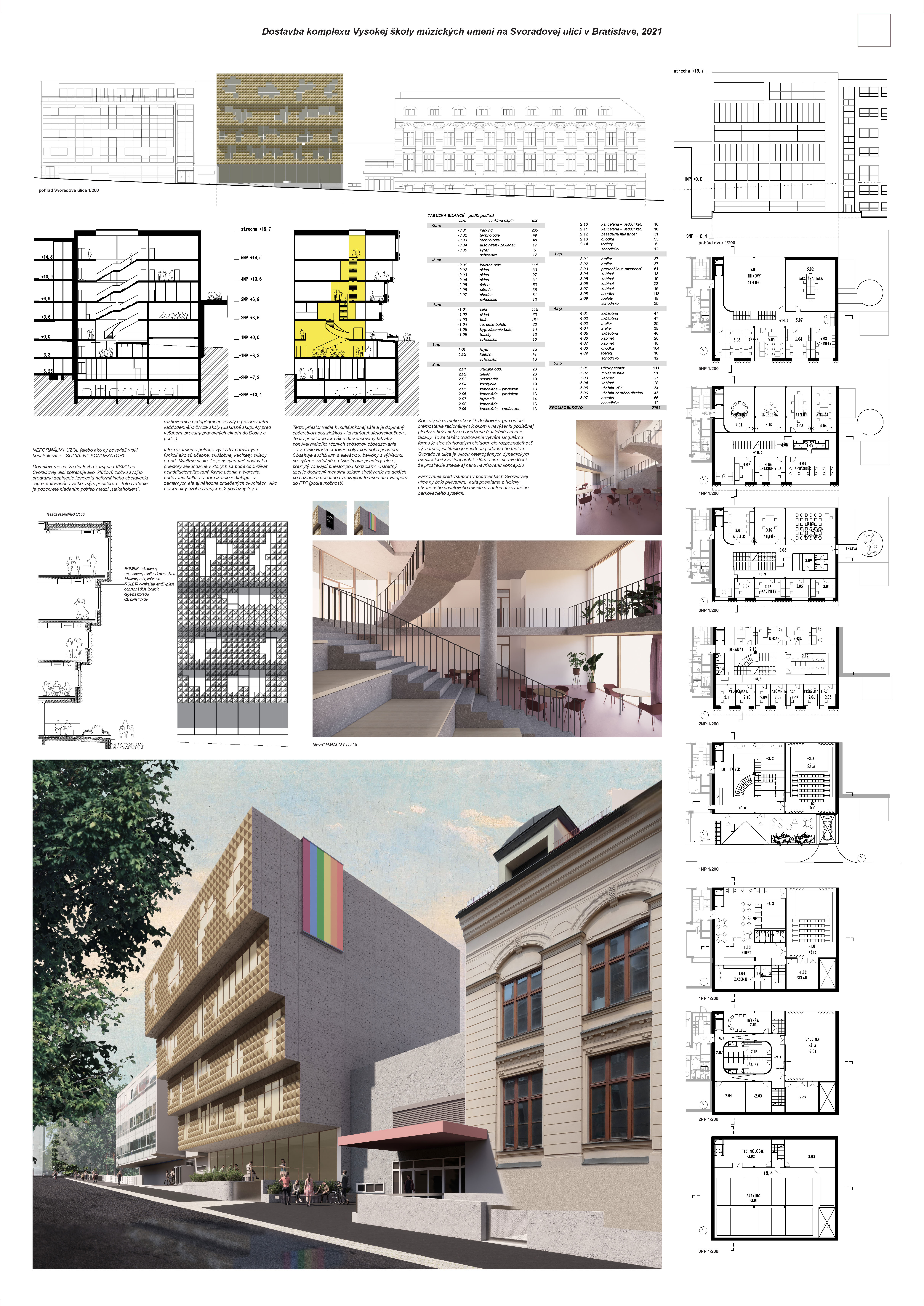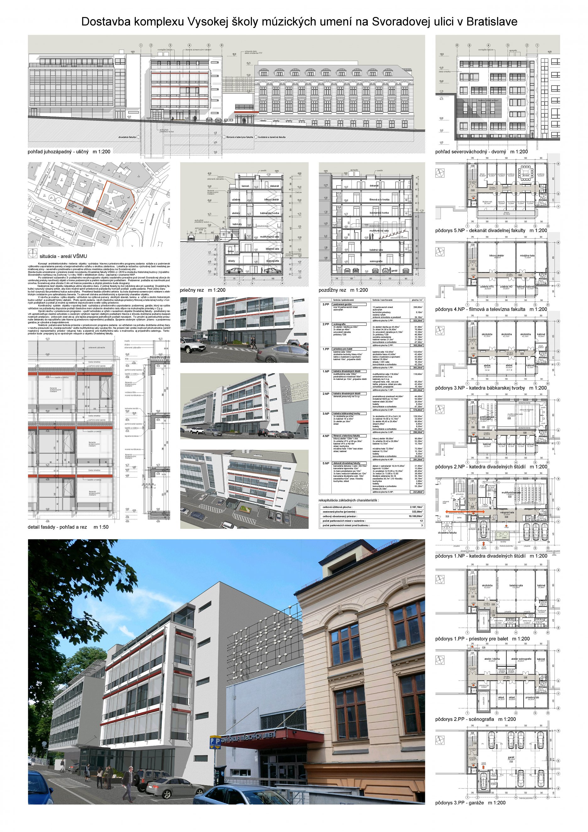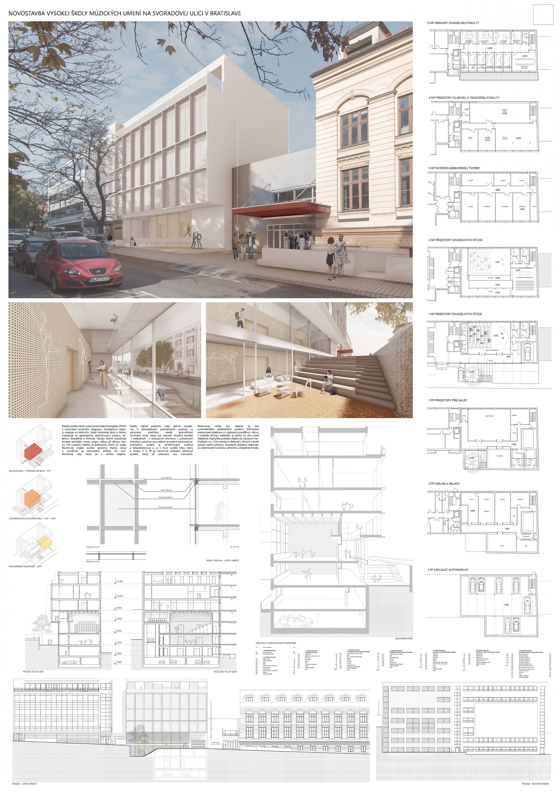 Cieľom architektonickej súťaže návrhov bolo nájsť návrh, ktorý spomedzi predložených návrhov najlepšie rieši požiadavky zadania na vytvorenie nových priestorov pre potreby Vysokej školy múzických umení v rámci prieluky na Svoradovej ulici v Bratislave.