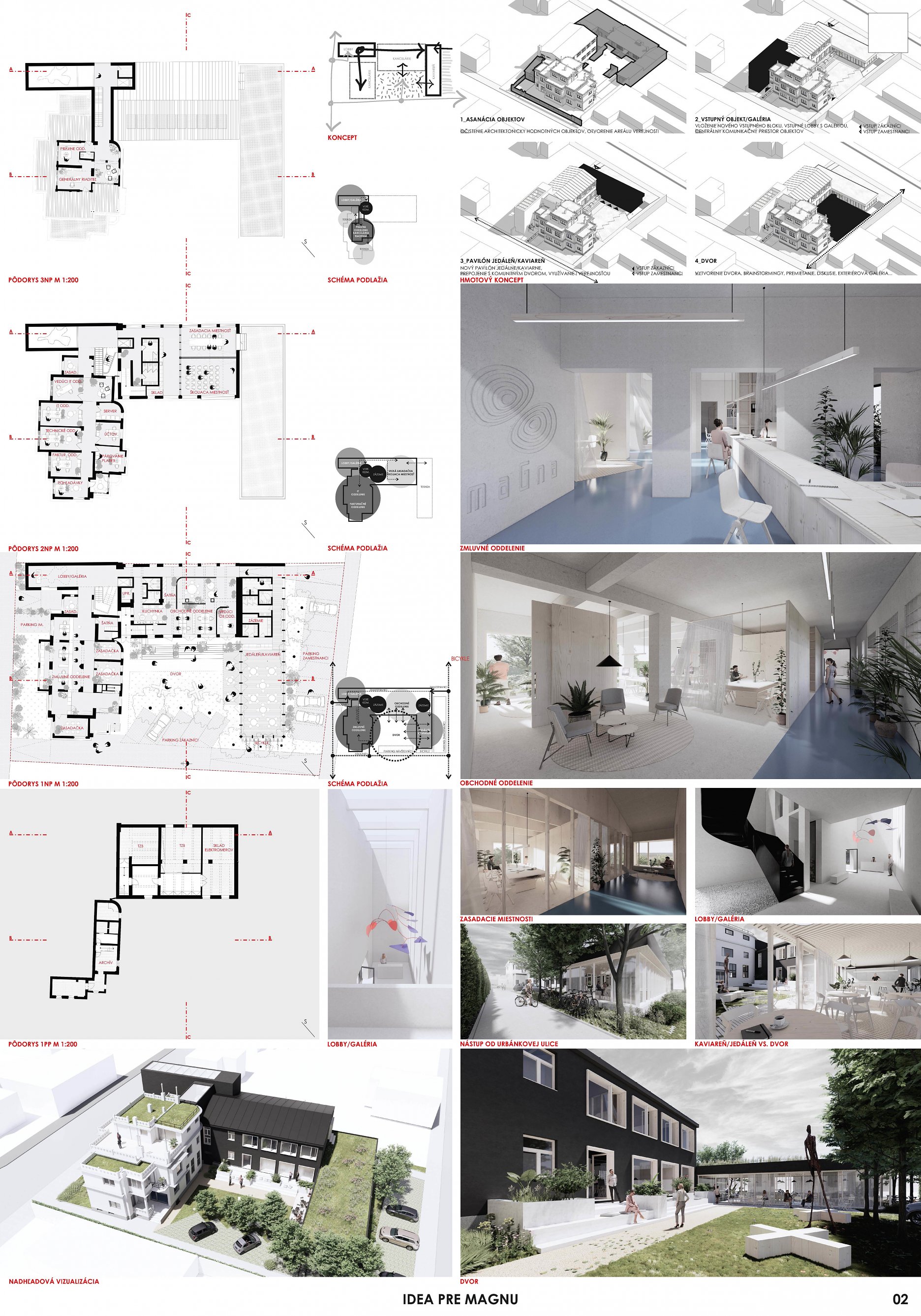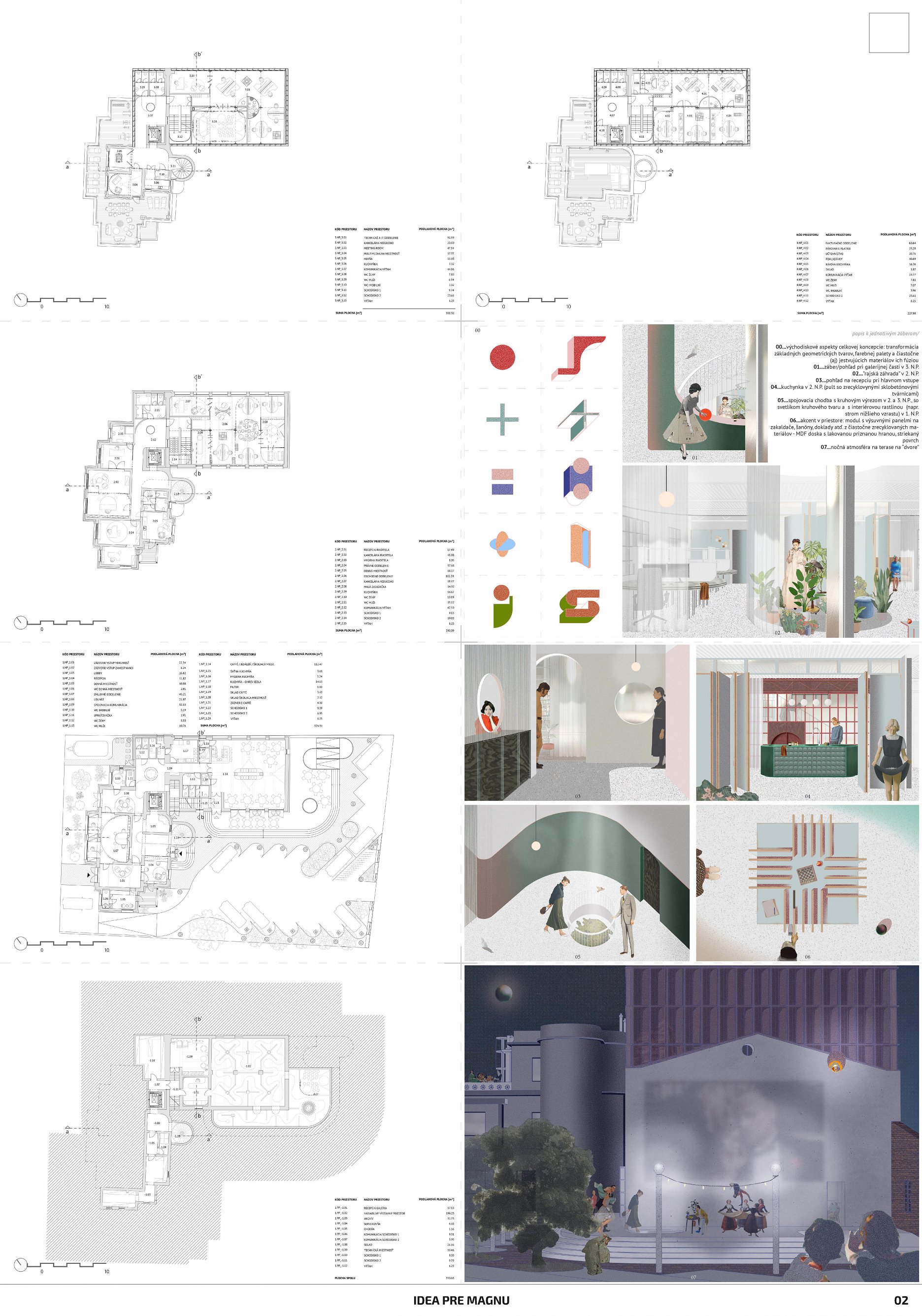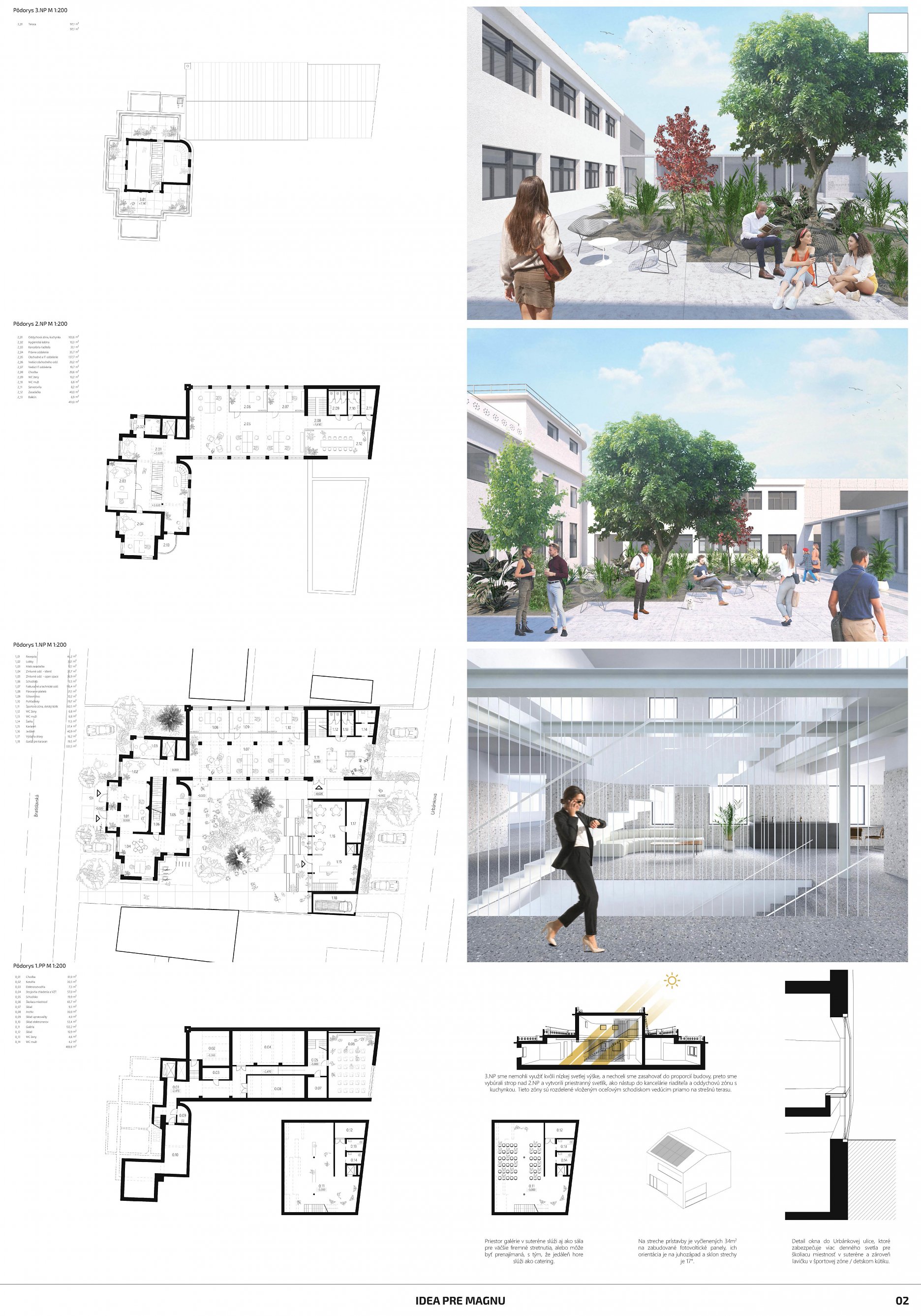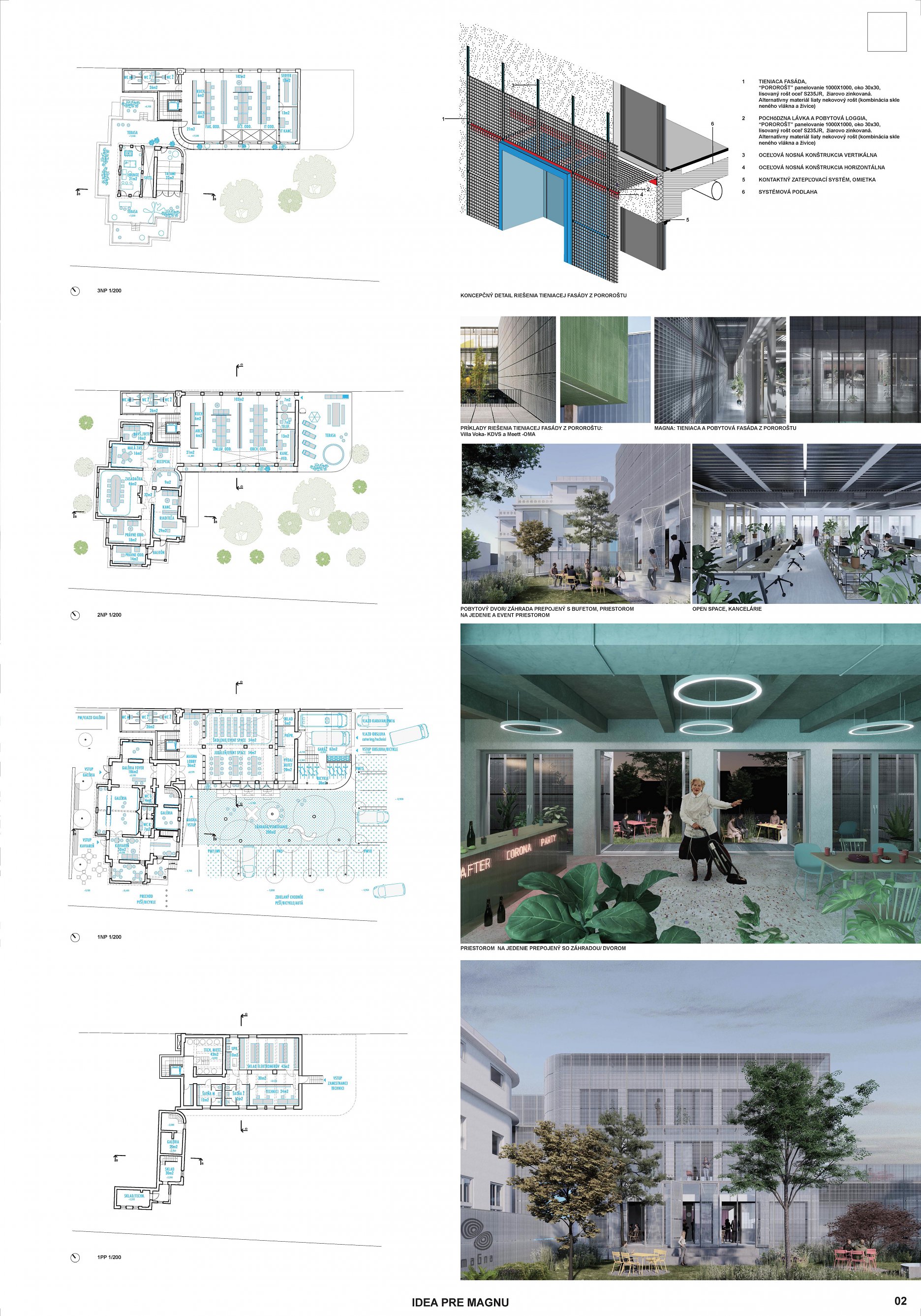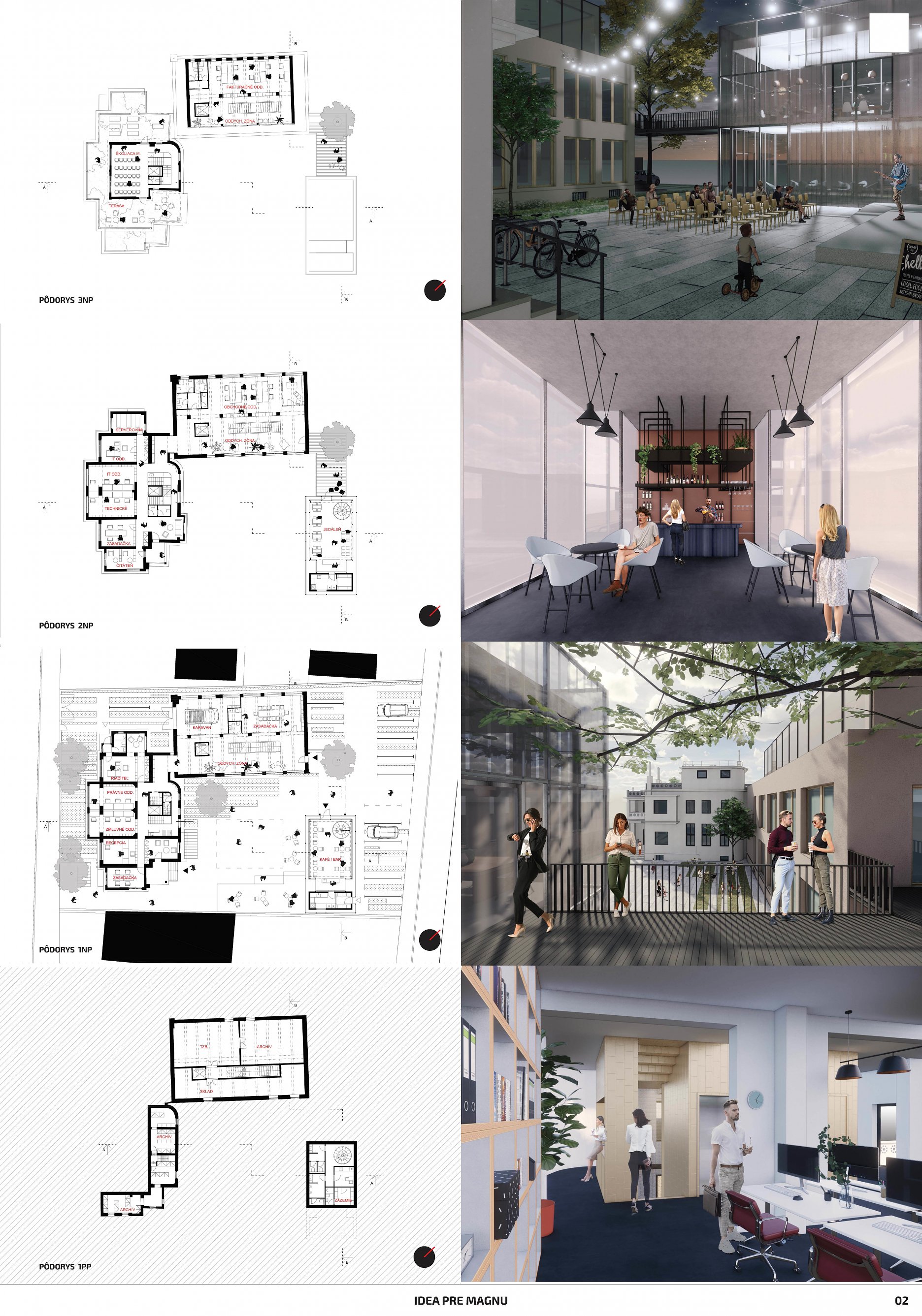 Porota v návrhu ocenila minimalizovanie búracích prác, a tým aj celkového ekologického dopadu výstavby, kedy autor počíta s usporiadaním celej dispozície do existujúcich objektov. Návrhu však chýba zaujímavý detail a prehĺbenie nastaveného konceptu. Tehlová fasády nie je pôvodná a vytvára zbytočne historizujúci dojem.