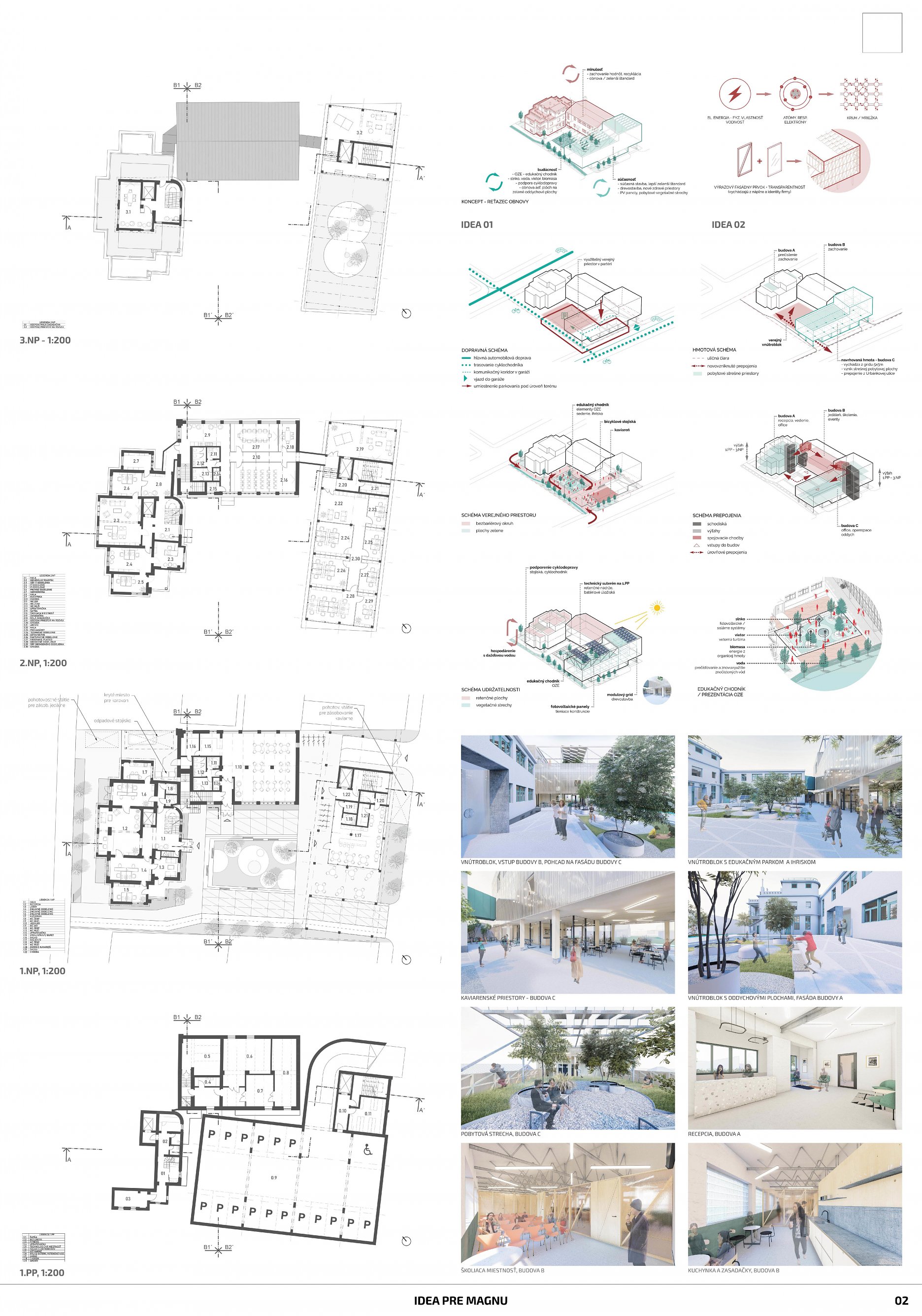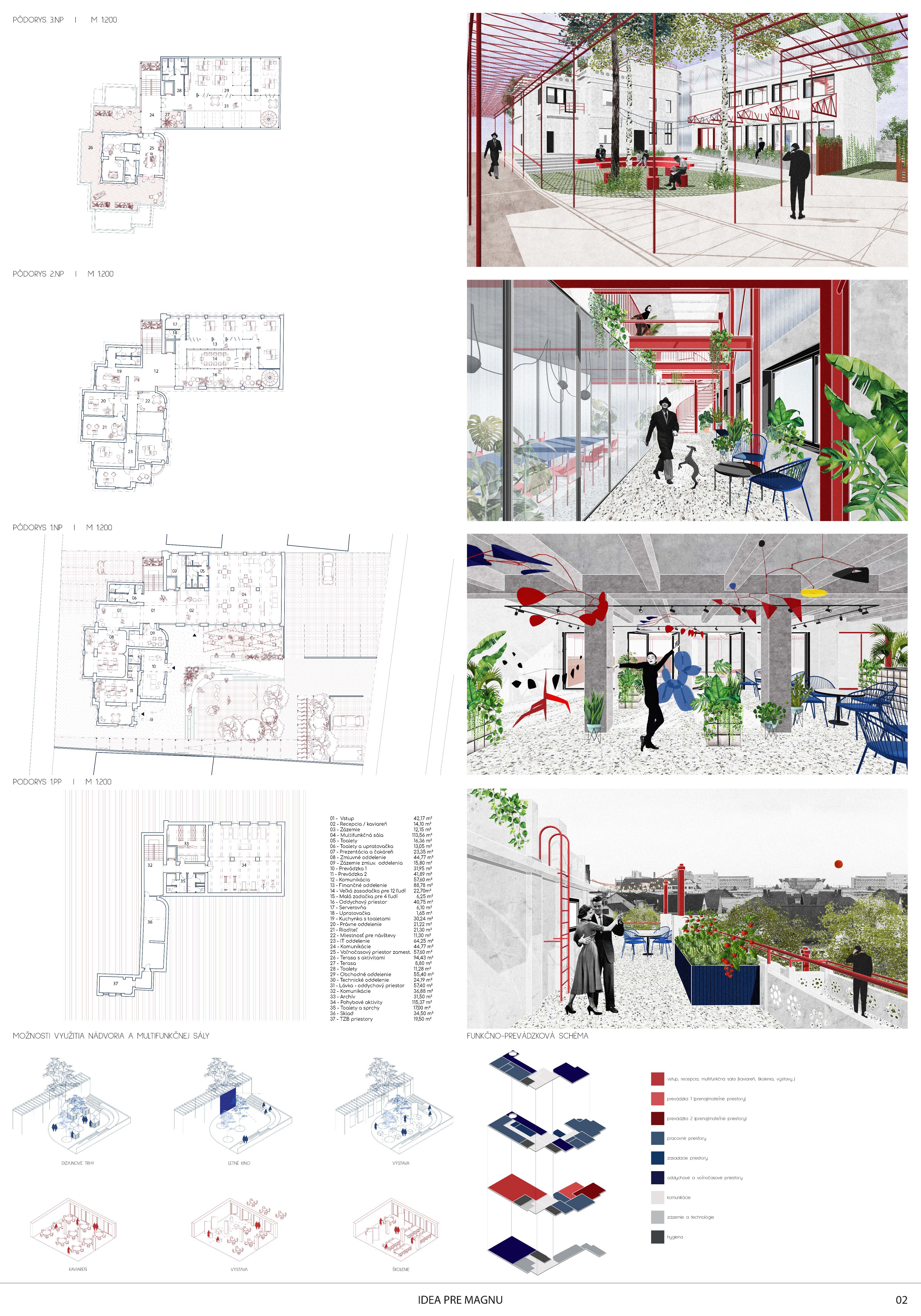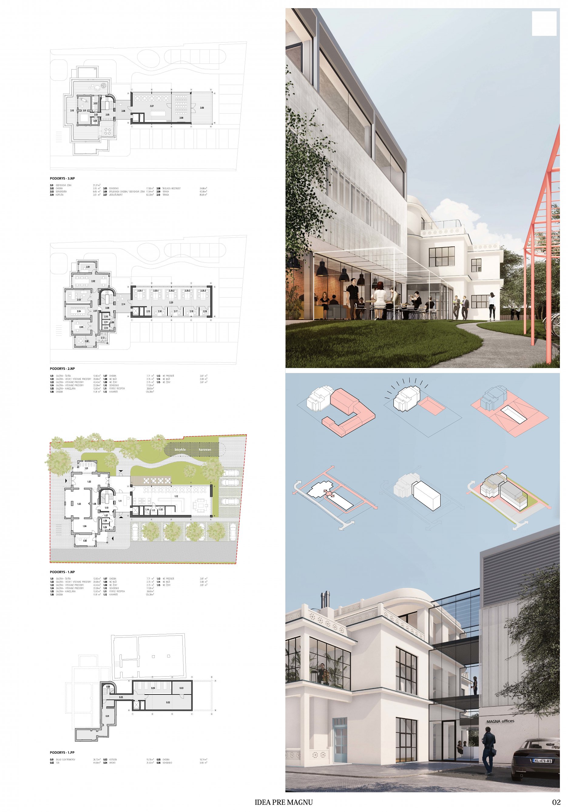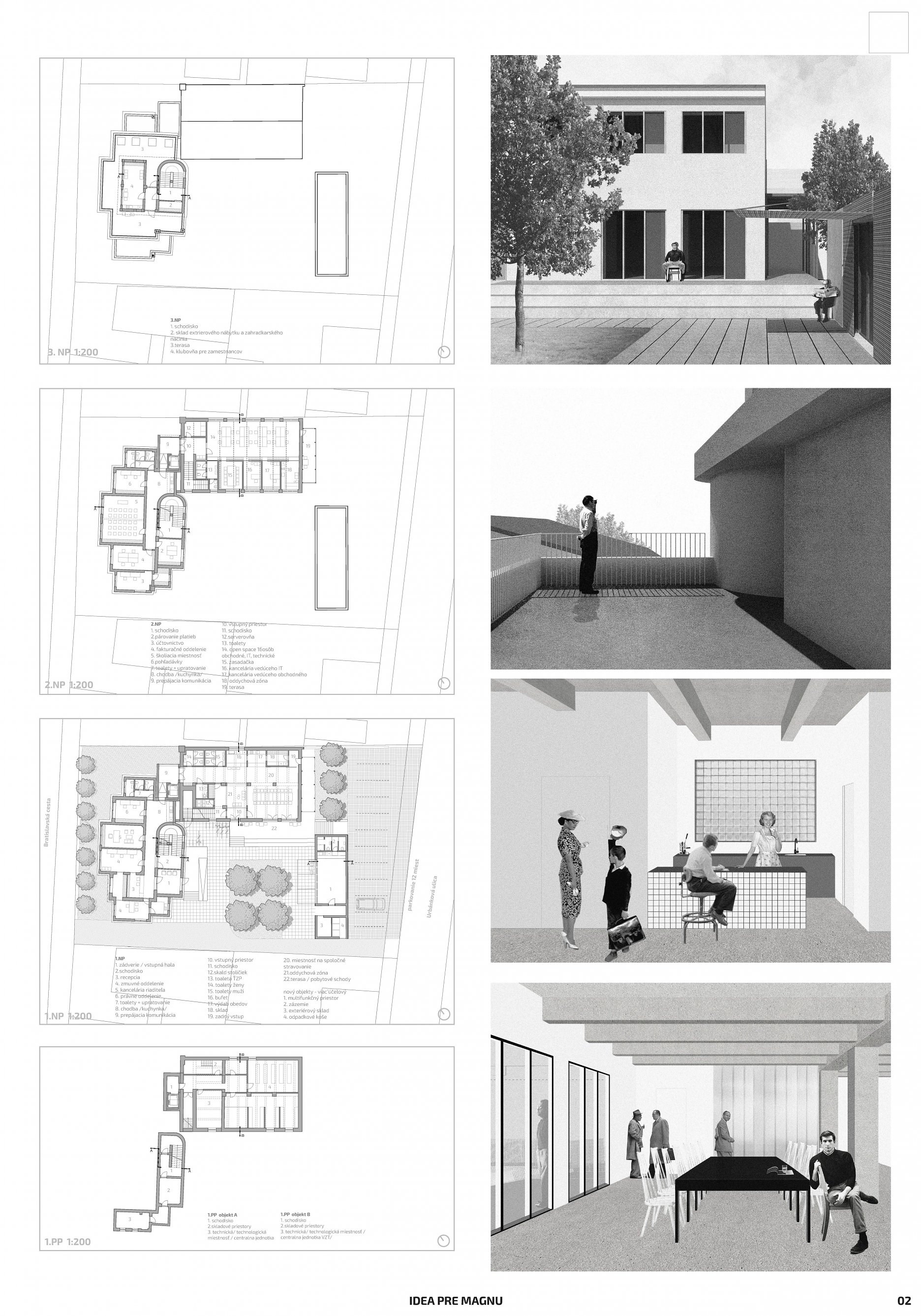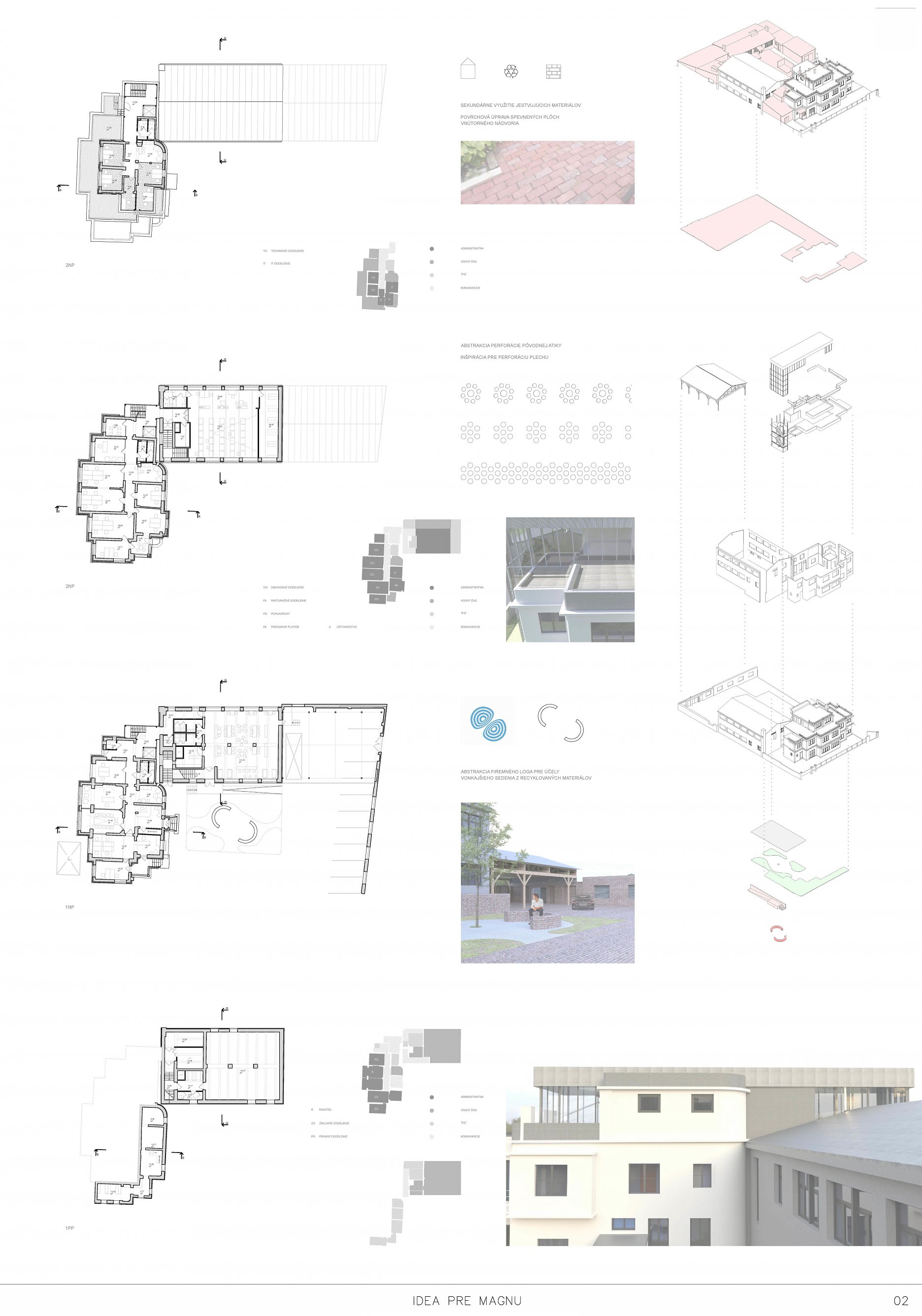 Porota v návrhu ocenila minimalizovanie búracích prác, a tým aj celkového ekologického dopadu výstavby, kedy autor počíta s usporiadaním celej dispozície do existujúcich objektov. Návrhu však chýba zaujímavý detail a prehĺbenie nastaveného konceptu. Tehlová fasády nie je pôvodná a vytvára zbytočne historizujúci dojem.