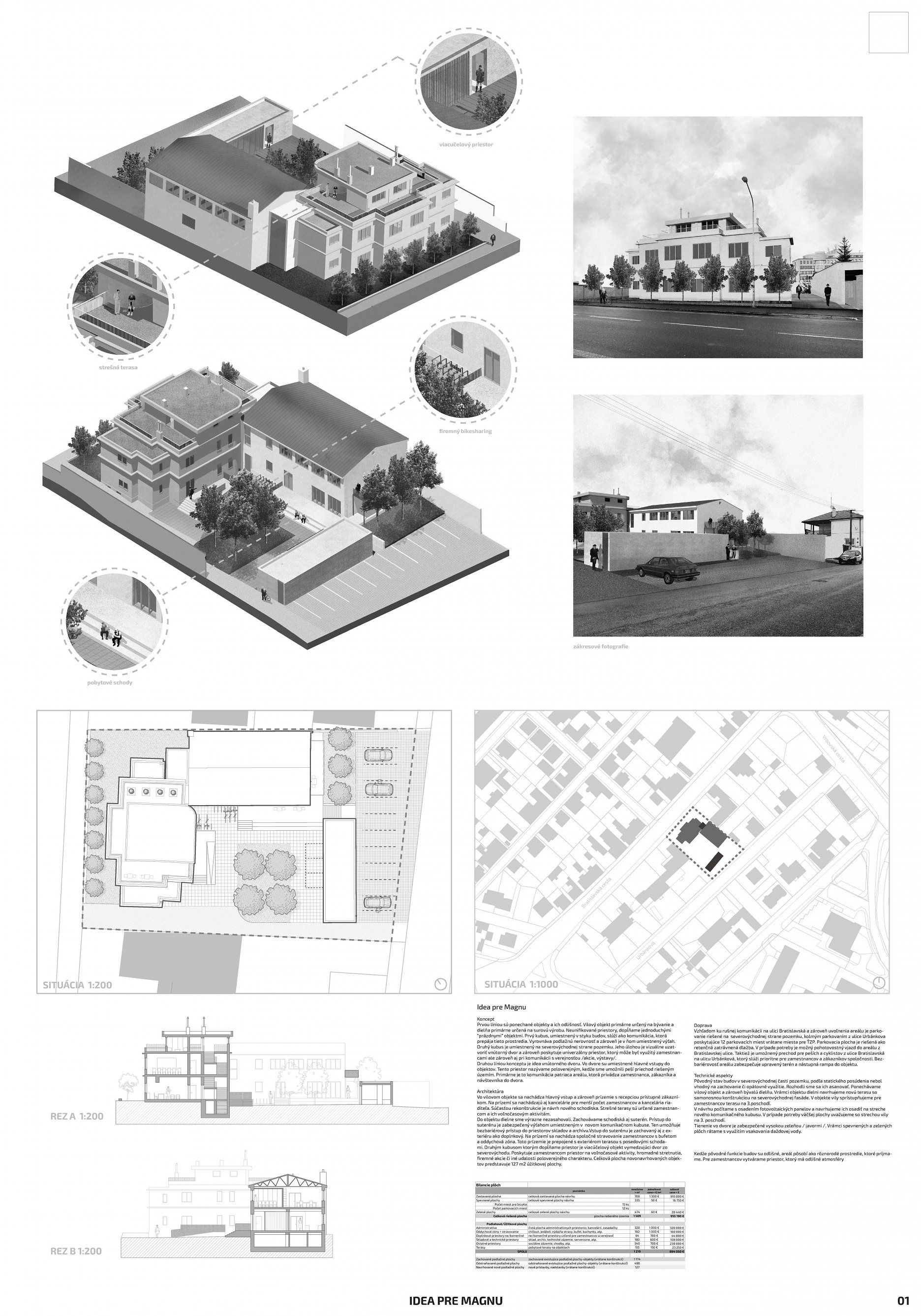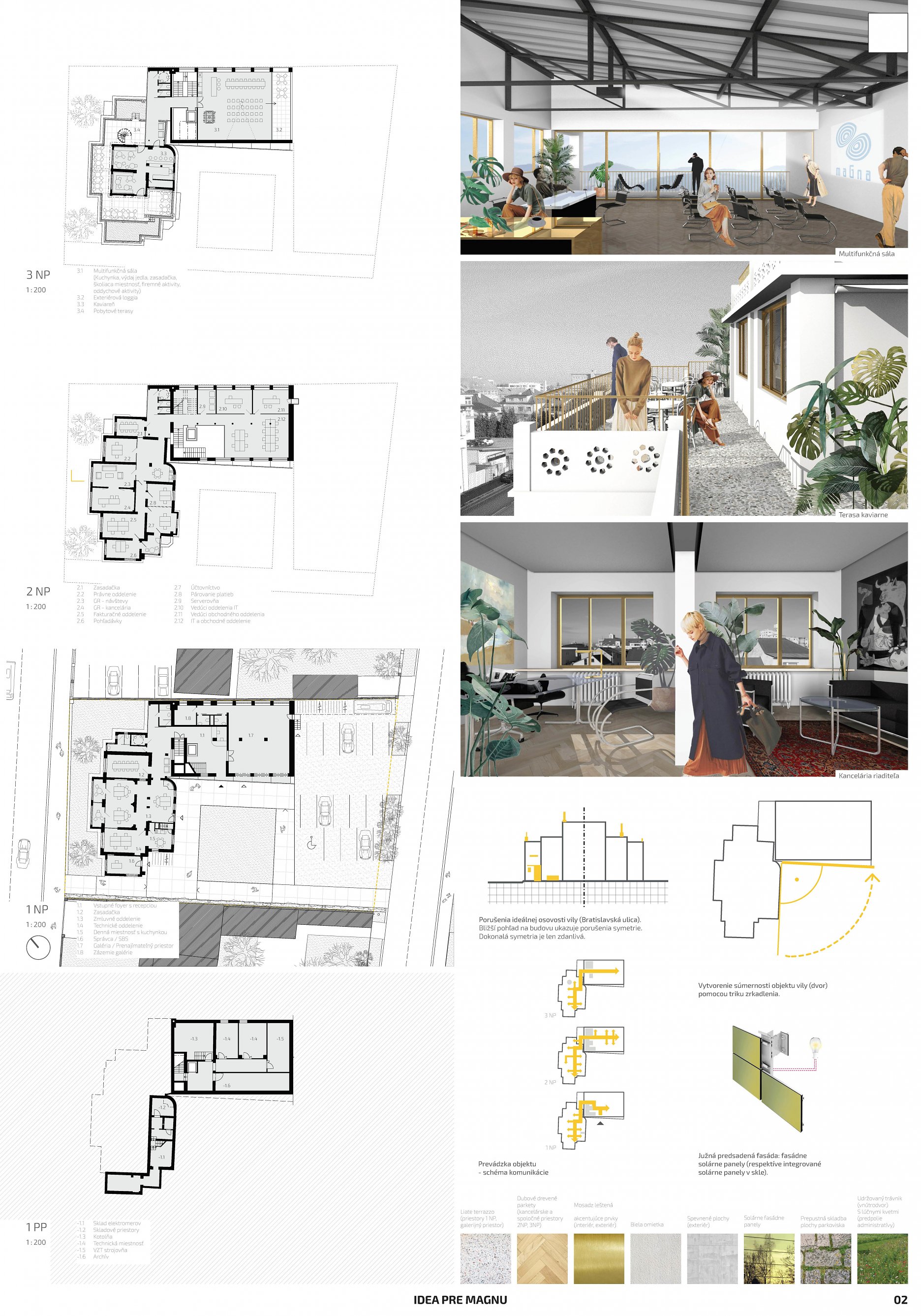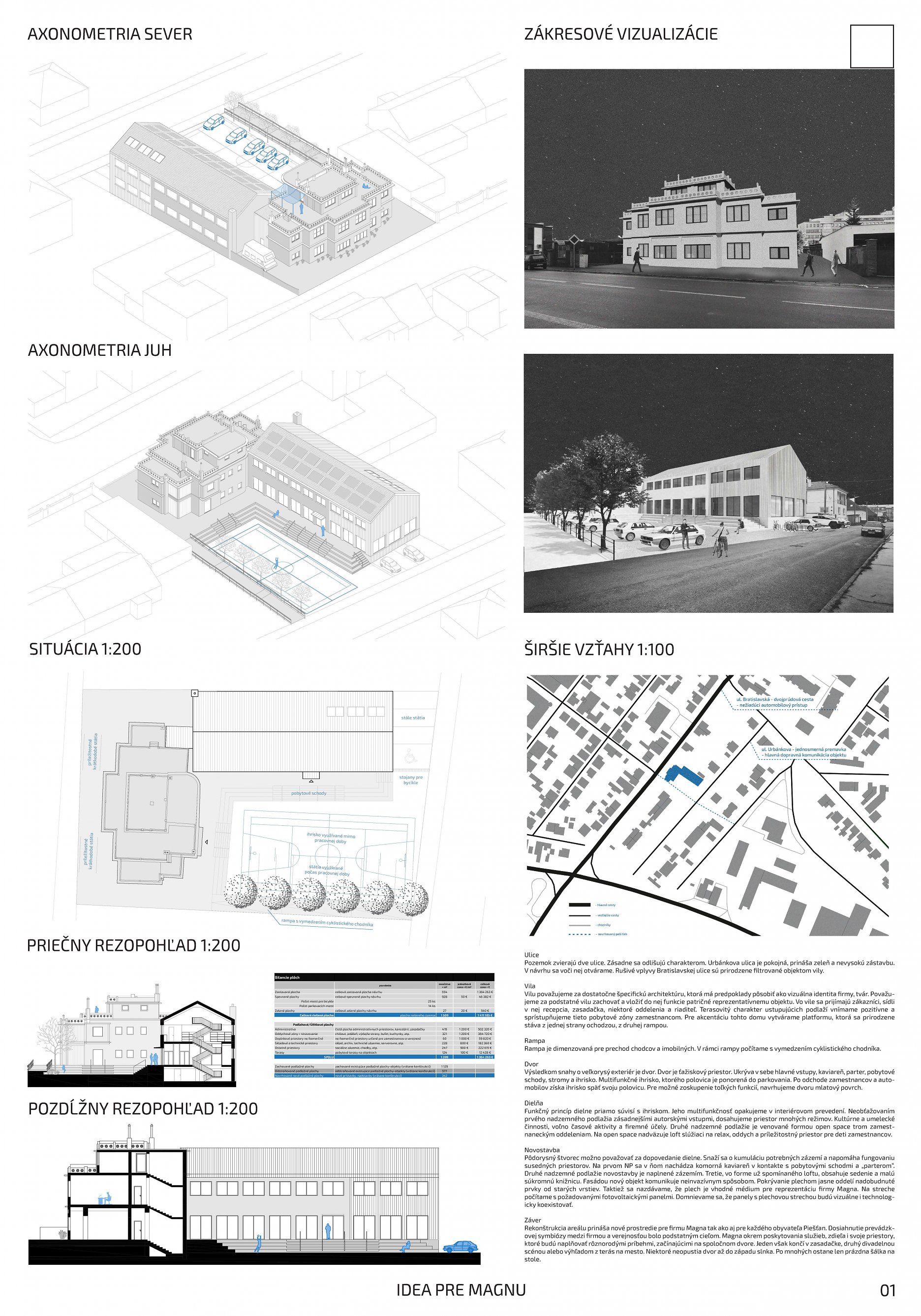 Návrh spomedzi ostatných účastníkov najlepšie pracoval s objektom vily, ktorá dostala jednotnú a nadčasovú podobu. Predpolie vily vyzerá dôstojne a príjemne. Architektonický jazyk návrhu porota zhodnotila ako vyzretý a elegantný. Dispozícia interiéru však sebavedomému vonkajšiemu výrazu nezodpovedá a v objekte vily vytvára labyrint dverí a prevažne uzavretých priestorov. Prístavba k objektu dielne je dispozične neprepojená s ostatnými priestormi. Doriešený nie je ani priestor dvora, ktorý pôsobí nehostinne, chýba mu detail a dôraz na využitie. Problematická je orientácia hlavného vstupu do Bratislavskej ulice, ktorá nie je frekventovane využívaná pešími.