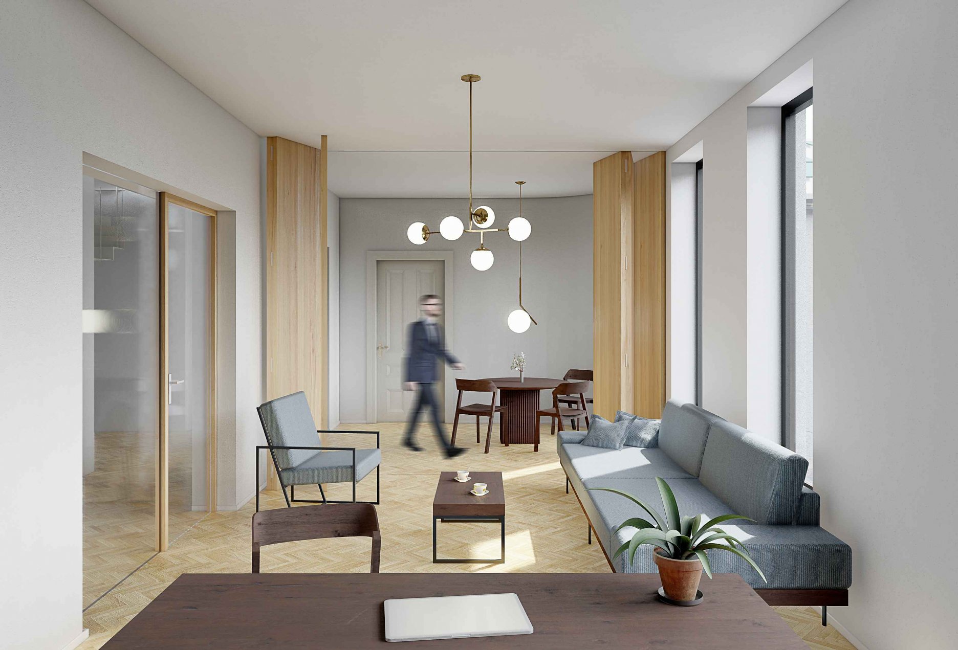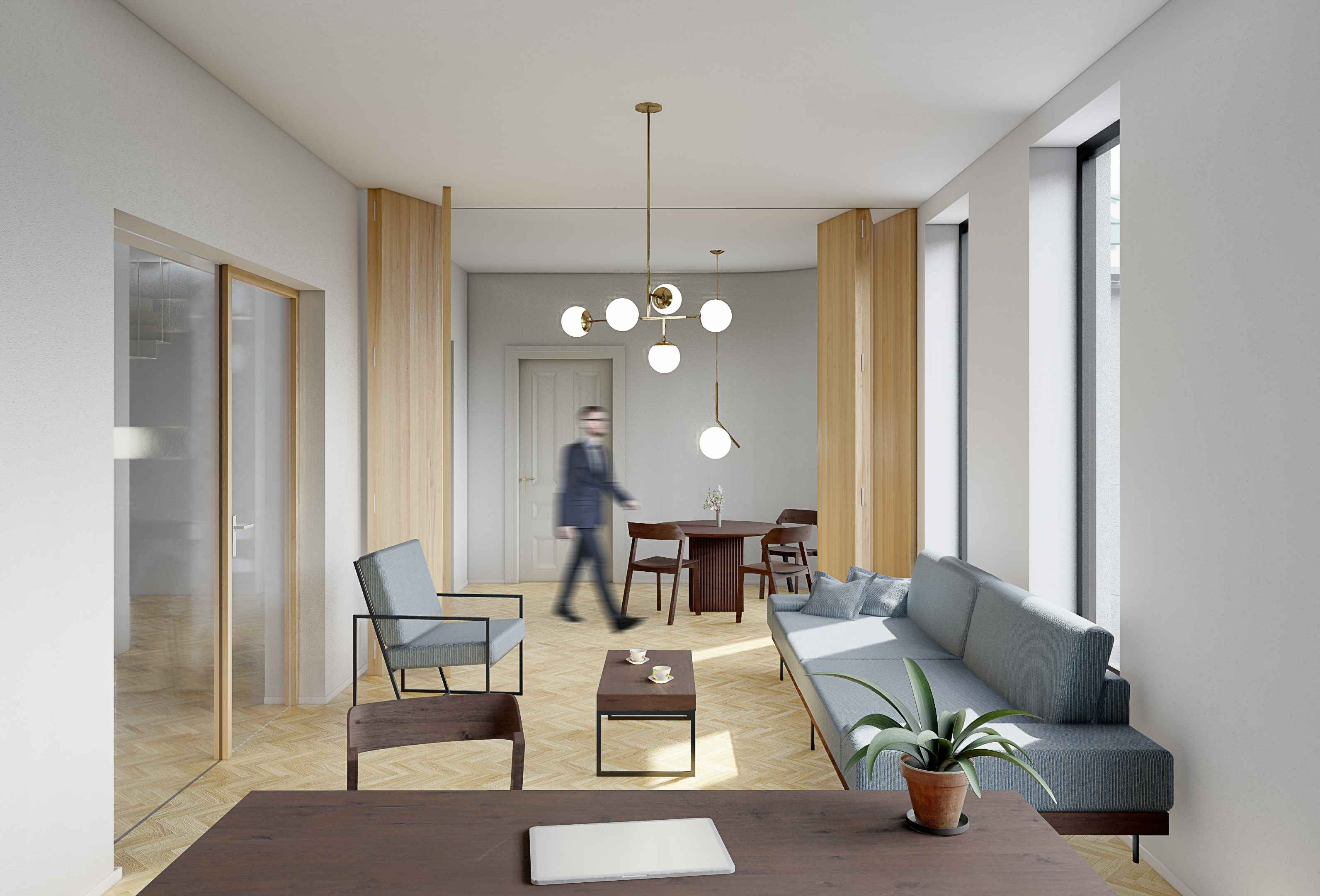 Návrh porotu zaujal čistým architektonickým riešením, dobrou dispozíciou vo vilovom objekte, presvedčivou hmotou a fasádami dostavby a dielne. Príjemný priestor nádvoria je od ulice racionálne oddelený dostavbou s radikálnym výrazom v kontexte územia. Nevhodným a nákladným riešením je parkovací systém s využitím zakladačov.