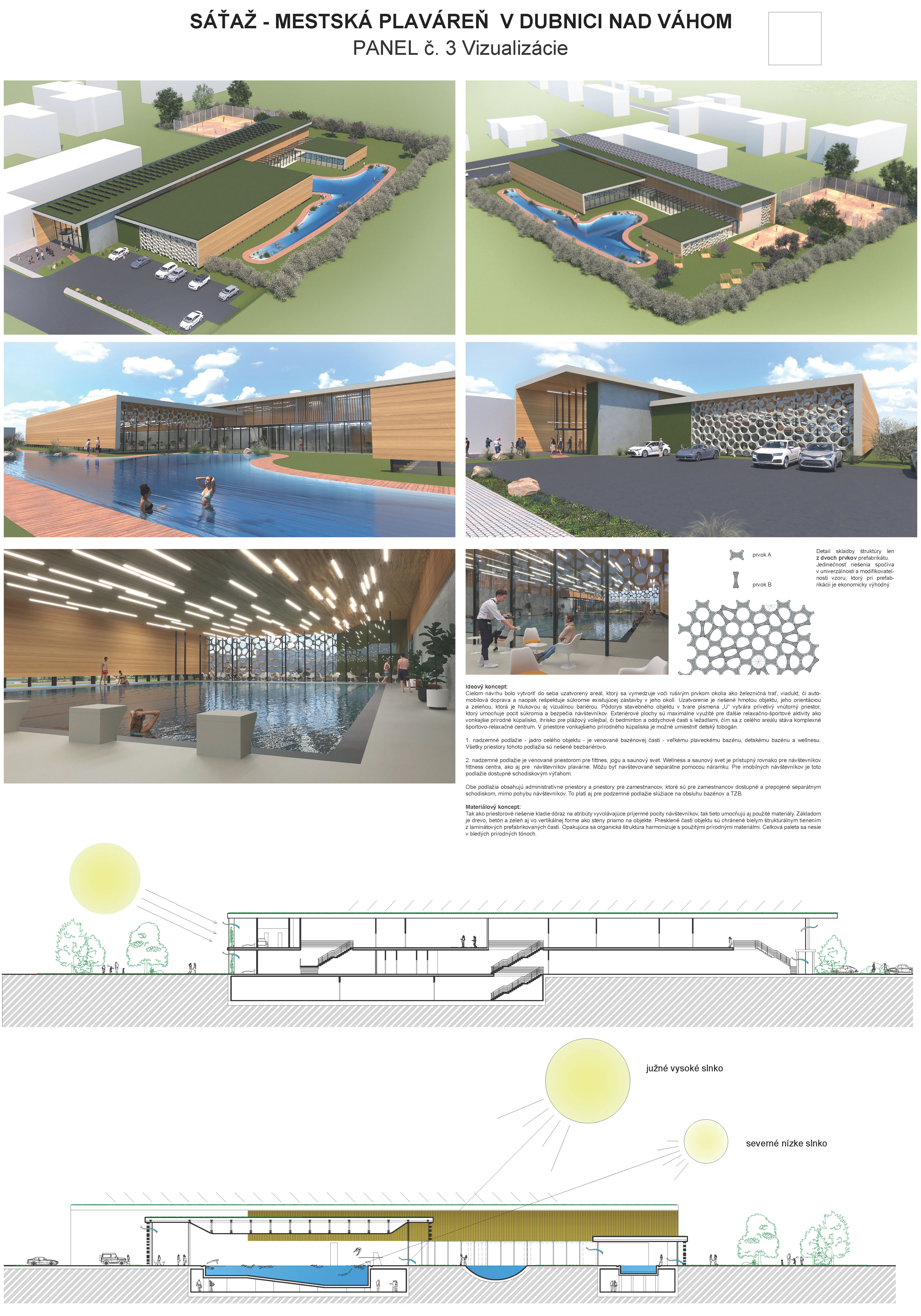 Dubnica nad Váhom, ako verejný obstarávateľ, vyhlásila v septembri súťaž, ktorej účelom bolo získať komplexné riešenie návrhu mestskej krytej plavárne. Nový plavecký areál má vyrásť na ploche bývalej mestskej práčovne, na Ulici športovcov, oproti Zimnému štadiónu. Zóna na hranici intravilánu mesta je súčasťou plôch určených na telovýchovu a šport. Do súťaže sa zapojilo 14 autorských kolektívov.