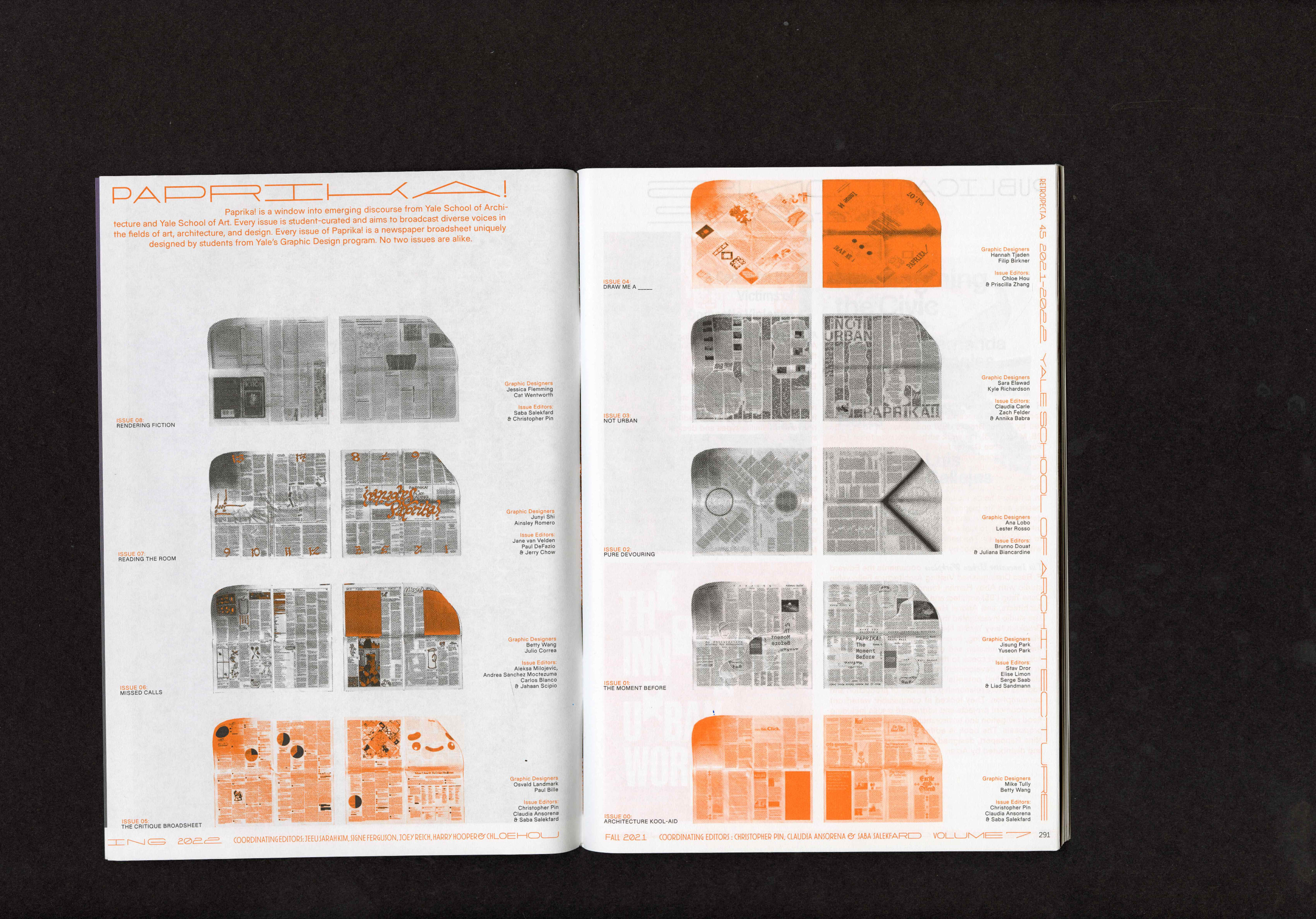 Retrospecta je ročné periodikum, ktoré zaznamenáva udalosti a okolnosti, ktoré jedinečne ovplyvnili akademické, sociálne a politické prostredie katedry architektúry na Univerzite Yale. Grafický dizajnér Filip Birkner a písmar Jisung Park boli vybraní a poverení grafickým návrhom štyridsiateho piateho vydania tohto periodika, ktoré vznikalo v úzkej spolupráci s editoriálnym tímom. Pre pripomenutie a obnovenie zážitkov, ktoré škola v študentoch zanecháva a ktoré počas pandémie najviac chýbali, sa na rozdiel od produkovania jednej knihy s lineárnou hierarchiou rozhodli knihu rozdeliť na štyri separátne zväzky, ktoré dávajú čitateľom autonómiu ich voľne preskupovať, reorganizovať, a porovnávať štúdiá, semináre a semestre, ako aj objavovať momenty zhluku charakteristické školskému životu. Publikácia je tlačená ofsetom.