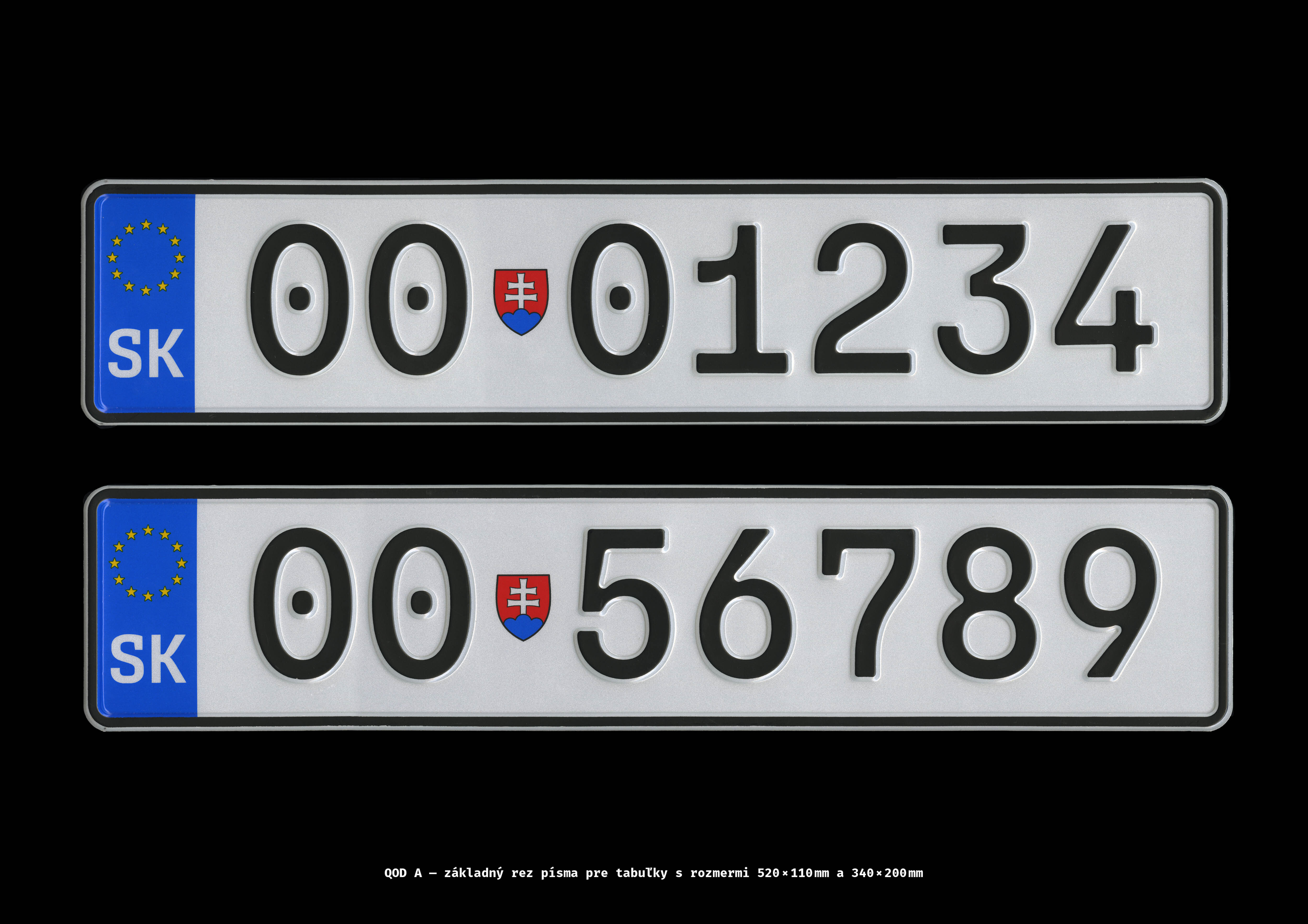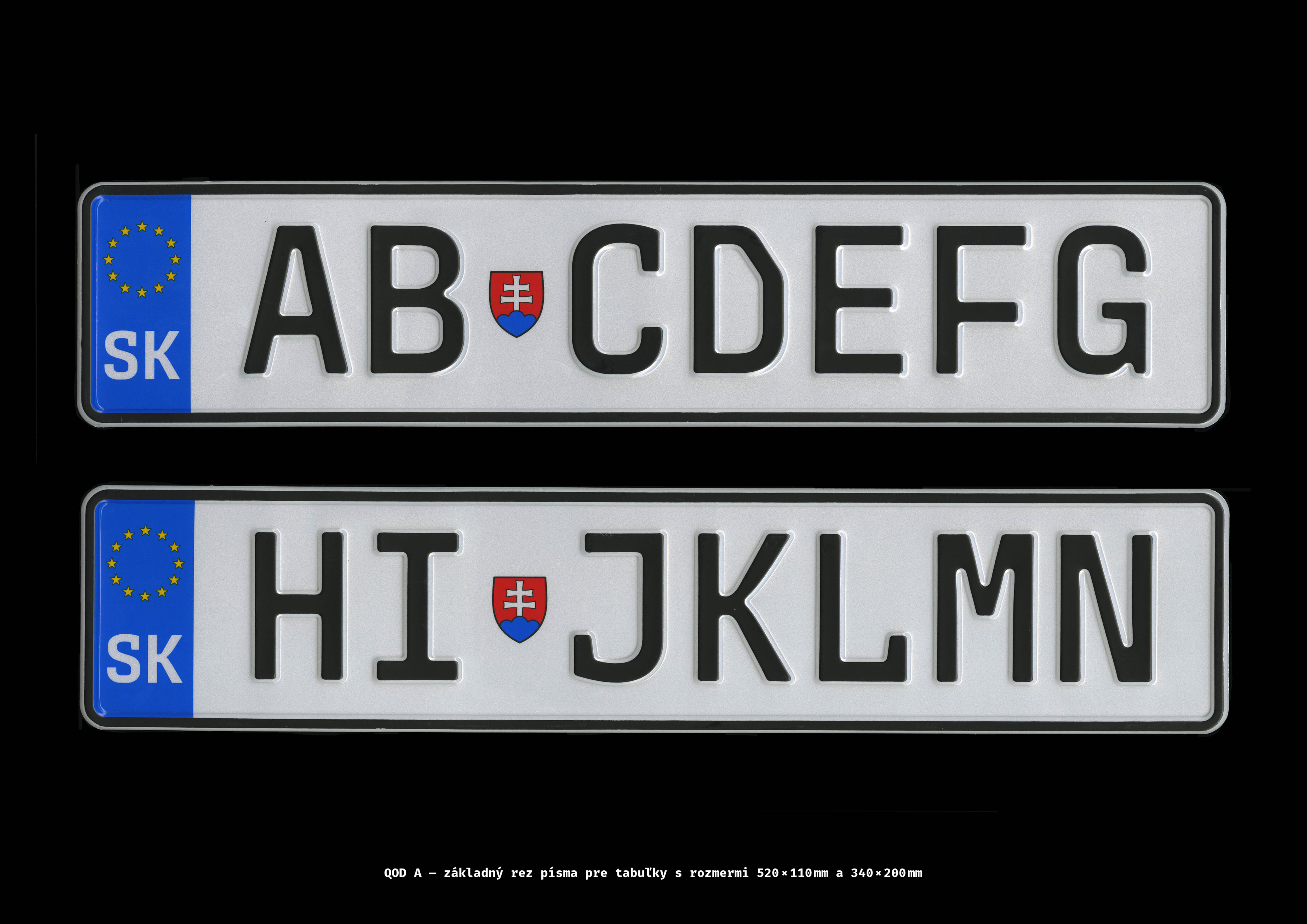 QOD písmo pre tabuľky s evidenčným číslom vozidla