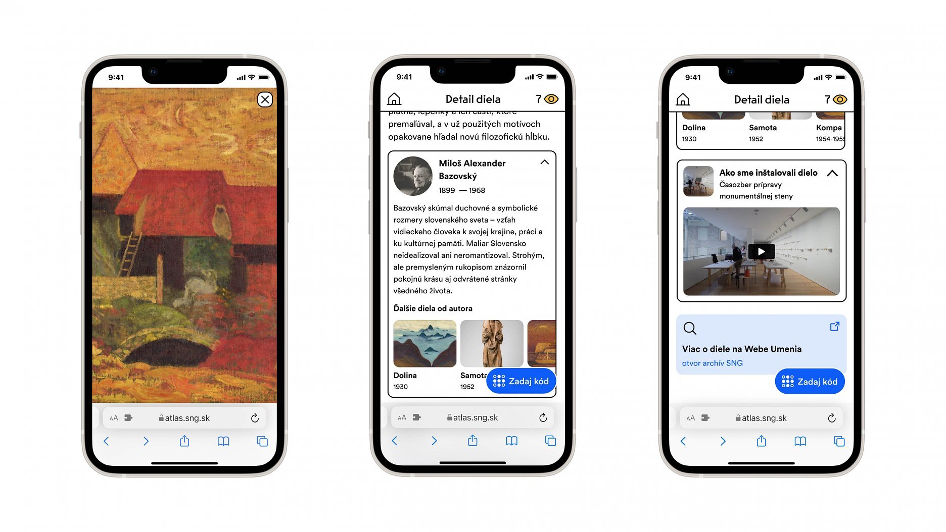 Digitálny sprievodca Atlas SNG prináša príbehy výtvarných diel, ich autoriek a autorov, prehľad výstavných tém a zaujímavých miest v Slovenskej národnej galérii. Objekty v galérii majú priradené jednoduché krúžkové kódy. Po vyťukaní kódu sa v Atlase objaví bohatá vrstva informácií a prepojení na ďalšie objekty. Obsah v Atlase nekopíruje výstavné katalógy a ponúka originálny a prístupný pohľad na viac než 250 vystavených objektov. Publikum môže objekty objavovať aj vyťukávaním náhodných kódov alebo prostredníctvom Pátračky, v ktorej diela naprieč galériou spája spoločná téma. Na pravidelne obmieňanú tému Pátračky ďalej nadväzujú tvorivé aktivity a edukačné videá v Otvorenom ateliéri SNG. Atlas netreba sťahovať, funguje priamo v prehliadači a automaticky si pamätá všetky preskúmané objekty.
