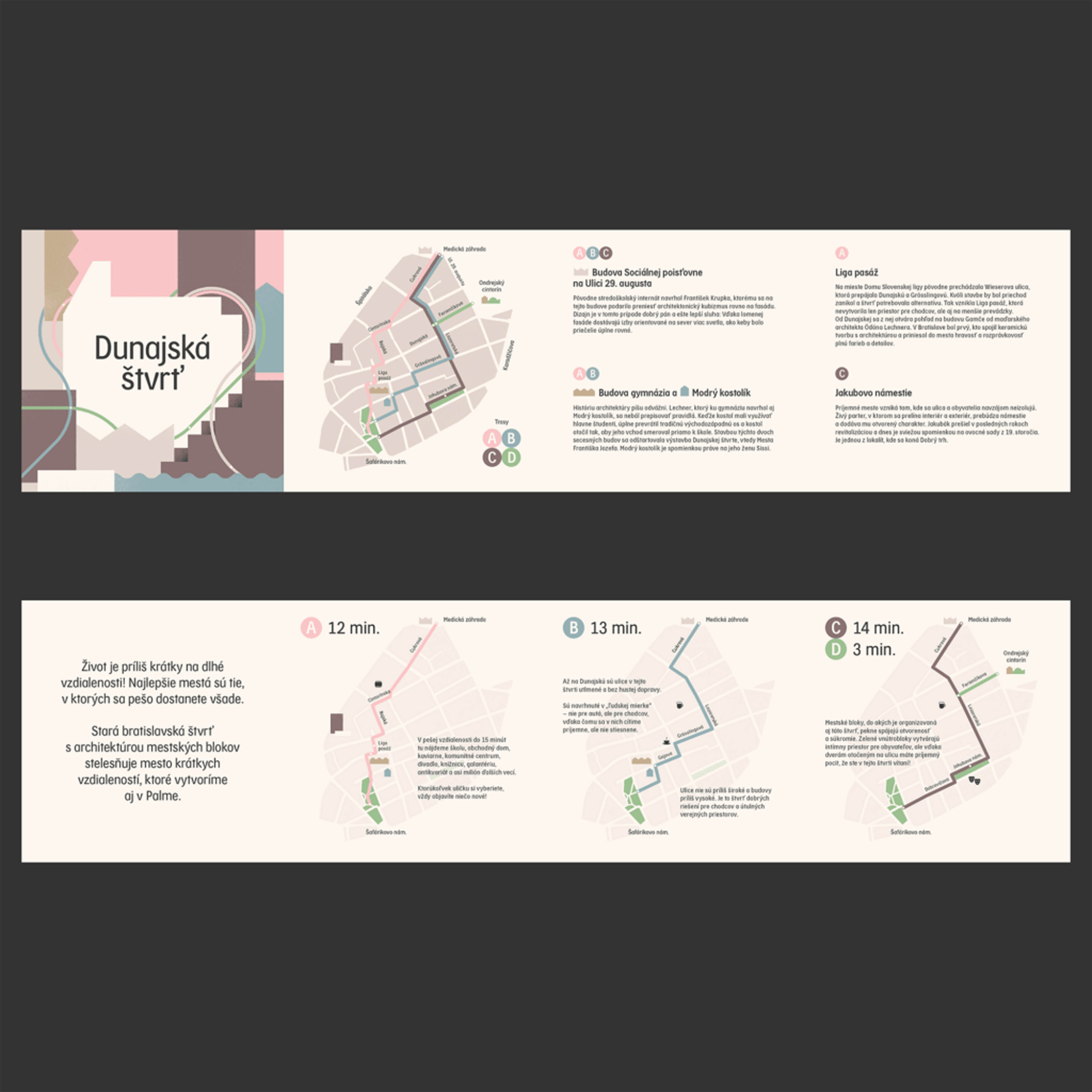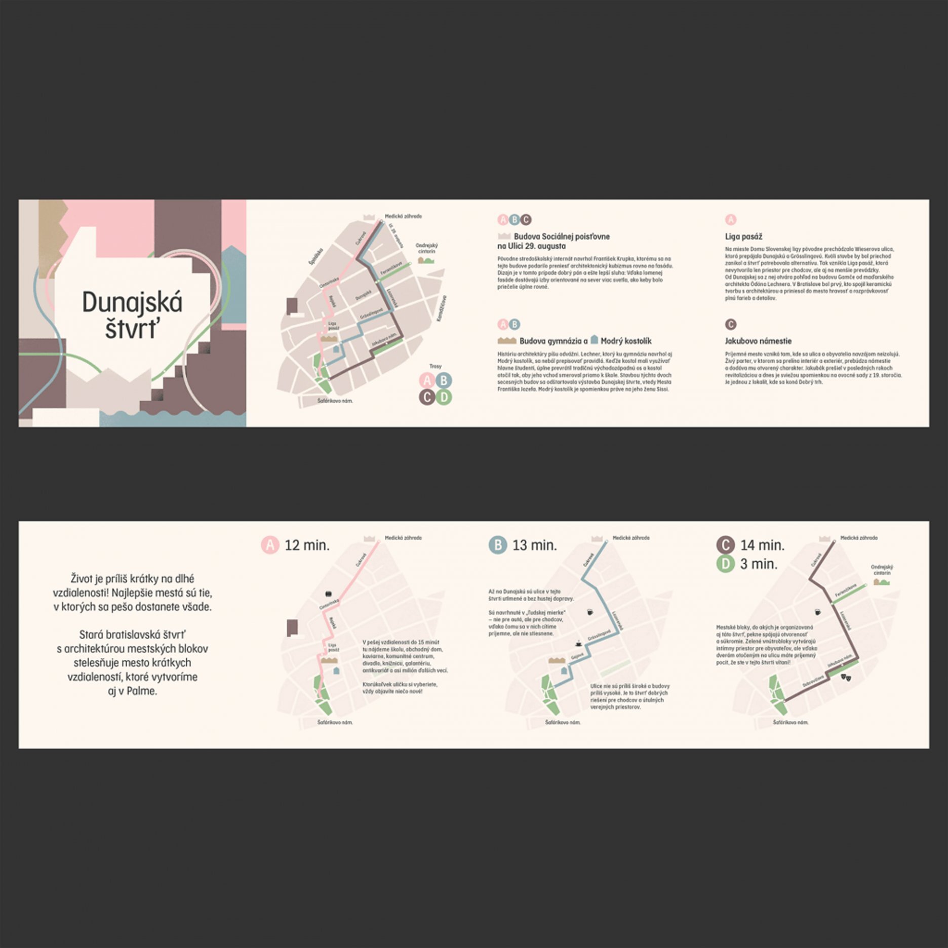 Projekt Palma v Bratislave je urbanistickým počinom. Na ploche brownfieldu po bývalej fabrike vznikne nová sebestačná mestská štvrť. Developer Corwin zveril celú oblasť do rúk skúsených dánskych architektov Gehl architects. Pre korporátnu identitu Palmy bol vytvorený grafický jazyk, pozostávajúci z jednoduchých štylizovaných elementov odkazujúcich na architektúru Palmy a na princípy, na ktorých bude postavená – miesto pre chodcov, udržateľnosť, lepšia doprava a dostupnosť. V identite Palmy je zjavná aj inšpirácia Dánskom, a to v čistote tvarov či typografii inšpirovanej tabuľami v Kodani. Zároveň bola do identity aplikovaná na developera netradičná farebnosť. Taká, ktorá nekričí, nechce za každú cenu predať, ale chce, aby sa človek cítil príjemne. Tak, ako sa bude cítiť v novej Palme.