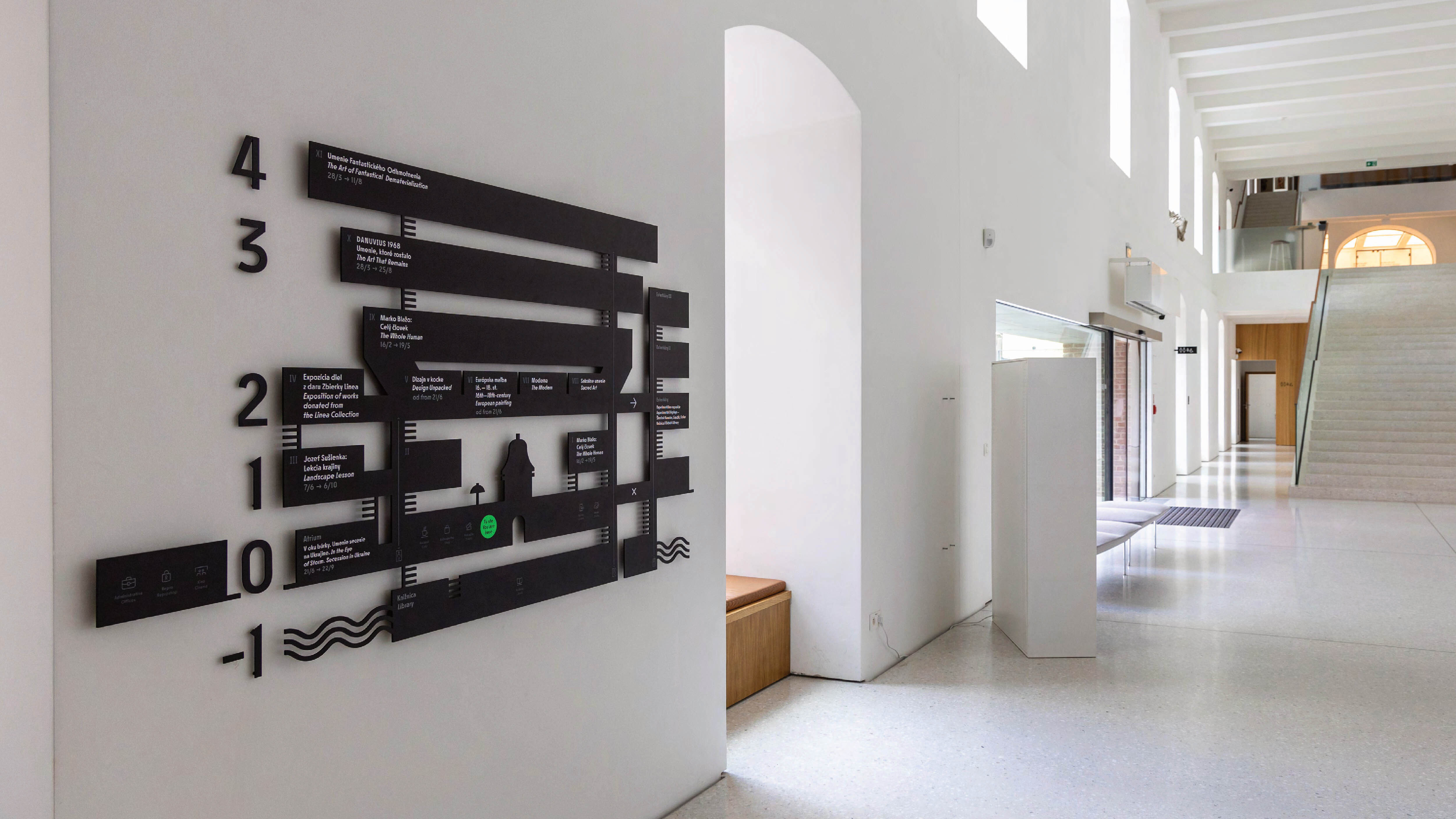 Rôznorodé budovy SNG sú v koncepcii rekonštrukcie zjednotené, čo sa odráža aj v návrhu informačného systému. Jeho cieľom je doplniť architektúru a exponáty pomocou estetiky ovplyvnenej sedemdesiatymi rokmi. Prvky sú osadené na kovových konštrukciách s neutrálnou farebnou paletou, čím sa minimalizujú fyzické podpery. Projekt bol navrhnutý s ohľadom na flexibilitu, ktorá umožňuje jednoduché prispôsobenie zmenám a jednoduchú úpravu obsahu. Väčšina médií je pohyblivá a aplikácia obsahu prebieha prostredníctvom samolepiacej fólie. Premostenie SNG prezentuje galériu navonok prostredníctvom závesného systému, ktorý propaguje výstavy a umožňuje inštaláciu umeleckých diel. Po jeden a pol roku sa informačný systém naďalej vyvíja na základe praktických skúseností a meniacich sa podmienok.