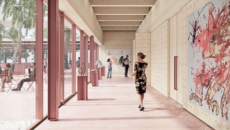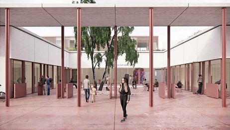 Návrh ponecháva átrium funkčne a prevádzkovo uzavreté, neprepája ho z trhoviskom, čo je škoda. Má s ním síce vizuálny kontakt cez presklené plochy fasády, no tieto dva verejné priestory nemožno úplne prepojiť.