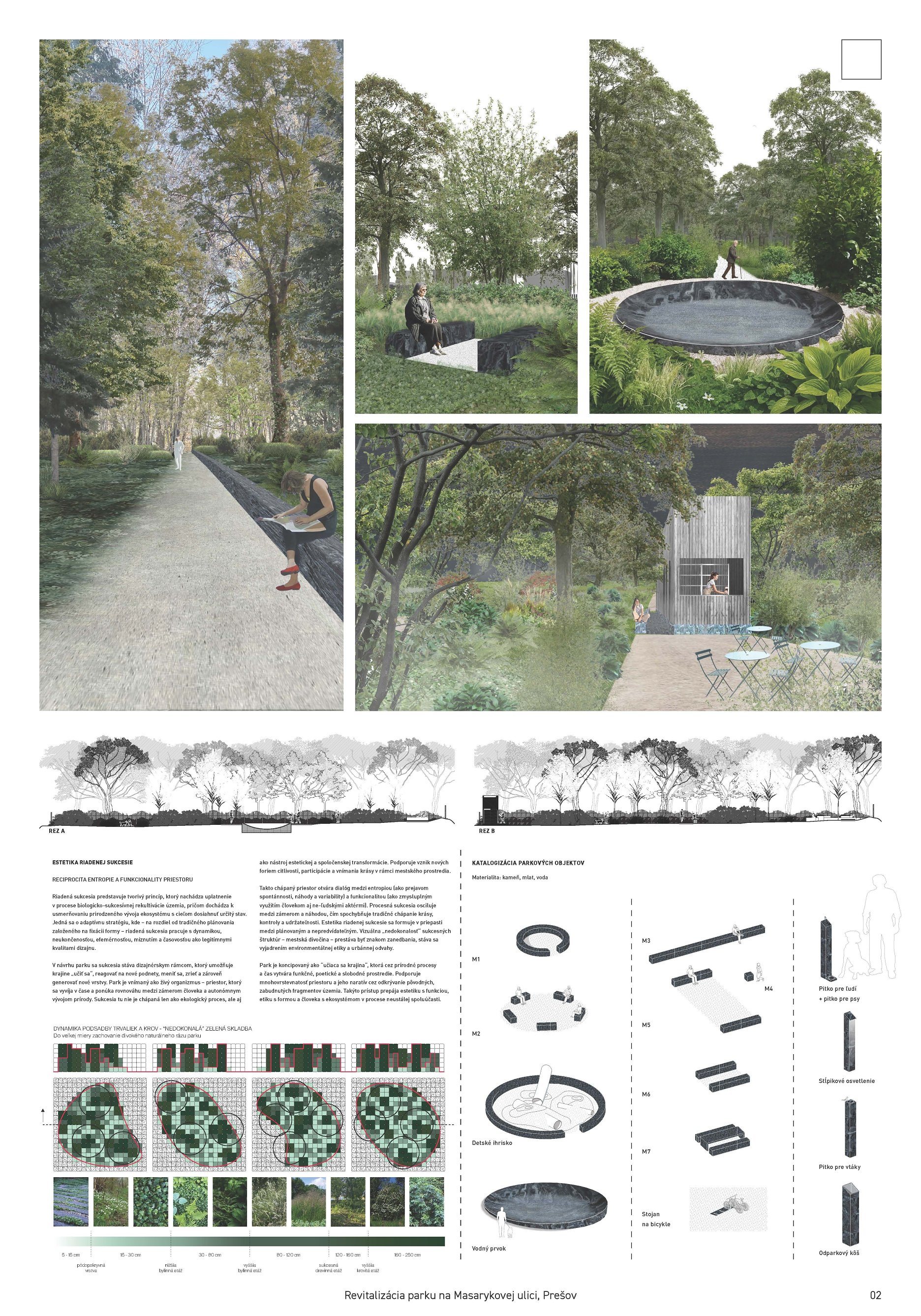 Porota tiež uvádza, že návrh nadväzuje na aktuálnu situáciu parku (kde príroda „vzala späť“ stratenú mestskú tvrdosť), no pri detailnejšom pohľade výsadba a prezentované atribúty (napr. „riadená sukcesia“) nie sú presvedčivo podložené a nezhodujú sa s vizualizáciami a špecifikami.