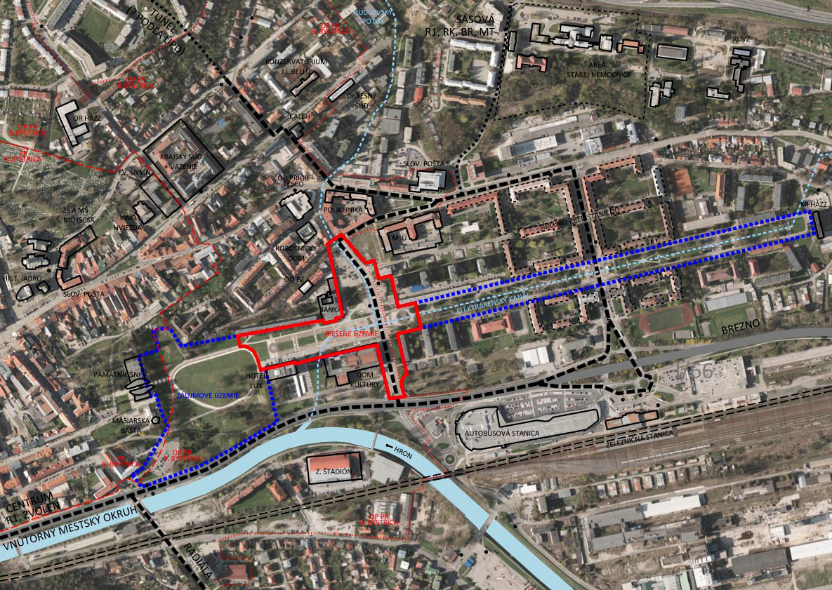 Cieľom je vyriešenie priestorových a funkčných problémov, povýšenie a podporenie významu hlavnej kompozičnej osi vedenej v smere východ - západ a vrcholiacej pamätníkom SNP. Vážnym problémom riešeného územia sú tiež urbanisticko-dopravné problémy a dopravná obsluha.