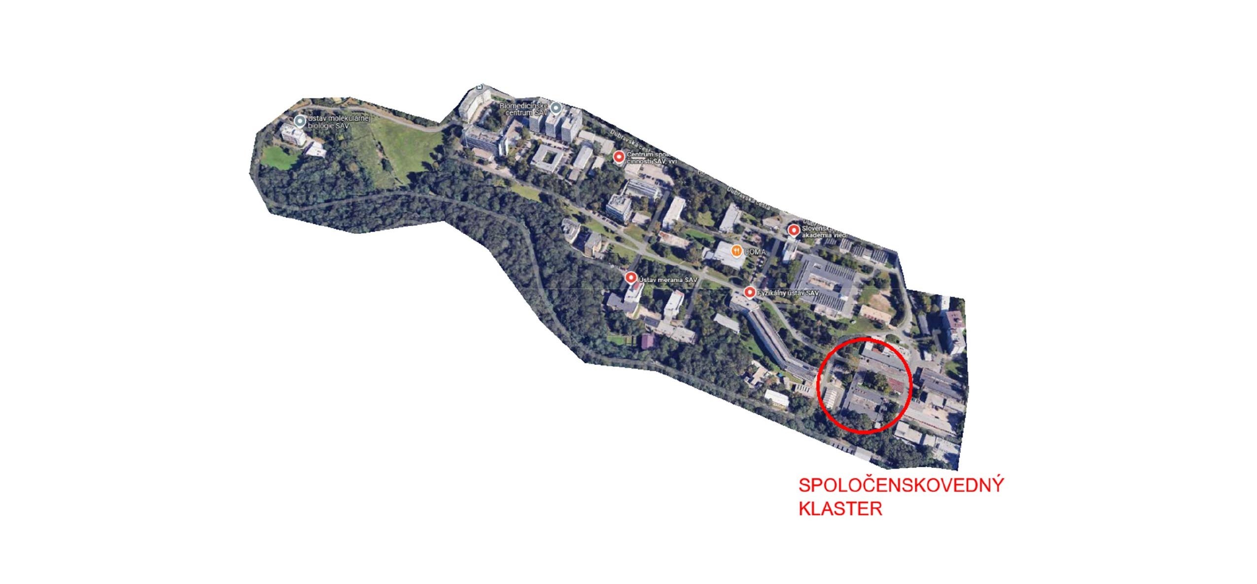 Pavilón spoločenských vied bude situovaný na juhovýchodnom okraji areálu, v tesnej blízkosti významnej budovy Chemického ústavu od Karola Paluša. Bude združovať spoločenskovedné ústavy, má predstavovať moderný pohľad na administratívnu architektúru, s dôrazom na architektonický odkaz areálu SAV, súčasné technologické a ekologické štandardy a najmä poskytovať optimálne pracovné prostredie podporujúce vedeckú činnosť a inováciu. Má byť univerzálny, adaptabilný, otvorený budúcim transformáciám vo vnútornom usporiadaní.