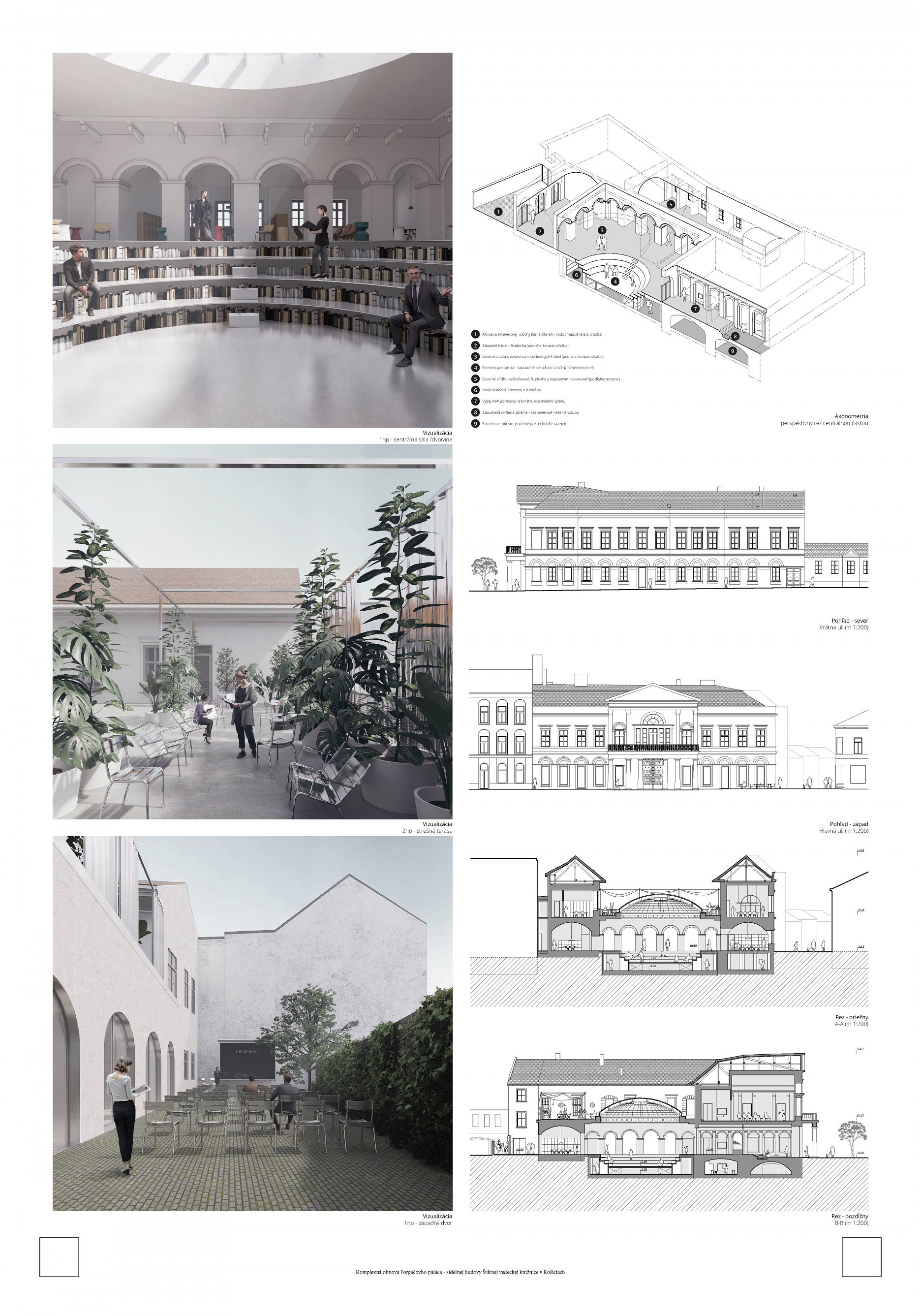 Porota kladne hodno čistý architektonicky a graficky jazyk návrhu. Pozitívne vníma ponechanie strešnej roviny v exteriéri. Ako problematicky vidí práve ústredný mov celého návrhu vo vzťahu k funkčnosti knižnice ako takej a funkčno-prevádzkové väzby jednotlivých priestorov.