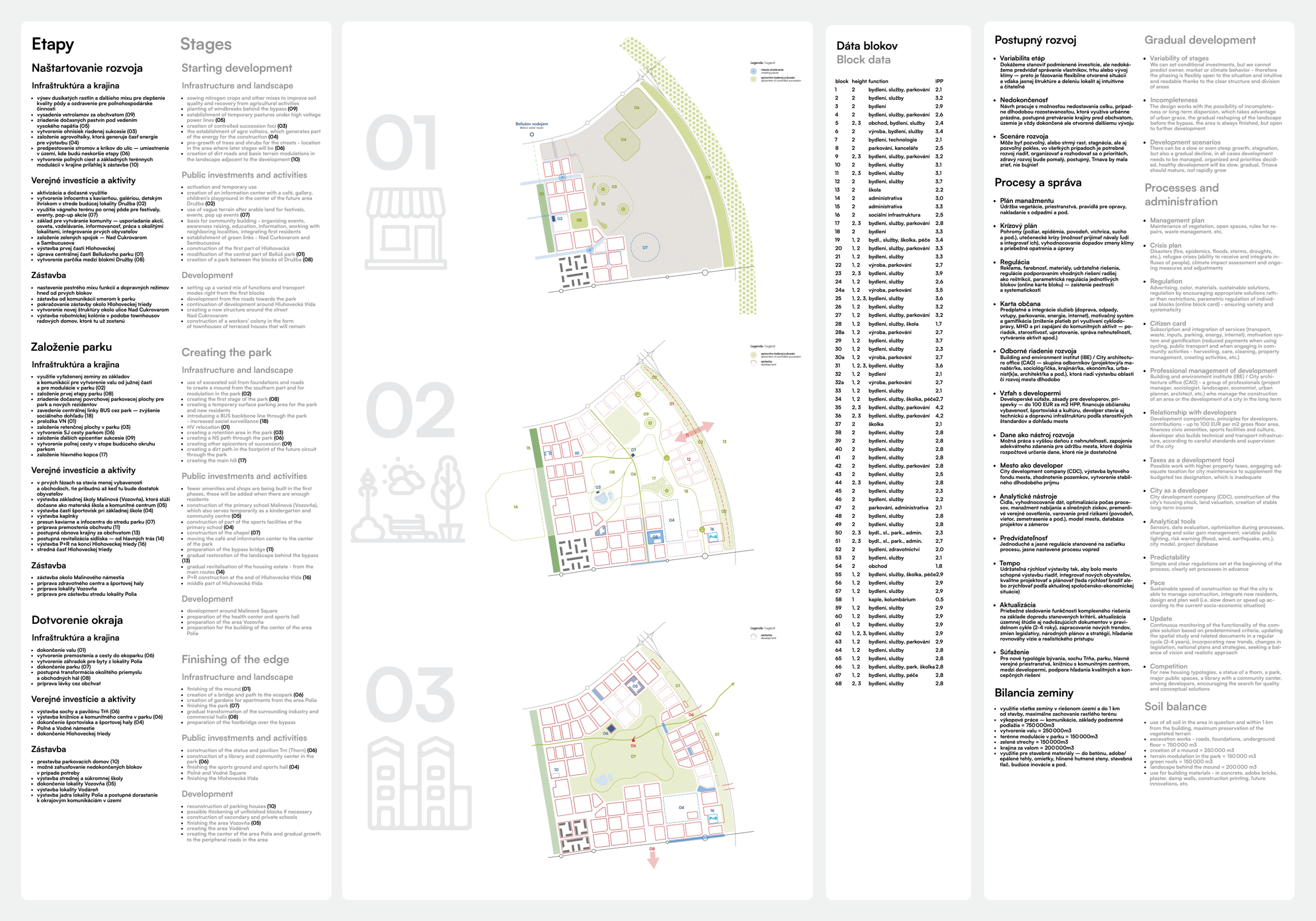 Nová lokalita sa bude rozvíjať pozvoľna v najbližších desaťročiach. Hneď v úvodnej fáze má však v tomto území vzniknúť jeden z rozsiahlych parkov, ktoré mesto plánuje v každej mestskej časti.