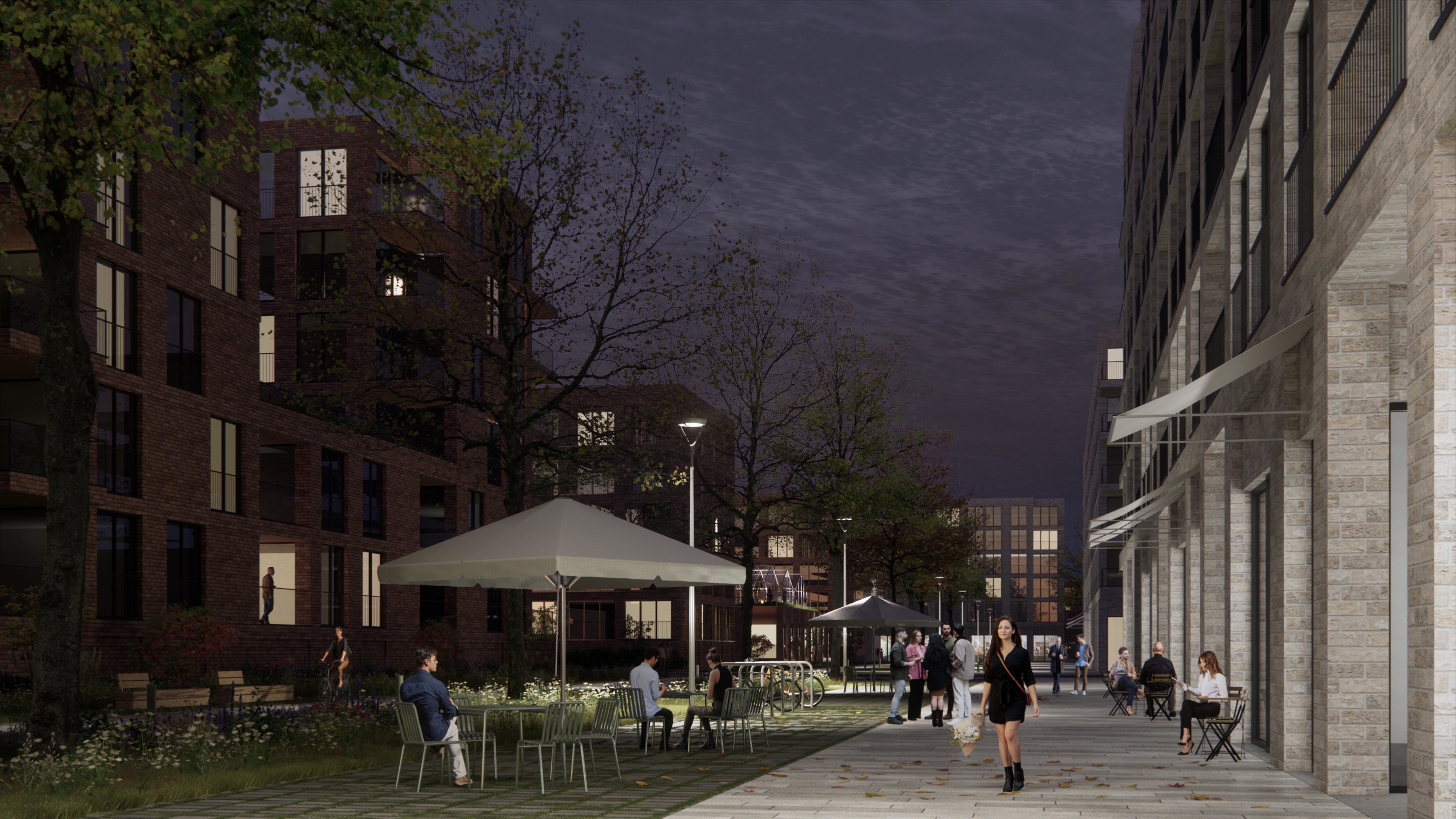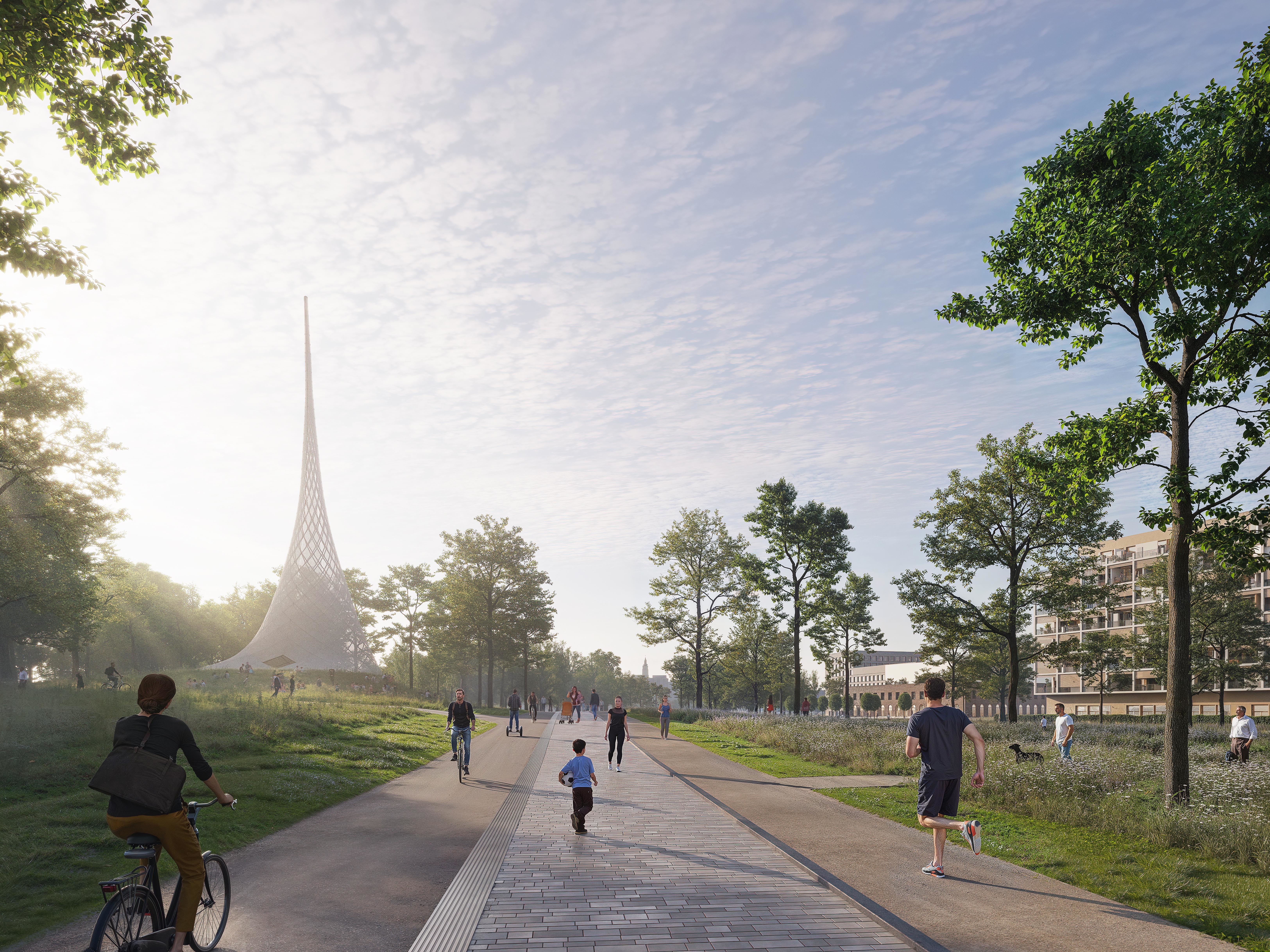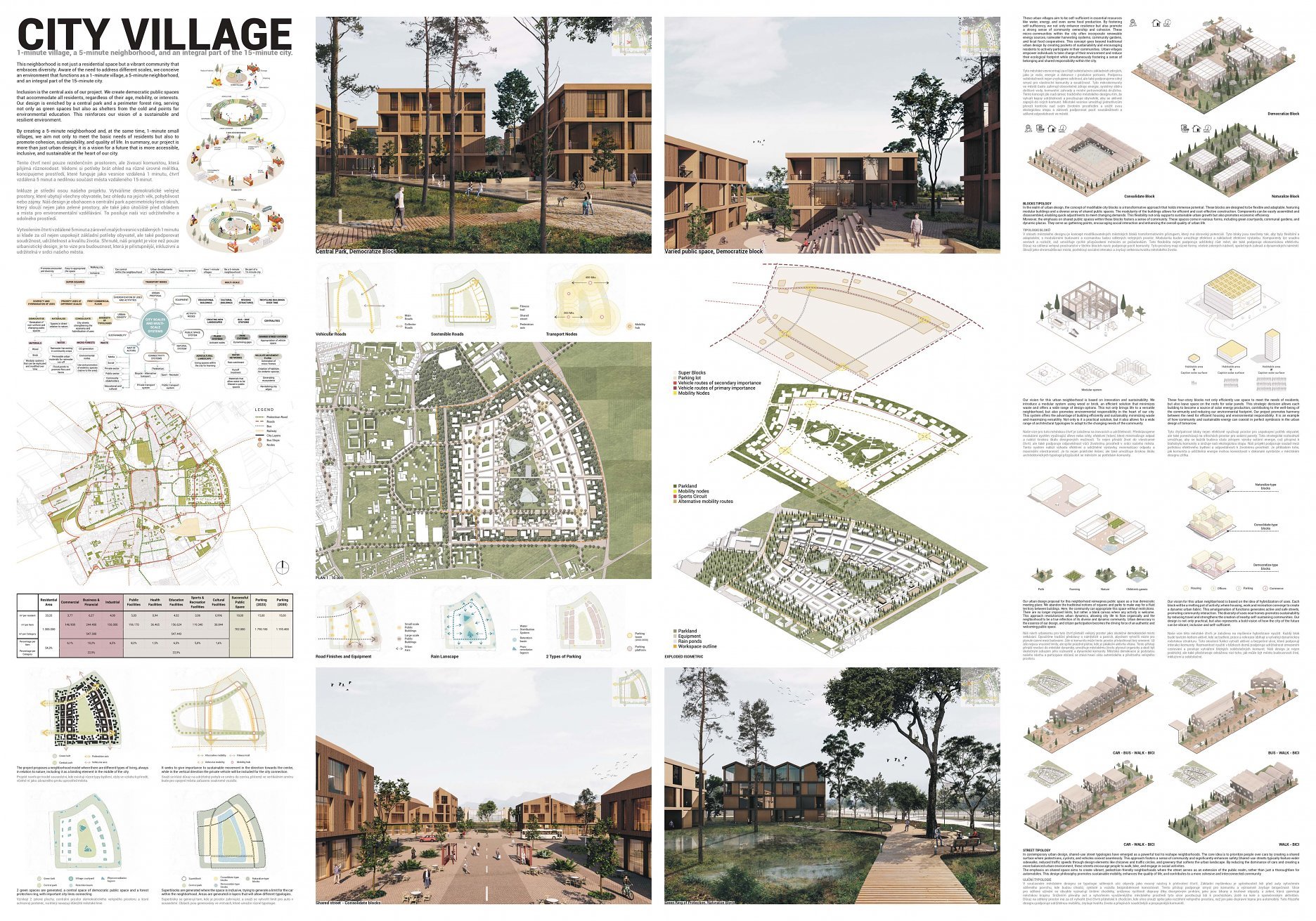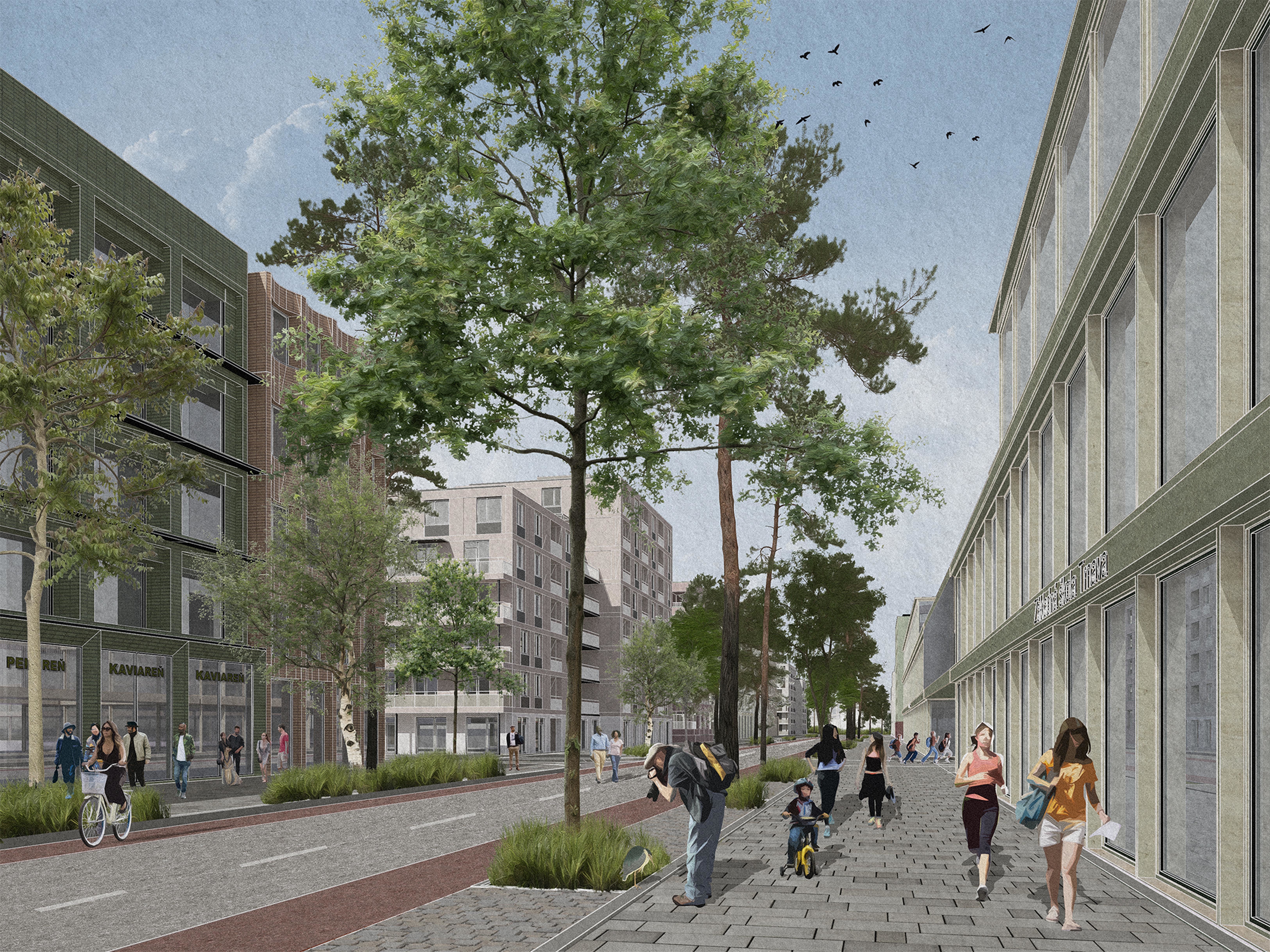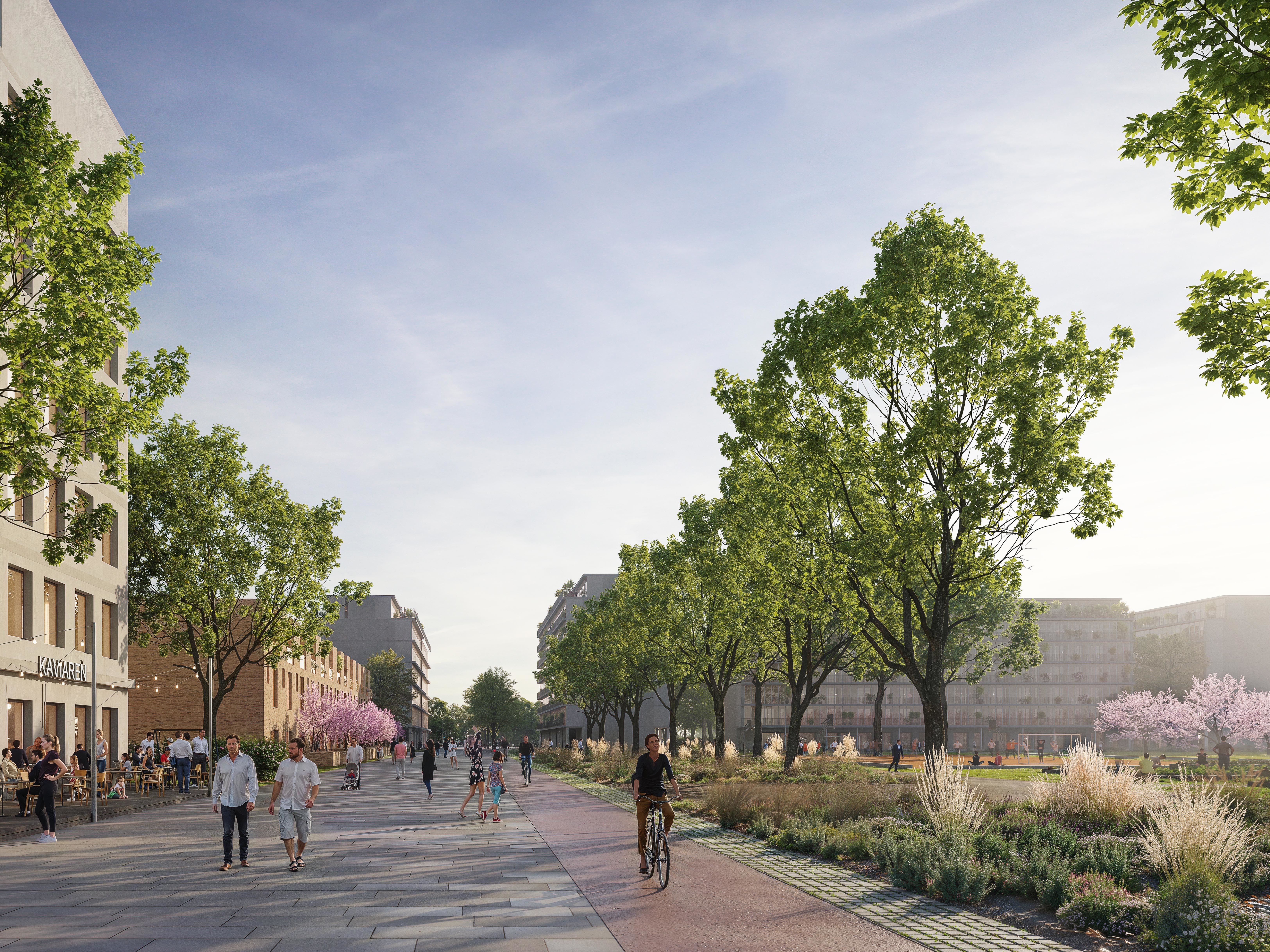 Tento návrh stavia do centra štvrte veľkorysý park, čo porota hodnotila veľmi pozitívne. Park je silný a robustný a má obrovský potenciál v boji proti problémom, akým je napríklad efekt mestského tepelného ostrova. Chvályhodný výber centrálneho parku má však svoje nevýhody z hľadiska rozloženia mestskej štruktúry. Veľkosť a proporcie centrálnej zelenej plochy predstavujú riziko, že bude pôsobiť skôr ako bariéra, než ako spojovací článok, a vytlačí urbanitu na okraje v pomerne úzkych pásoch (najmä vo východnej časti). Potenciál týchto oblastí stať sa skutočne susedstvami zameranými na človeka je otázny. Ambícia prepojenia s okolím je chvályhodná, pretože má potenciál skutočne prepojiť nielen z hľadiska infraštruktúry, ale aj z hľadiska urbanistickej štruktúry. Úloha preklenúť dopravnú infraštruktúru na hranici lokality sa však ukazuje ako ťažko riešiteľná a nebola dostatočne presvedčivá, čoho výsledkom sú verejné priestranstvá na okraji štvrte.