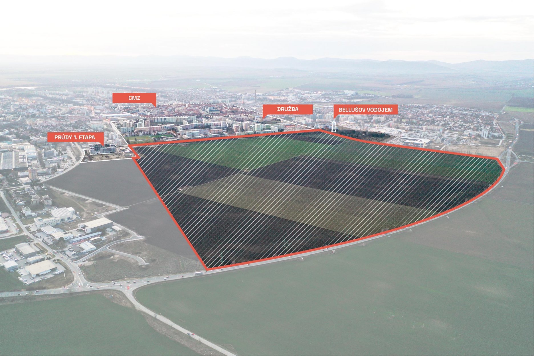 Mesto Trnava v spolupráci s ateliérom 2021 architekti vyhlásilo v máji 2023 medzinárodnú urbanistickú súťaž, ktorá má definovať ďalší vývoj rozsiahleho územia od zeleného pásu na sídlisku Družba až po východný obchvat. V jeho juhozápadnom rohu v súčasnosti vzniká nová časť Prúdy a aj zvyšok územia je v územnom pláne už desaťročia dlhodobo definovaný ako rezerva na rozširovanie mesta.