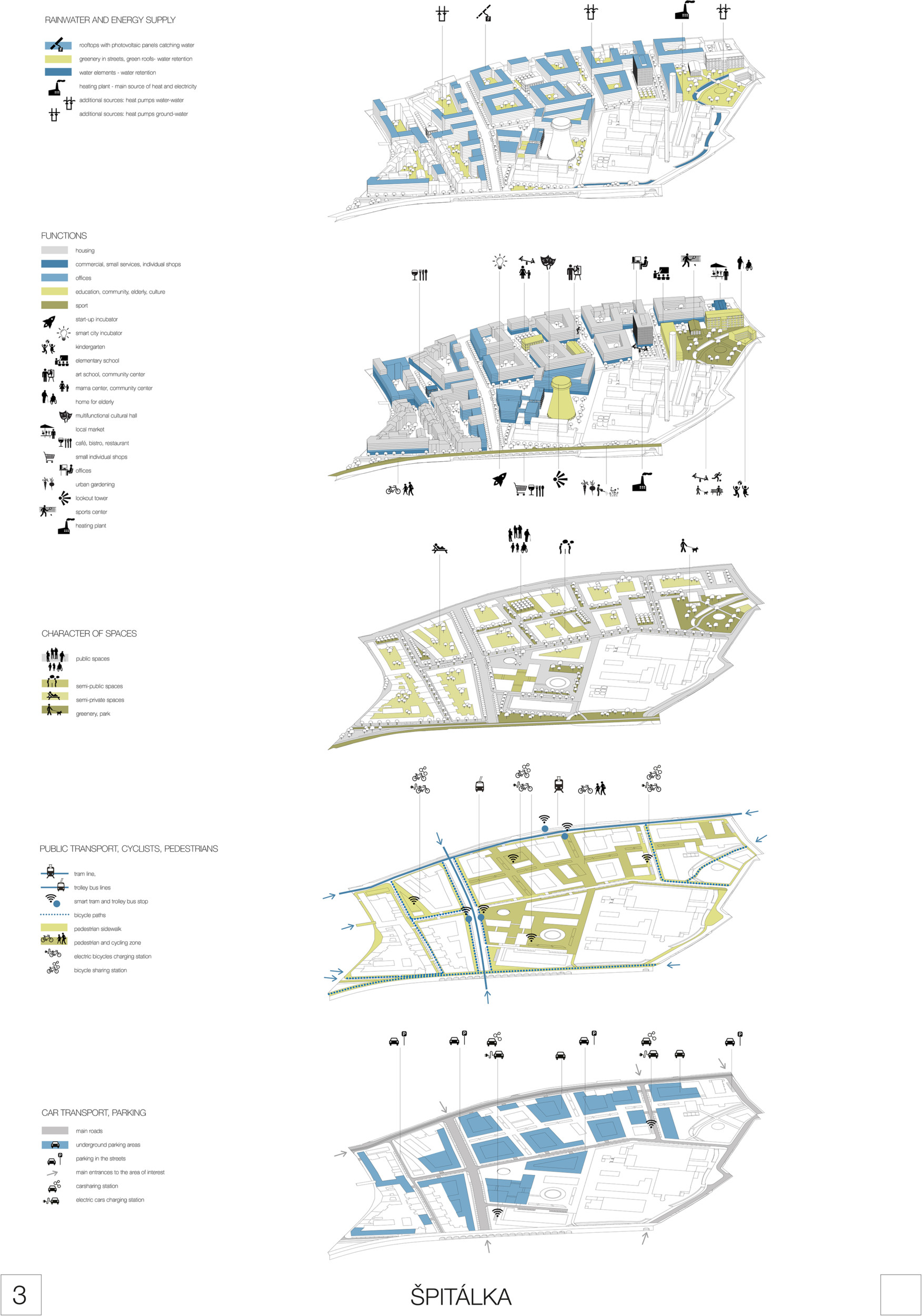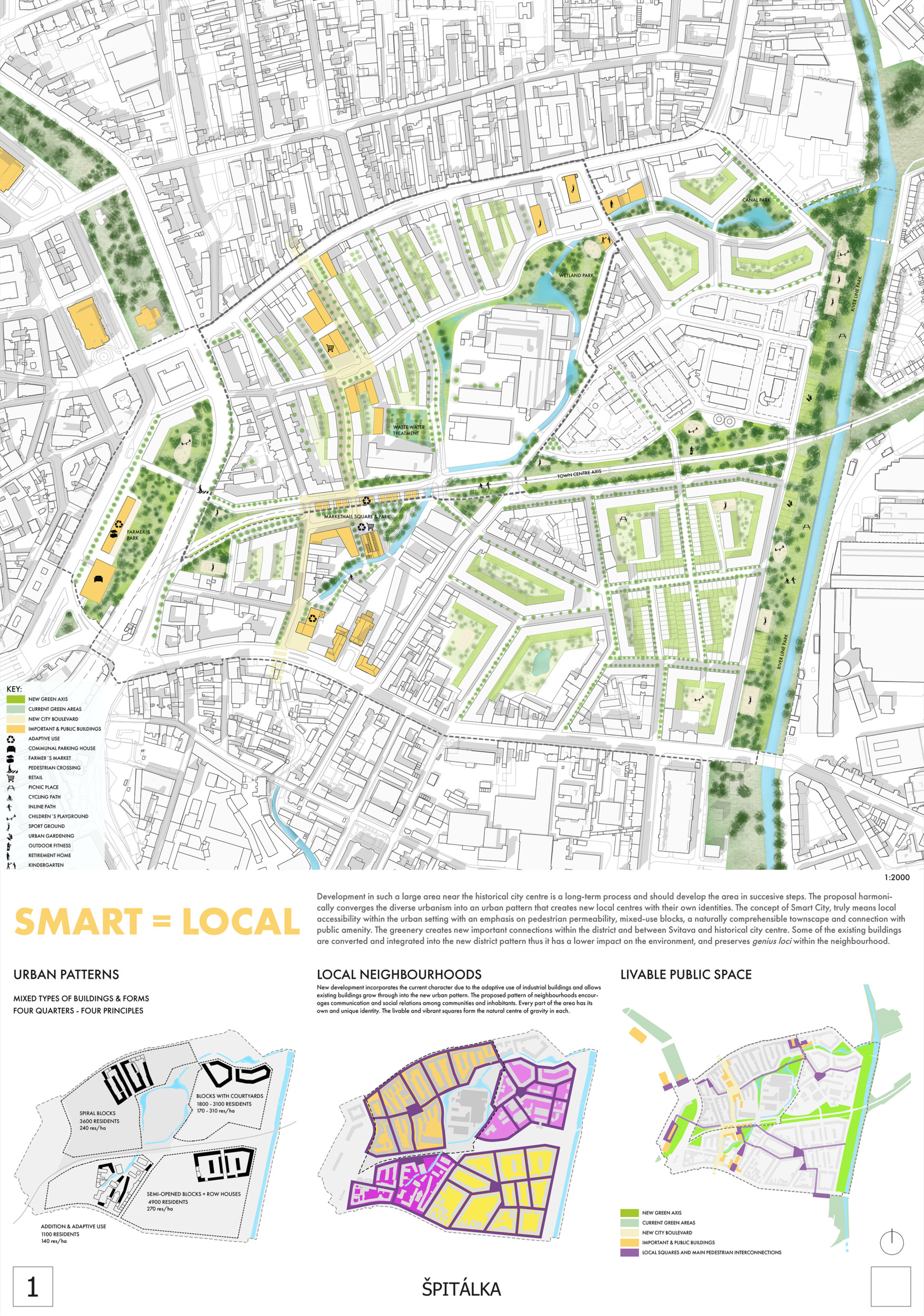 Development in such a large area near the historical city centre is a long-term process and should develop the area in succesive steps. The proposal harmonically converges the diverse urbanism into an urban pattern that creates new local centres with their own identities. The concept of Smart City, truly means local accessibility within the urban setting with an emphasis on pedestrian permeability, mixed-use blocks, a naturally comprehensible townscape and connection with public amenity.