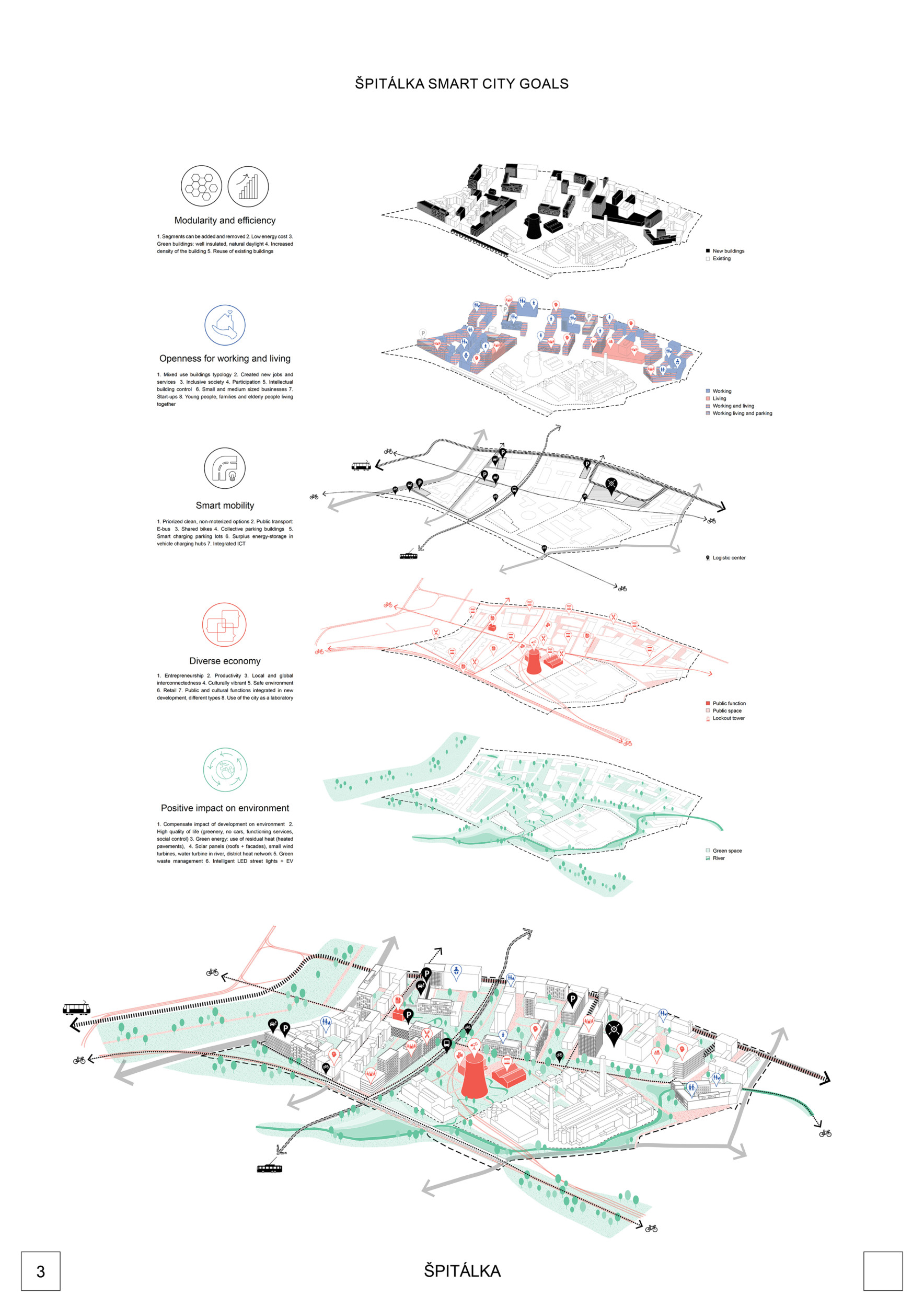 Súťažné návrhy museli okrem novej mestskej tepny zohľadniť taktiež princípy "inteligentného mesta". Nová má byť šetrná k životnému prostrediu a energeticky sebestačná. Cieľom je preveriť nové technológie a inovatívne prístupy, ktoré by sa následne mohli rozšíriť aj do zvyšku Brna. Špitálka by tak mohla slúžiť ako vzor pre ďalšiu výstavbu.