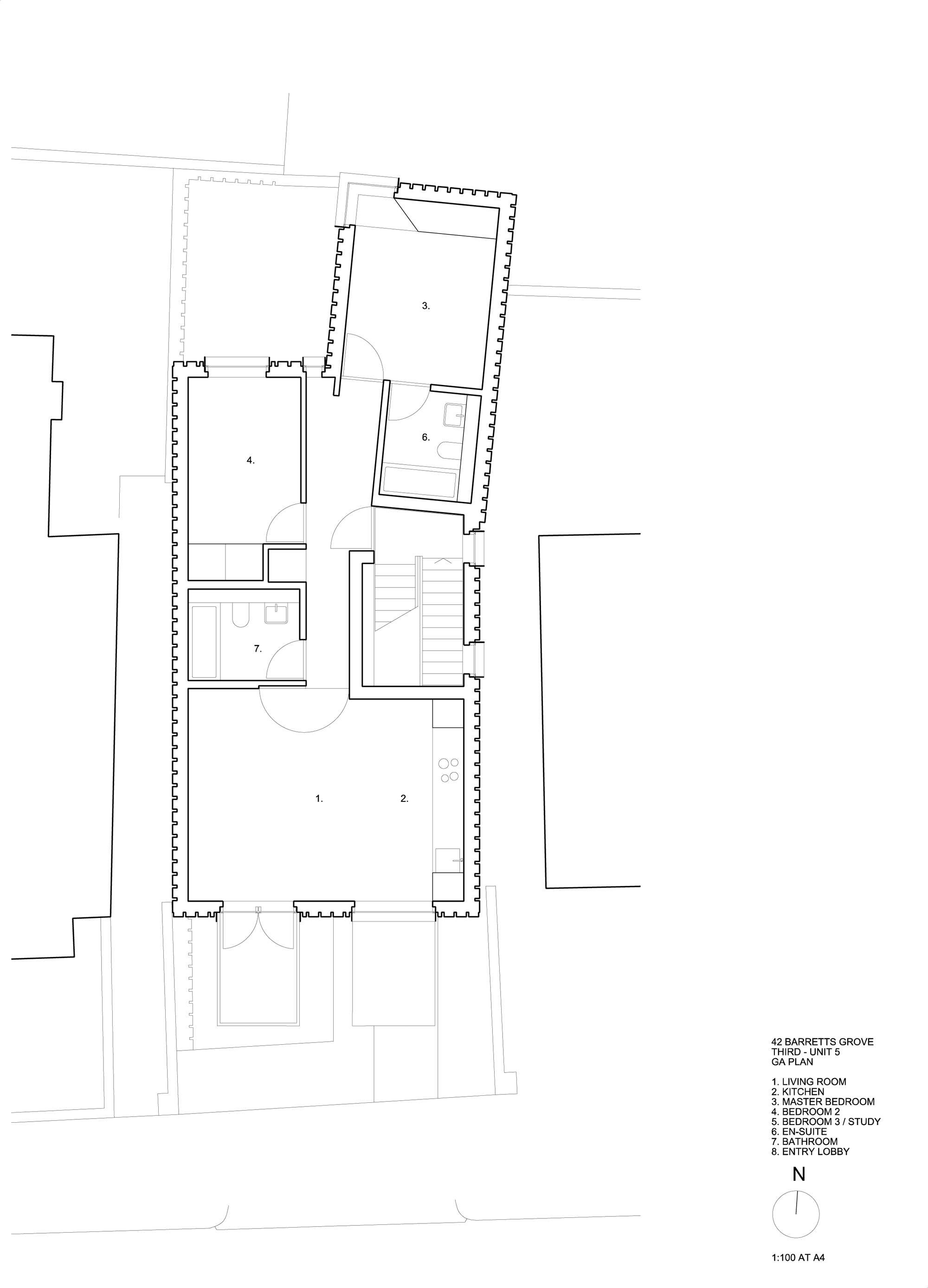 Objekt zručne využíva typickú situáciu v Londýne. Pozemok v bývalej priemyselnej štvrti Ladbroke Grove je vklinený medzi lacný developerský projekt a historický robotnícky dom.