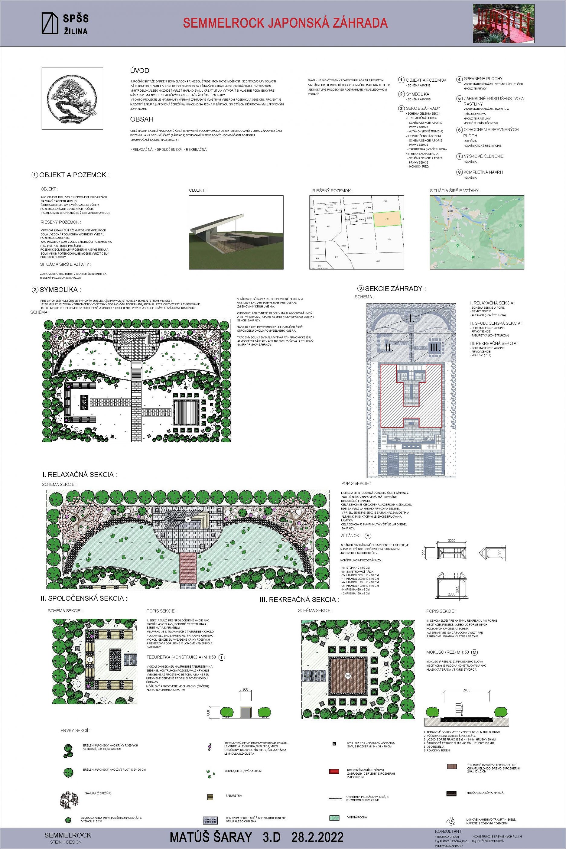 Víťazom kategórie sa stal Matúš Šaraj zo SPŠ Stavebná zo Žiliny s projektom Sakura (Japonská čerešňa). Študent sa inšpiroval japonskými záhradami a kultúrou, pre ktorú sú charakteristické stromčeky vytvárané bonsajovými technikami, aby mali typický vzrast a tvarovanie. Autor do projektu zakomponoval niekoľko dlažieb značky Semmelrock prevažne v sivom a grafitovom odtieni. Do okolia objektu a na chodníky použil dlažbu ASTI kombi, na parkovacie miesto CASTELLO ANTICO, na chodníky v záhrade uplatnil PLATO kombi a pod altánok dlažobné kocky BRADSTONE COBBLE.