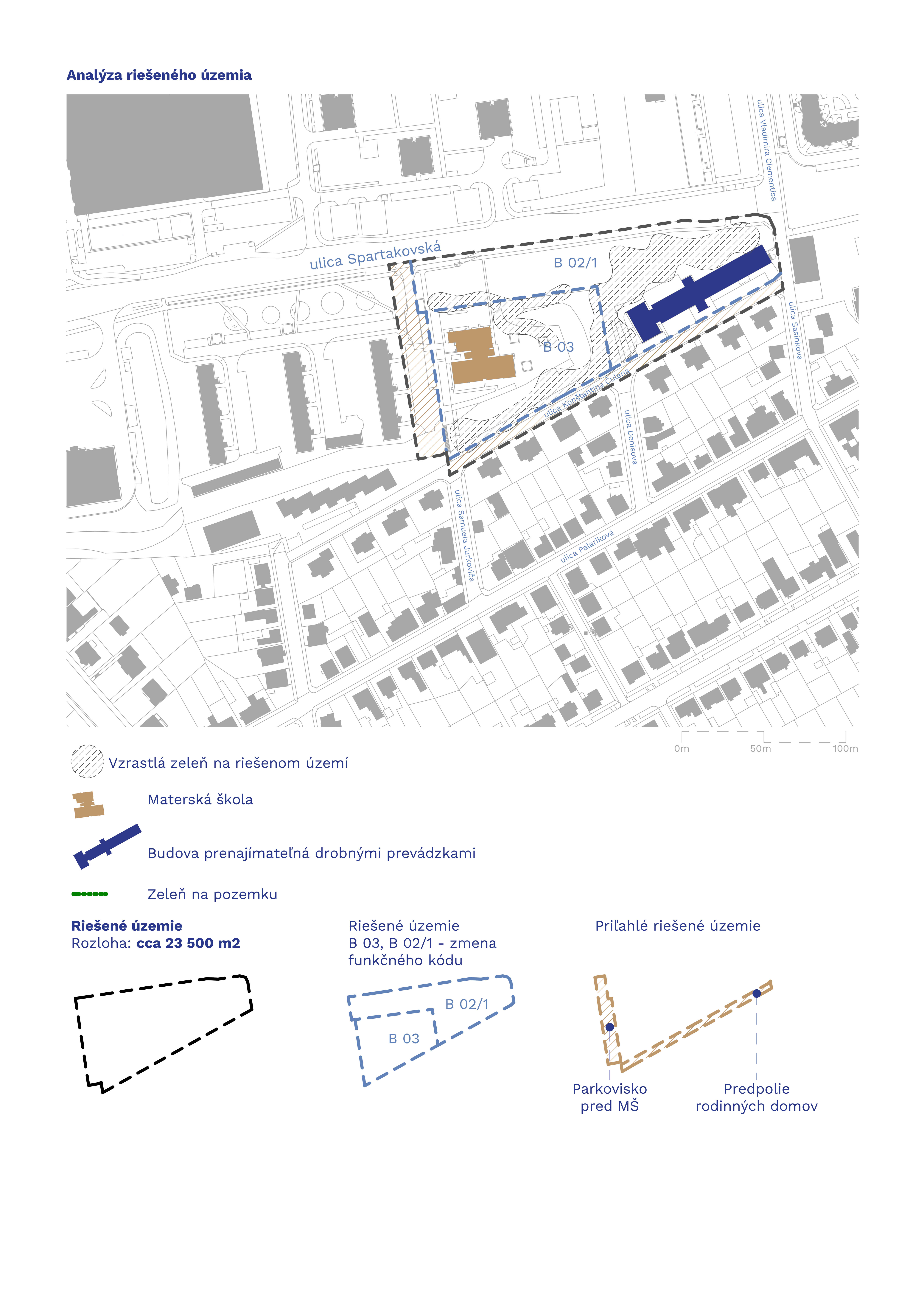 Zámerom mesta je vytvorenie moderného mestského bloku s kvalitnými verejnými priestormi, udržateľnou dopravnou a technickou infraštruktúrou v súlade s princípmi iniciatívy New European Bauhaus (NEB). Nosnou funkciou bude bývanie, doplnené o materskú školu, prenajímateľné nebytové priestory, doplnkové funkcie a v neposlednom rade silné zastúpenie kvalitnej parkovej zelene.
