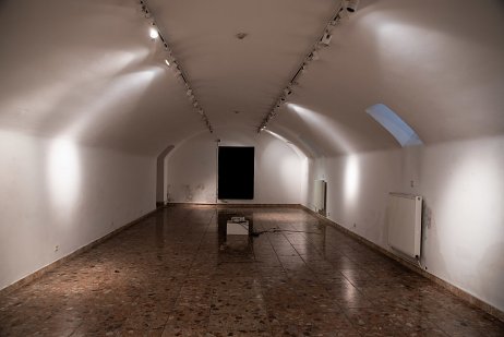 Suterén GMAB pozostáva z väčšieho priestoru s valenou klenbou, štvorcovou vstupnou halou s rozlohou a menšieho priestoru s celkovou výmerou cca 186 m2, do ktorej je možné zísť po schodisku či výťahom. Priestor bol pôvodne využívaný na prezentáciu stálej zbierky sochárskych diel. Aktuálne slúži aj pre účely výstav súčasného výtvarného umenia, predovšetkým multimediálneho a site-specific charakteru. Nové architektonické riešenie stálej expozície by malo v prvom rade architektonicky zjednotiť priestor určený na expozície a výstavy s obsahom primárne modernej architektúry mesta Trenčín a jeho okolia. Ďalej si kladie za cieľ navrhnúť multifunkčný mobiliár slúžiaci pre rôznorodé účely a charaktery výstav/expozícii. Je tiež dôležité riešiť technické problémy priestoru spôsobené lokalizáciou pod úrovňou chodníka (vlhnutie priestoru).